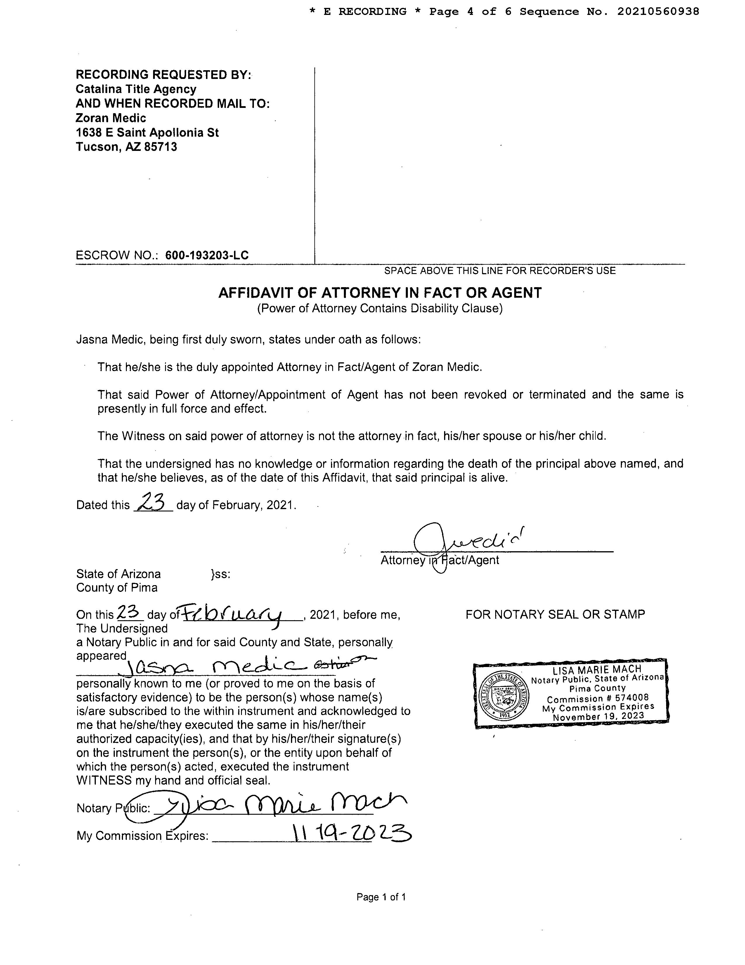 Title Company : Catalina Title Agcy