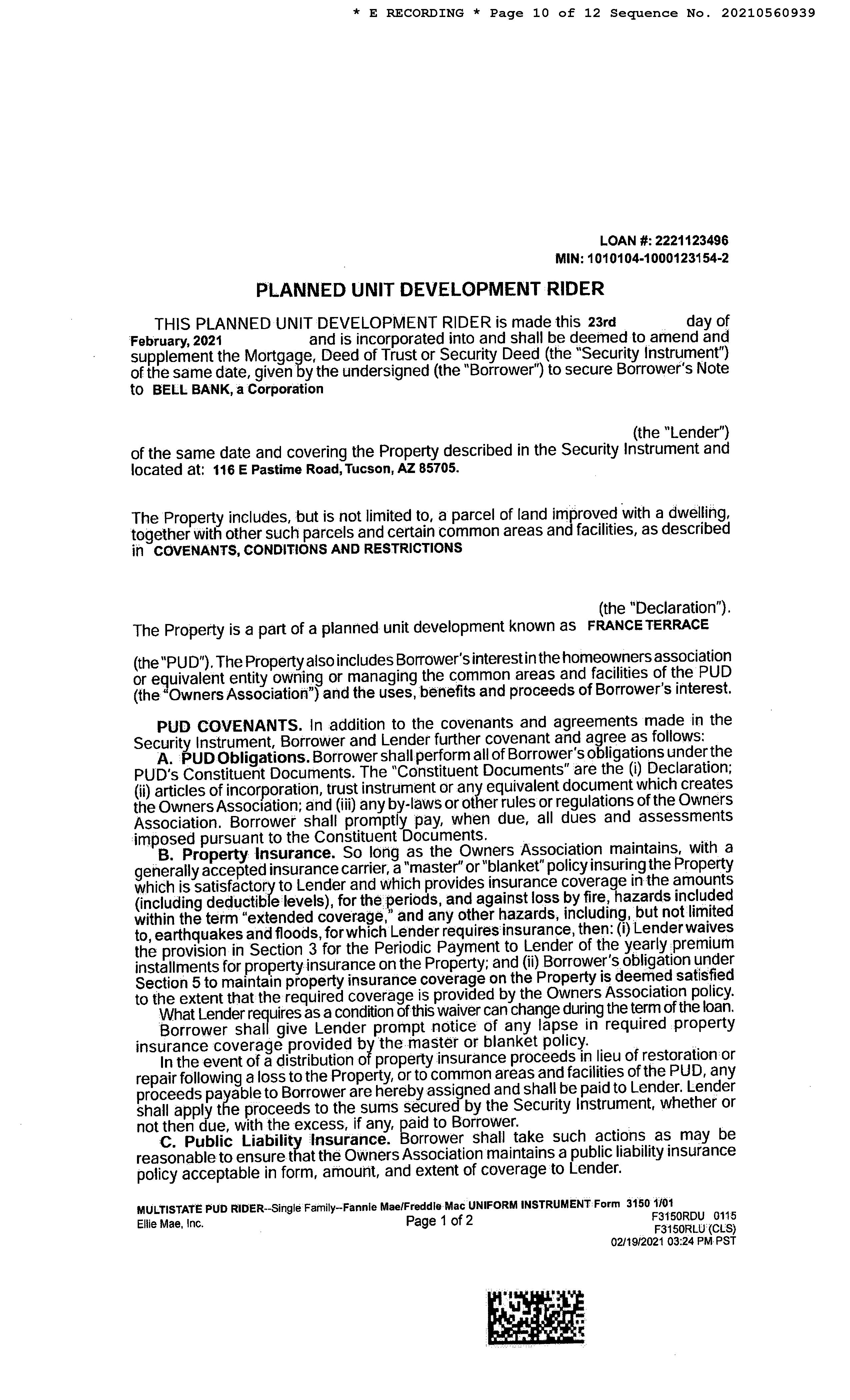 Recording/Sale Date : 02/25/2021 / 02/22/2021 1st Mtg Amount/Type : $110,400 / Cnv