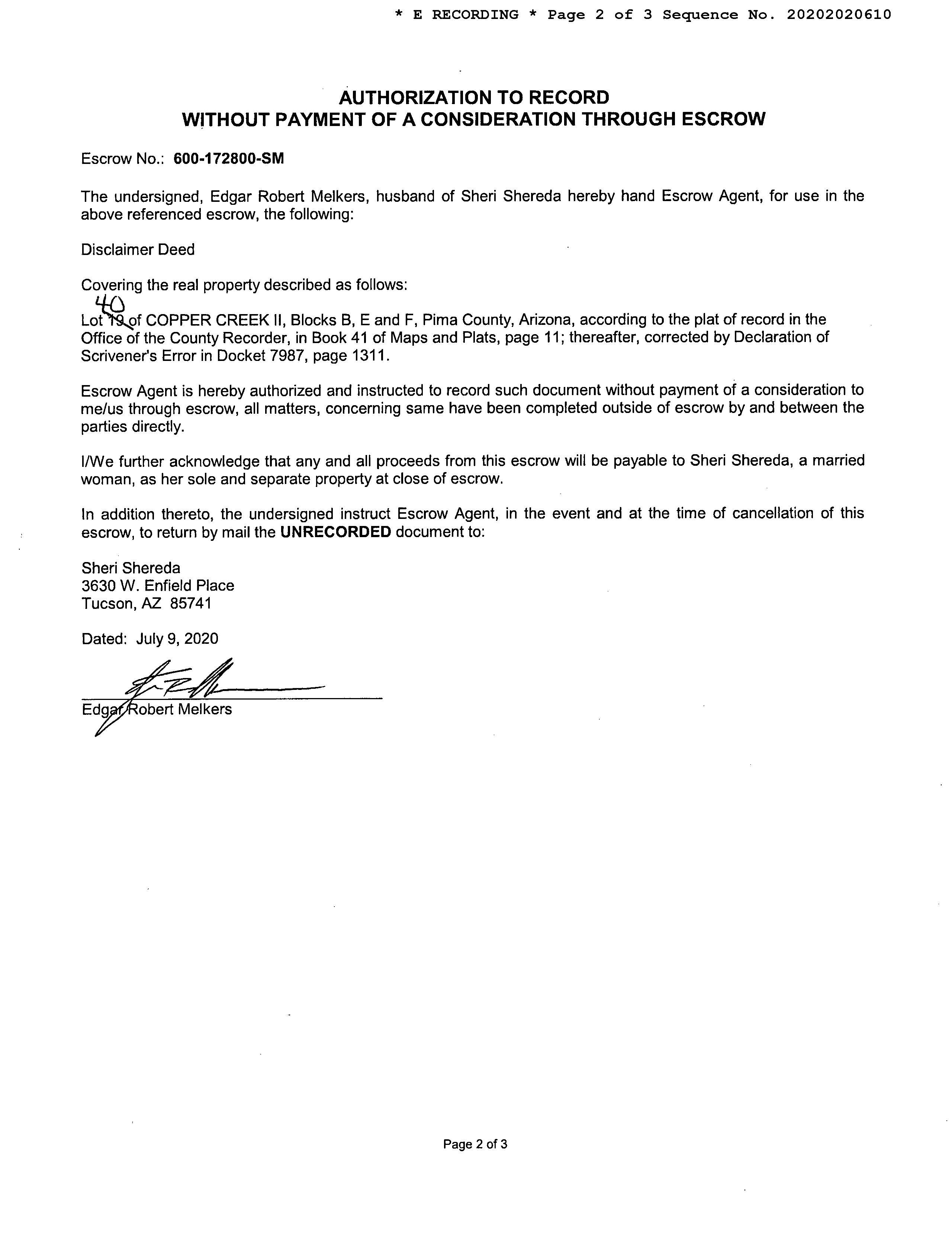 Subject Property : 11798 N Copper Butte Dr Oro Valley AZ 85737 Owner Information Owner Name : Shereda Sheri Mailing Address : 11798 N Copper Butte Dr, Oro Valley AZ 85737-9274 R056 Owner OccupiedIndicator : O Location Information Legal Description : Copper Creek Ii Blks B, E & F Lot 40 County : Pima, Az Market Area : 11 Census Tract / Block : 46.36 / 3 APN : 224-05-0400 Township-Range- Sect : 12S-13E-2 Subdivision : Copper Creek 02 Legal Book/Page : 41-11 Map Reference : 02-12S-13E Legal Lot : 40 School District : Amphitheater Legal Block : B Munic/Township : Amphitheater Owner Transfer Information Recording/Sale Date : 07/20/2020 / 07/09/2020 Deed Type : Disclaimer Deed Document # : 2020610 Last Market Sale Information Recording/Sale Date : 07/20/2020 / 07/13/2020 Deed Type : Warranty Deed Sale Price : $275,000 Price Per SqFt : $185.81 Document # : 2020609 Title Company : Catalina Title Agcy Seller Name : Gall Matthew Prior Sale Information Prior Rec/Sale Date : 07/08/2016 / 06/29/2016 Prior Deed Type : Warranty Deed Prior Sale Price : $200,000 Prior Lender : Nova Fin'l & Inv Corp Prior Doc Number : 1900535 Prior 1st Mtg Amt/Type : $190,000 / Conv Customer Name : Kariann Keomaka Customer Company Name : First American Title Insurance Company Prepared On : 08/15/2022 © 2022 CoreLogic. All rights reserved