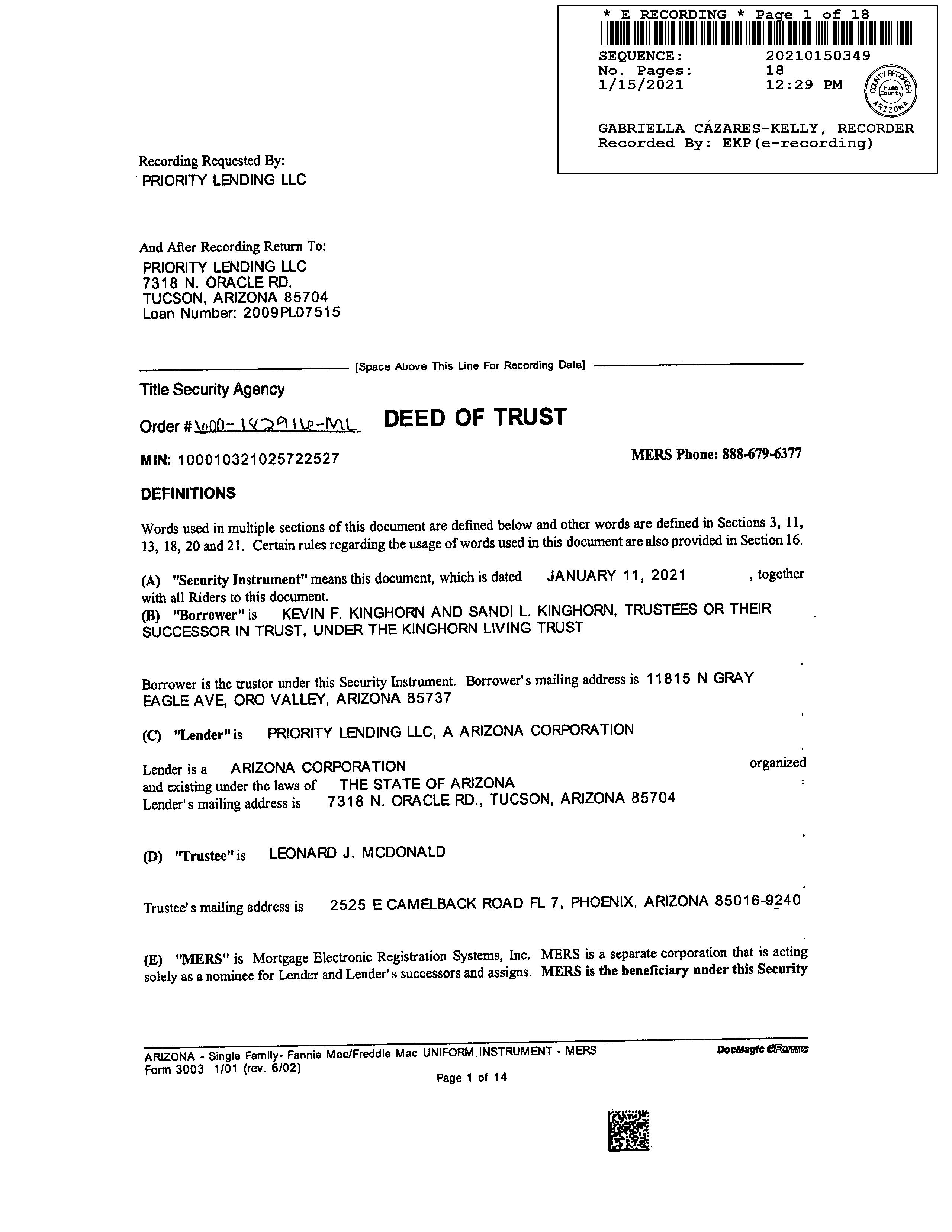 Title Company : Catalina Title Lender : Guaranteed Rate Inc Seller Name : Old Pueblo Property Solutions