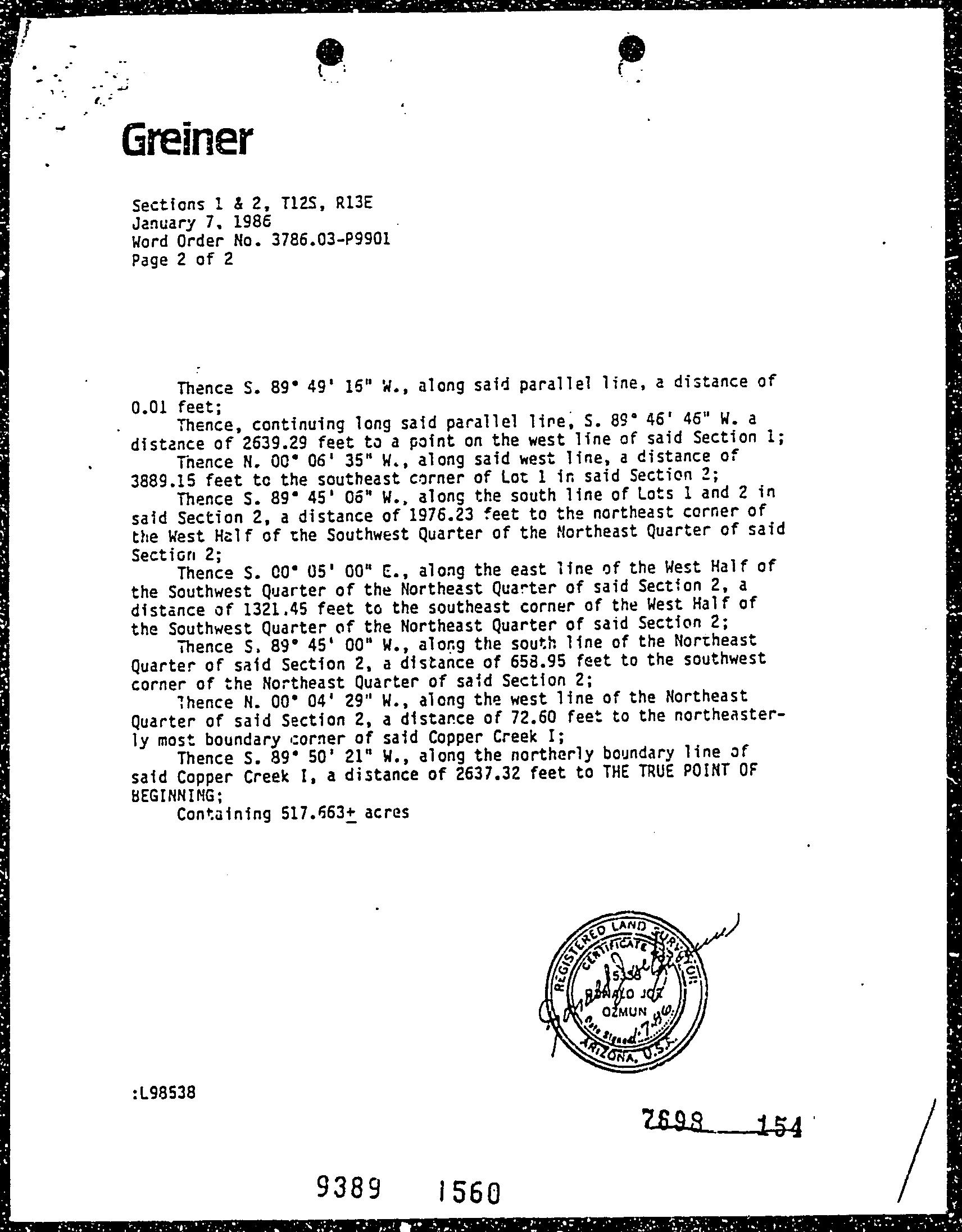 Legal Description : Copper Creek Ii Lot 74 County : Pima, Az APN : 224-04-4240 Census Tract / Block : 46.36 / 3 Subdivision : Copper Creek 02 Township-Range- Sect : 12S-13E-2 Map Reference : 02-12S-13E