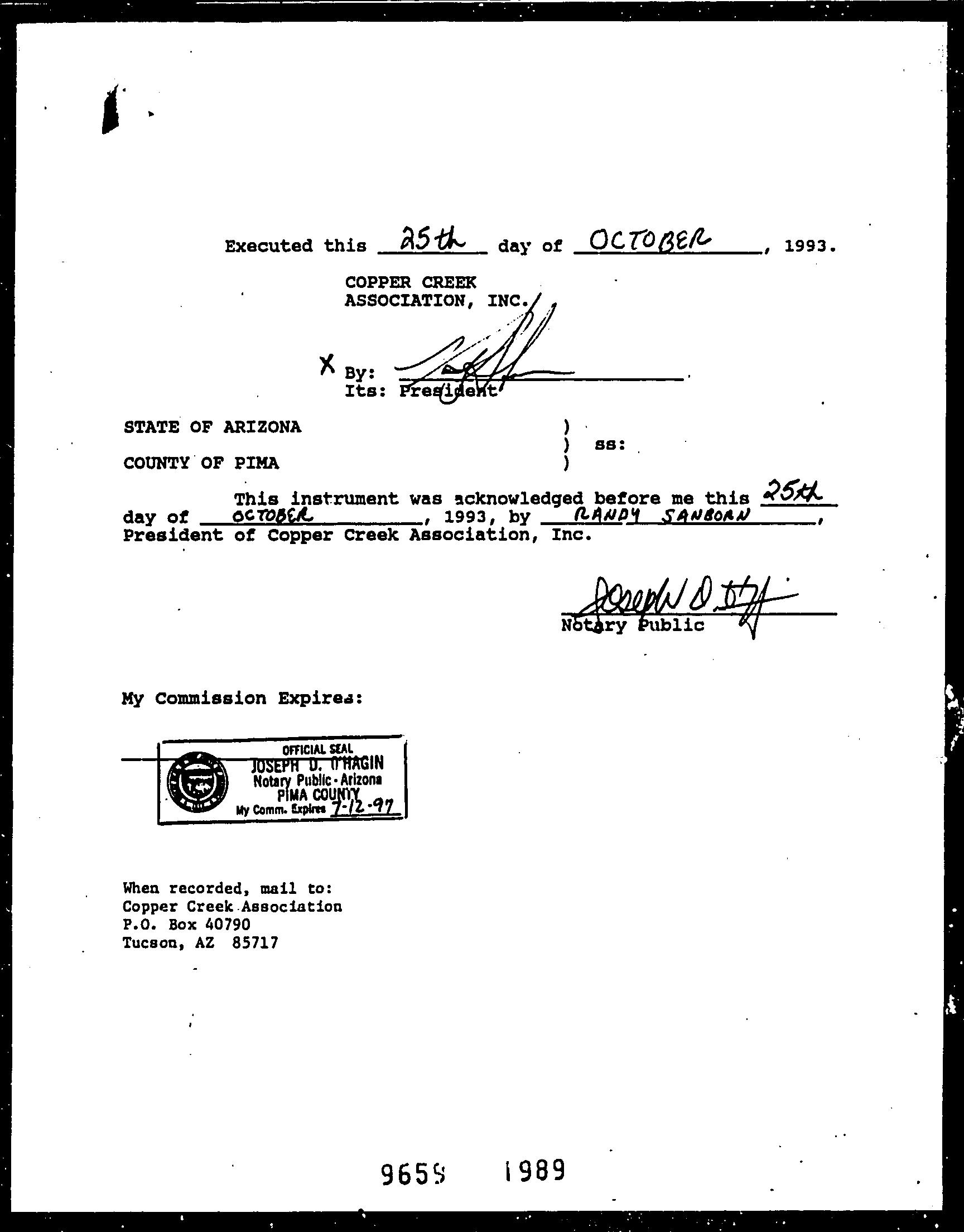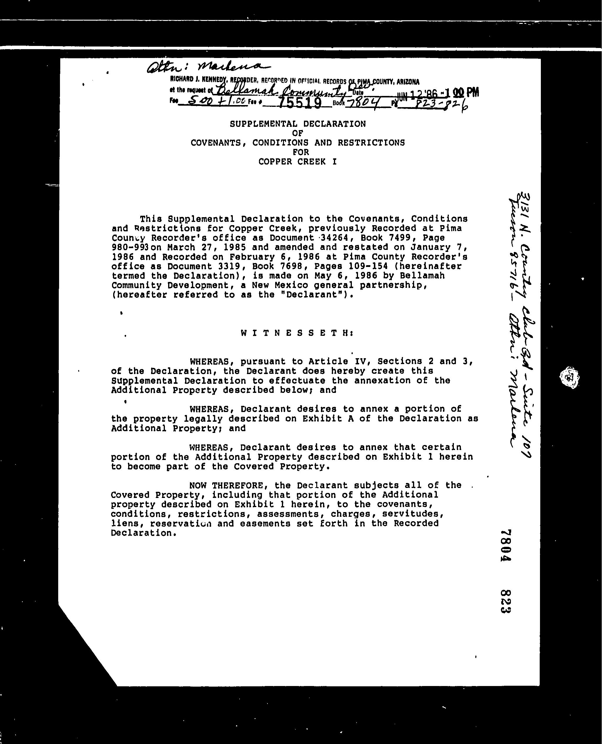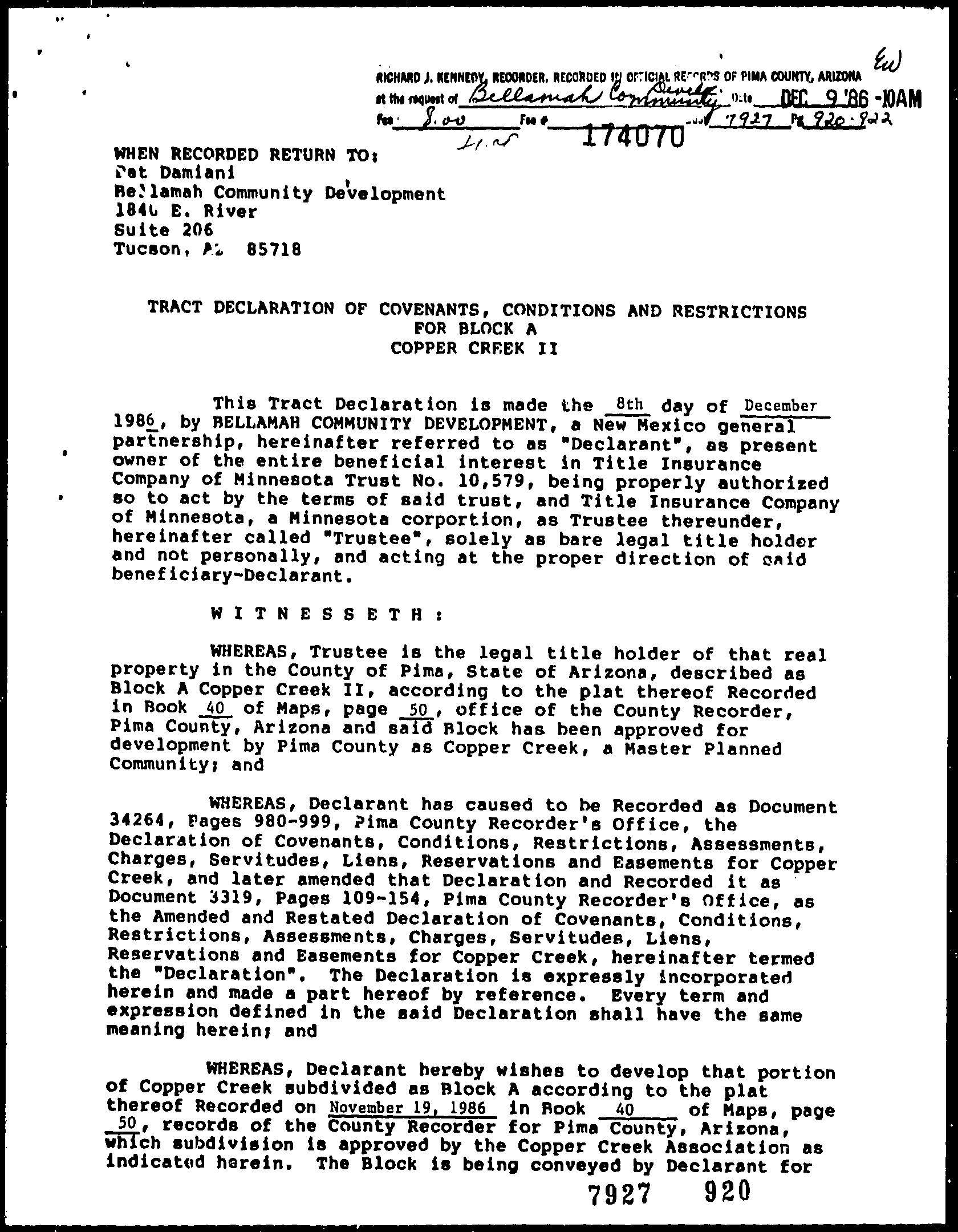 Owner Name: Decker Dale A / APN / Alternate APN: 224-04-5540 / Deed Type: Warranty Deed Land Use: Sfr Subdivision / Tract: Copper Creek 02 / Lot Size: 7,558 Year Built / Eff: 1993 / Rec. Date / Price: 08/09/2022 / $475,000 Living Area: 2,163 # of units: Document #: 2210083 Bedrooms: Pool: Total Tax Value: $257,251 Bath(F/H): / #10 960 W Antelope Creek Way Tucson Az 85737