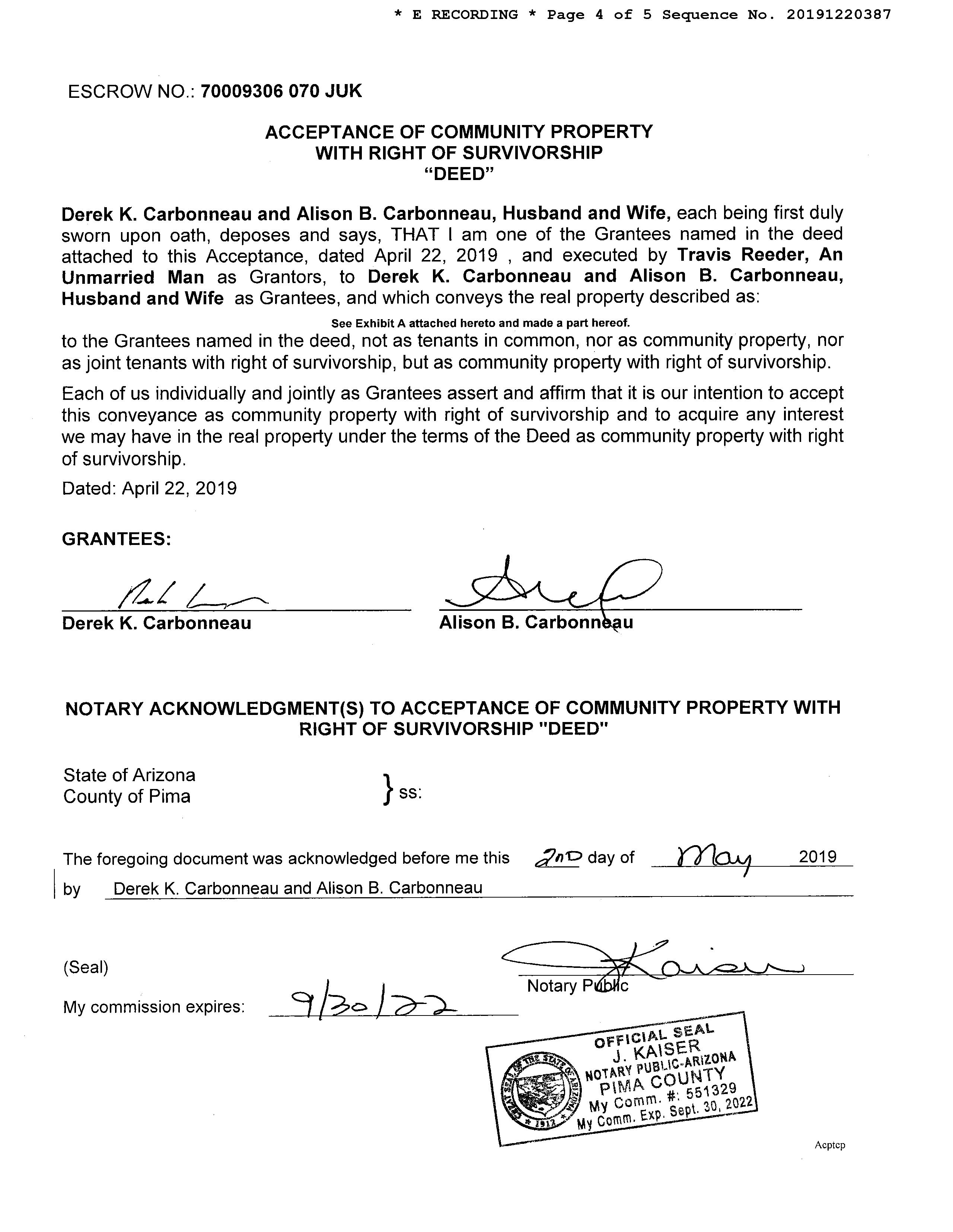 Owner Name: Carbonneau Derek K /Carbonneau Alison B