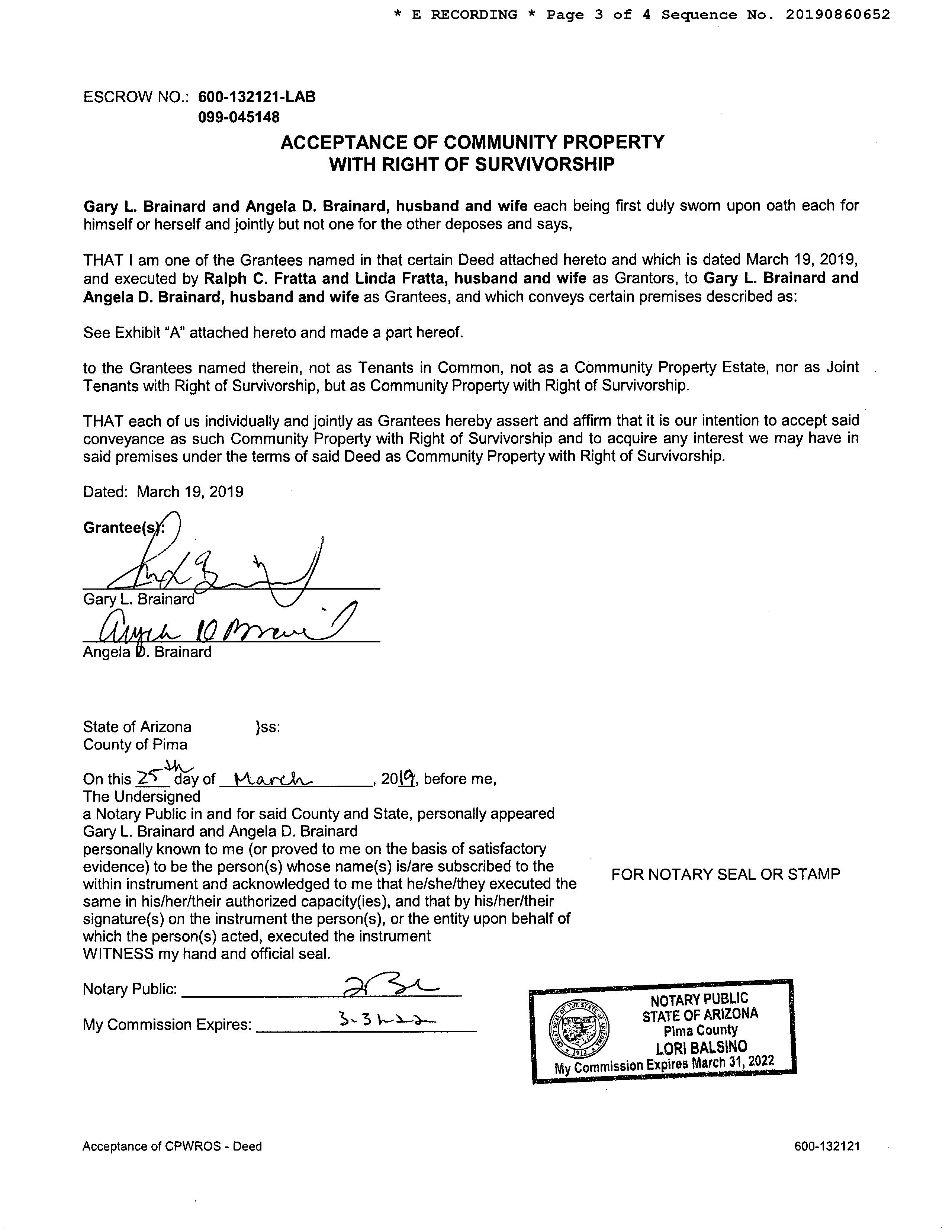 Owner Name : Brainard Gary L / Brainard Angela D