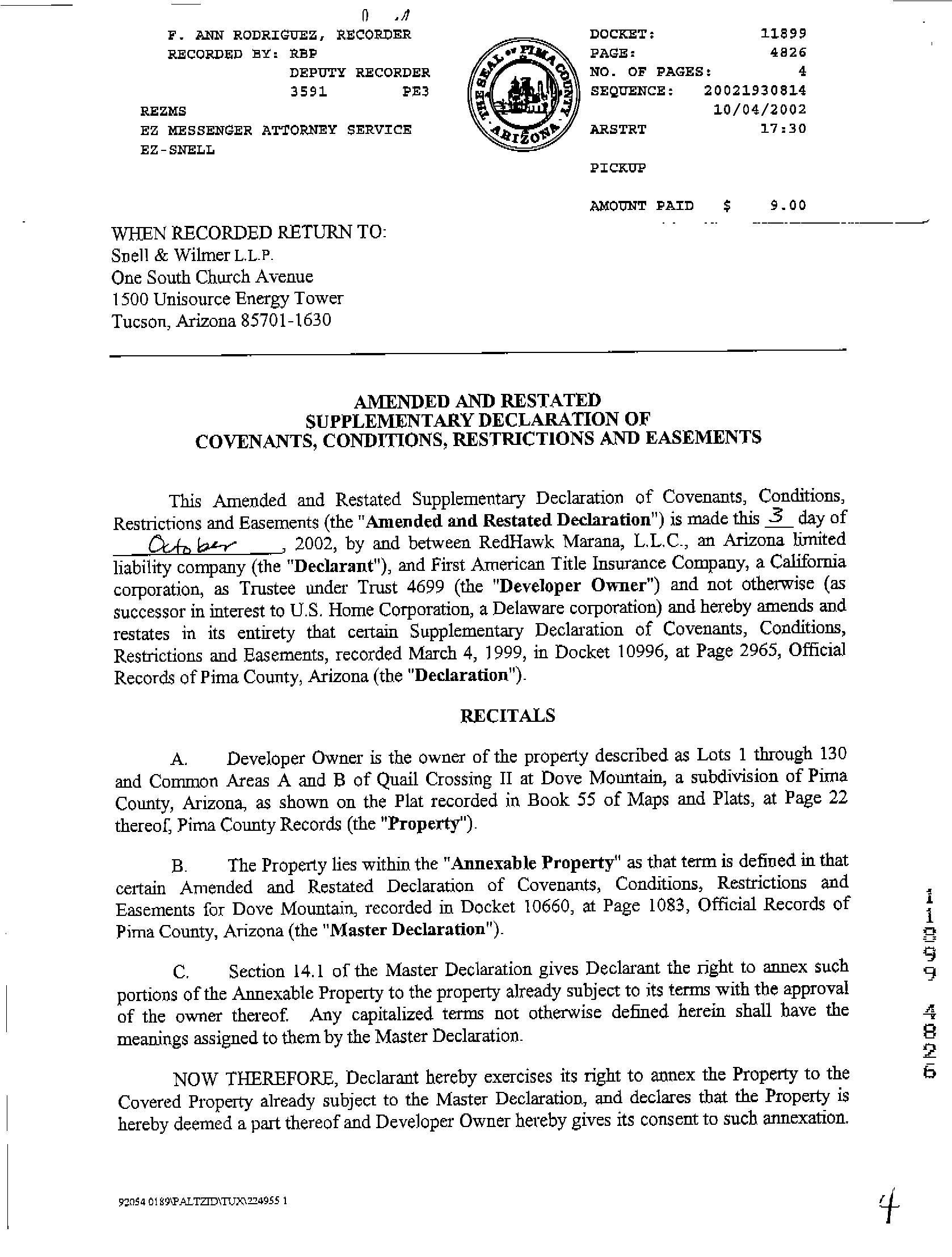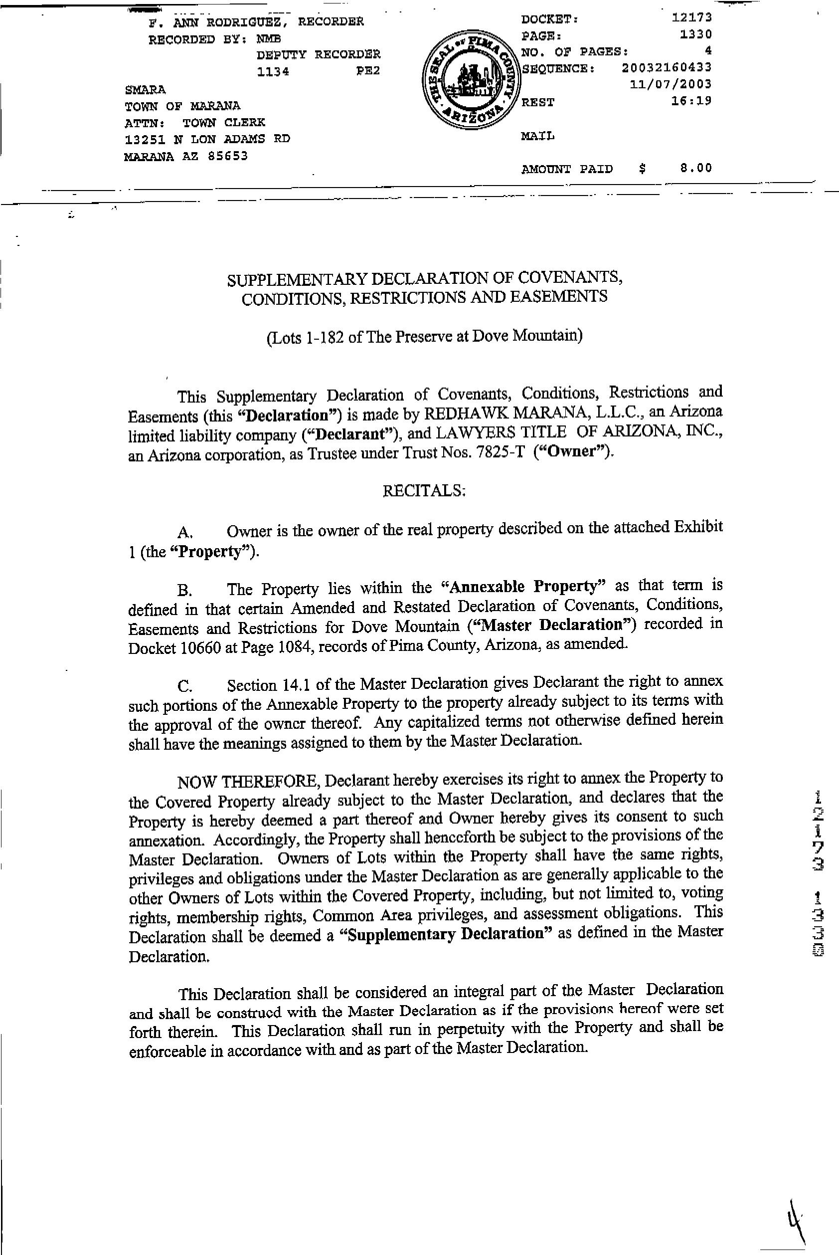 Owner Name : Hessney Harold E Subdivision : Preserve/dove Mountain