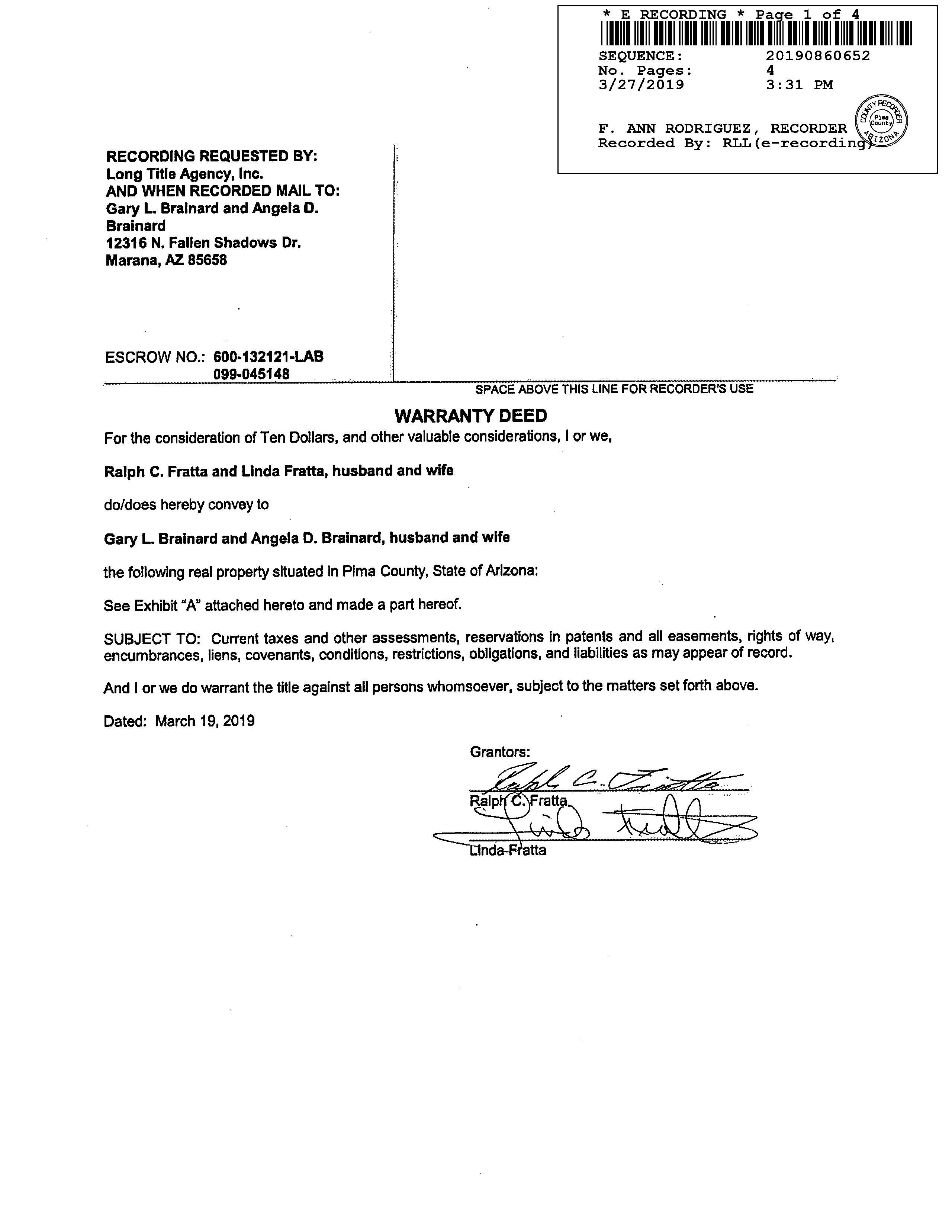 Seller Name : Fratta Ralph C & Linda
