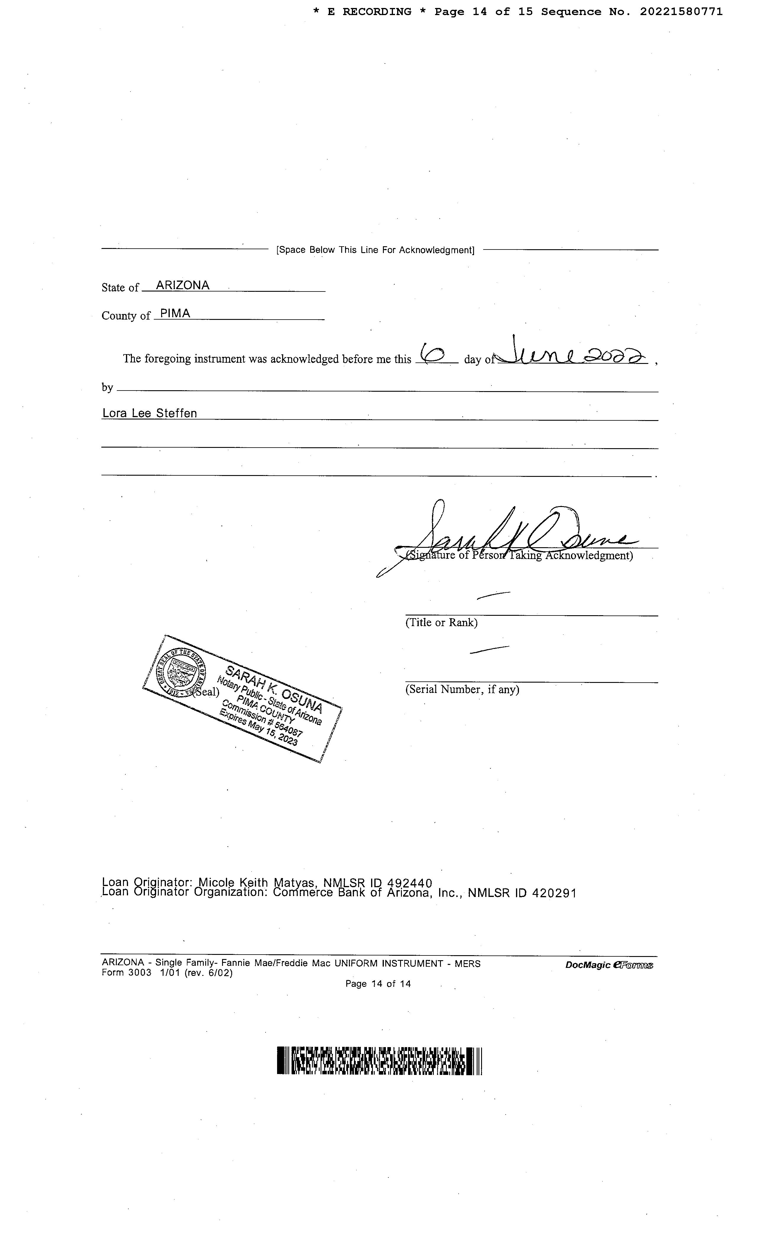 Lender : Commerce Bk/az