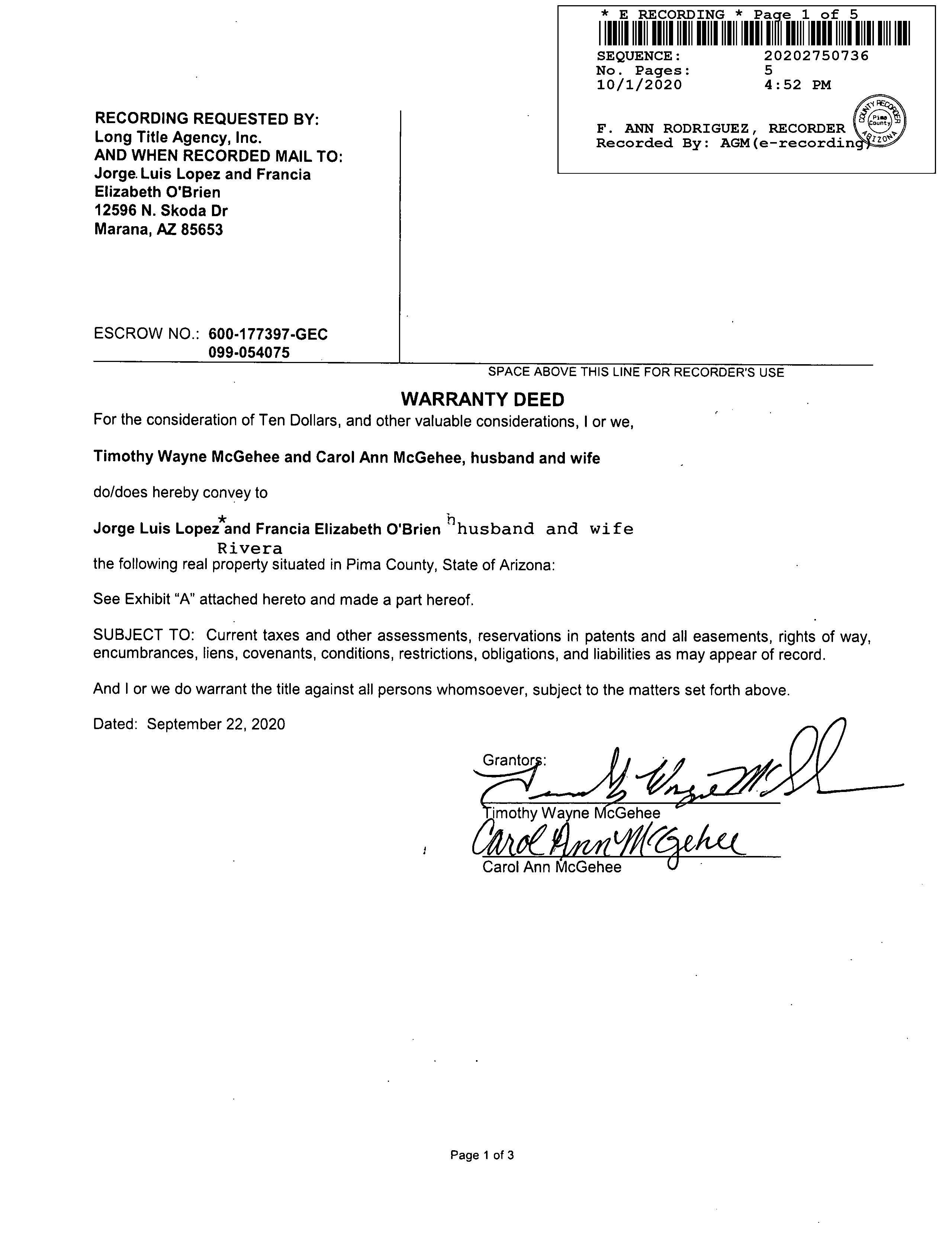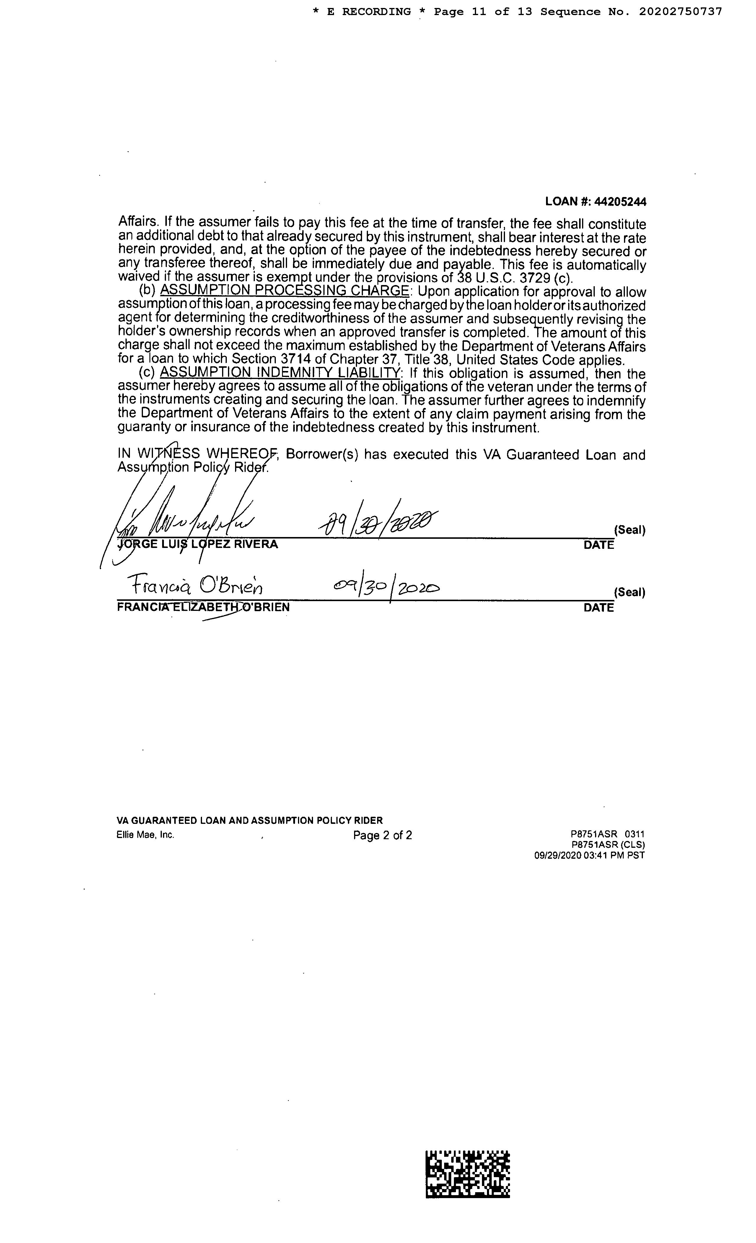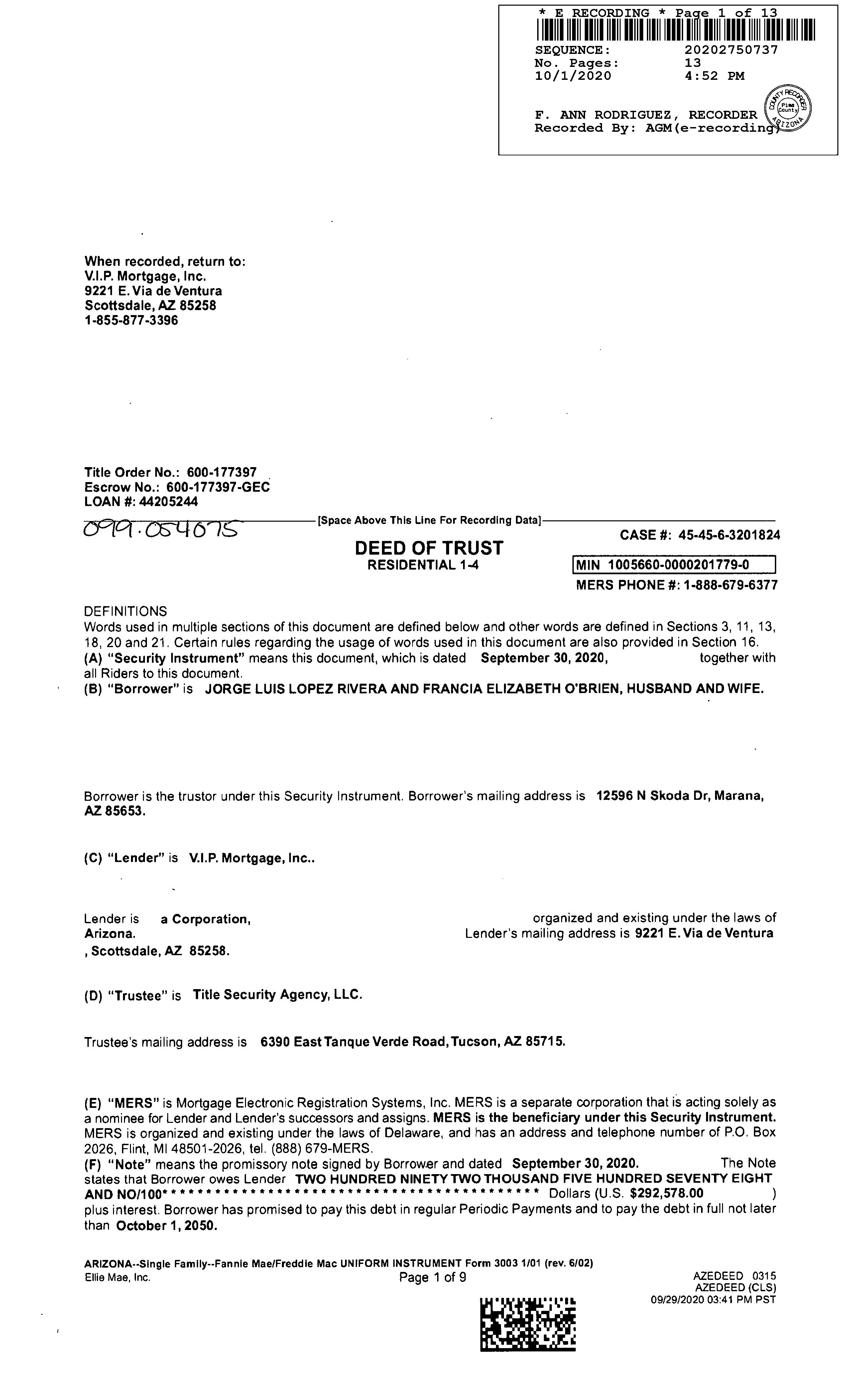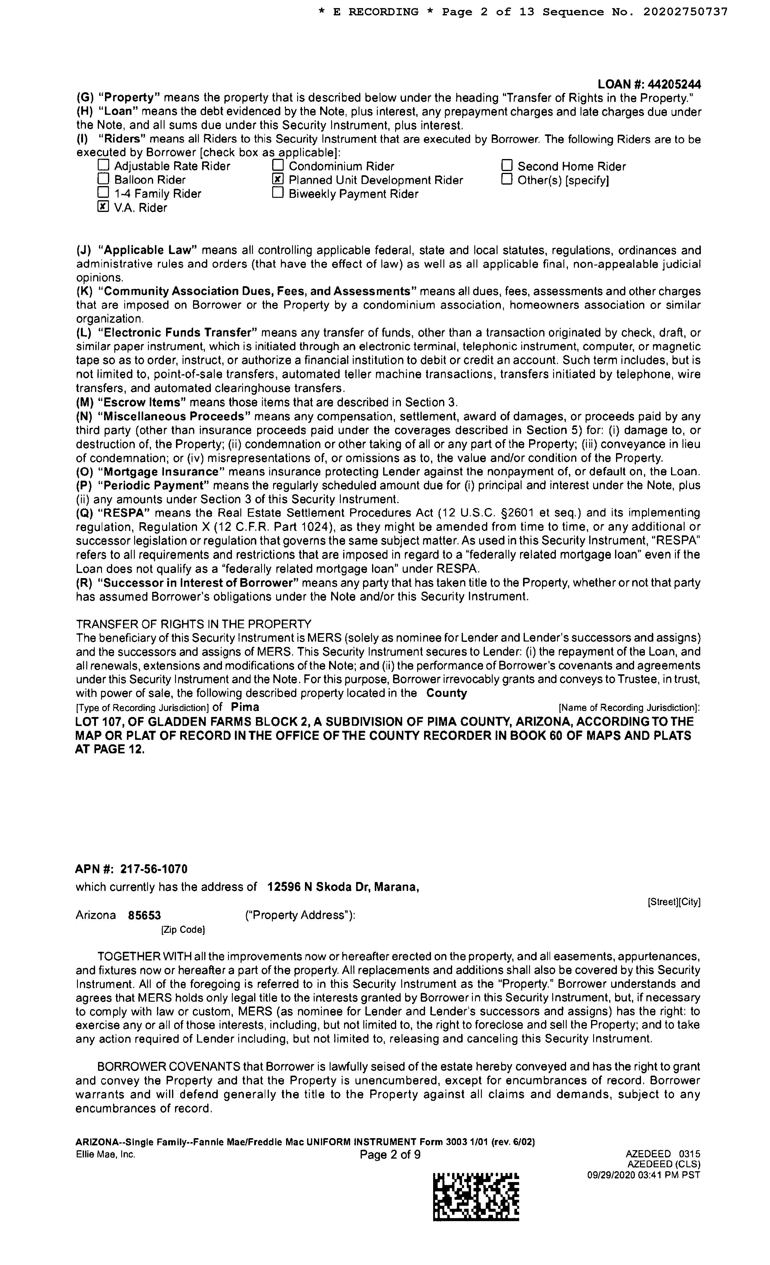 Recording/Sale Date : 10/01/2020 / 09/22/2020 1st Mtg Amount/Type : $292,578 / Va