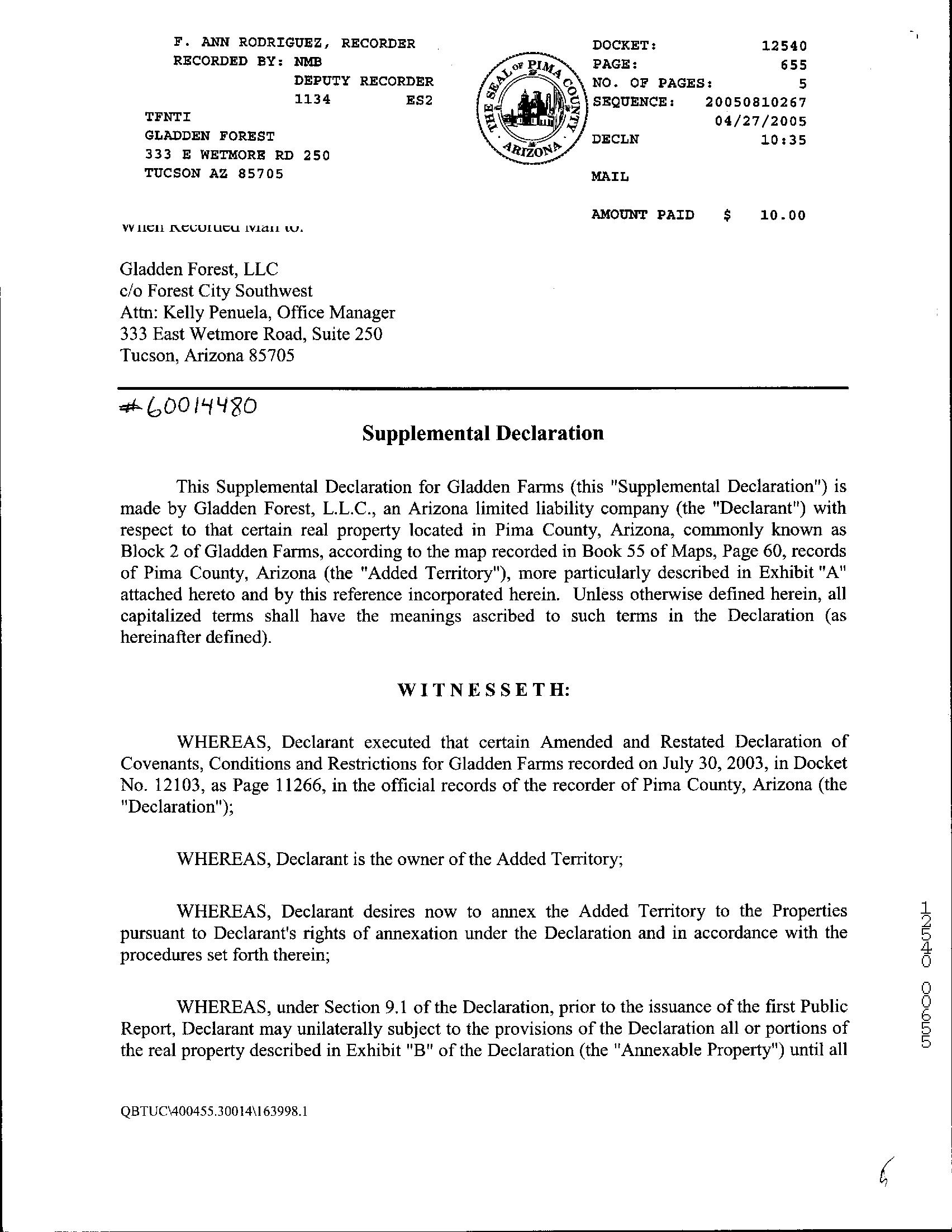 Owner Name: Murphy Neal / APN / Alternate APN: 217-53-4980 / Deed Type: Warranty Deed Land Use: Sfr Subdivision / Tract: Gladden Farms / Lot Size: 8,712 Year Built / Eff: 2005 / Rec. Date / Price: 02/23/2022 / $395,000 Living Area: 1,945 # of units: Document #: 540535 Bedrooms: Pool: Pool Total Tax Value: $217,324 Bath(F/H): /
