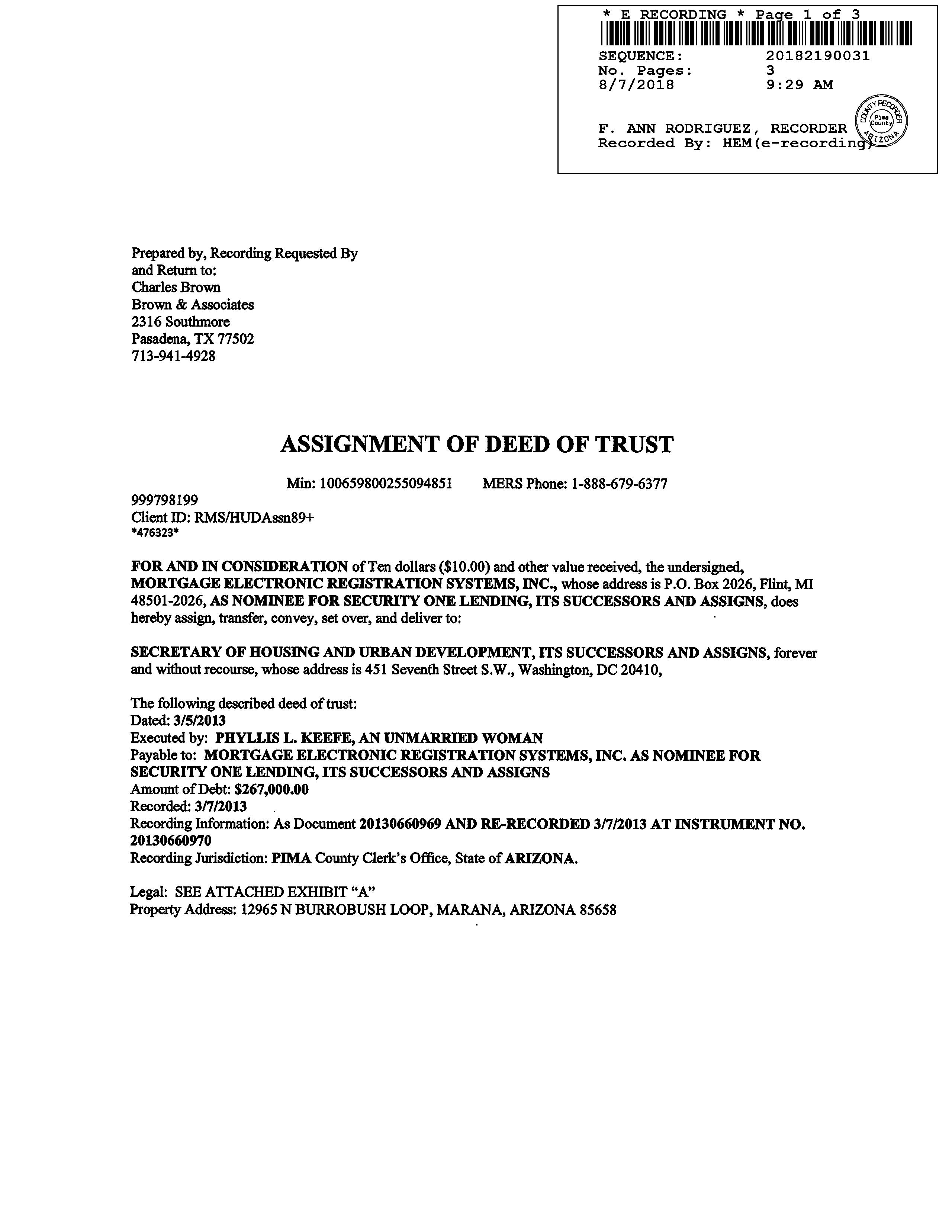Owner Name : Keefe Phyllis L Mailing Address : 12965 N Burrobush Loop, Marana AZ 85658-4028 H005