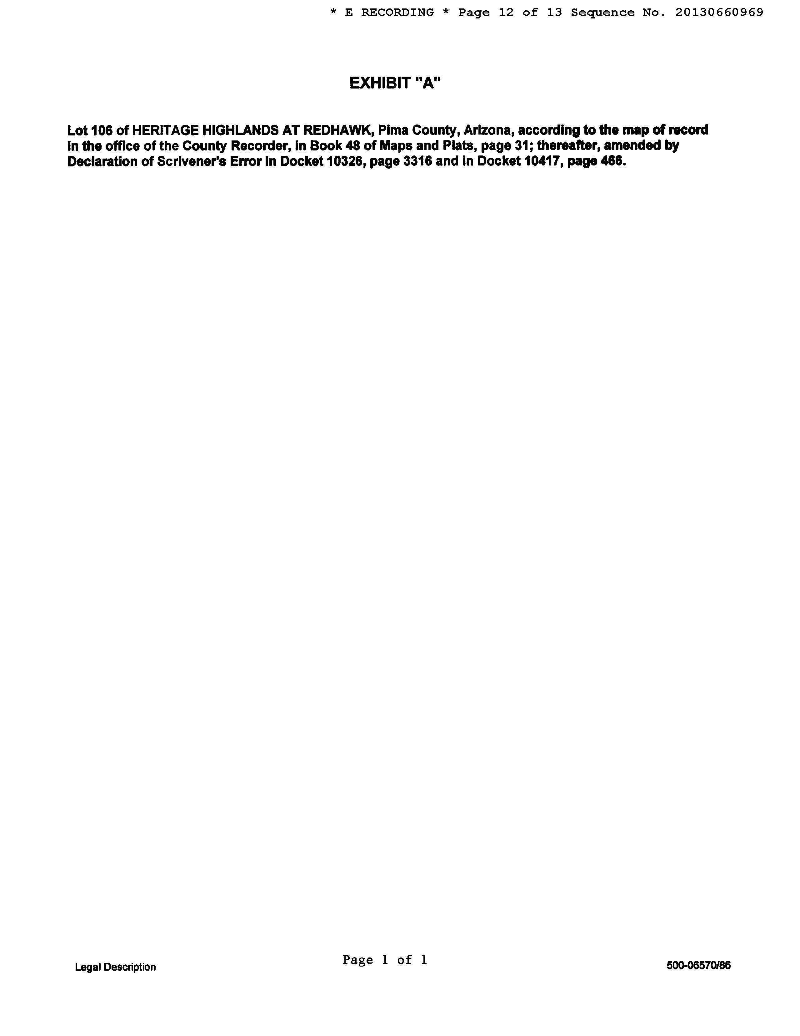Legal Description : Heritage Highlands At Redhawk Lot 106