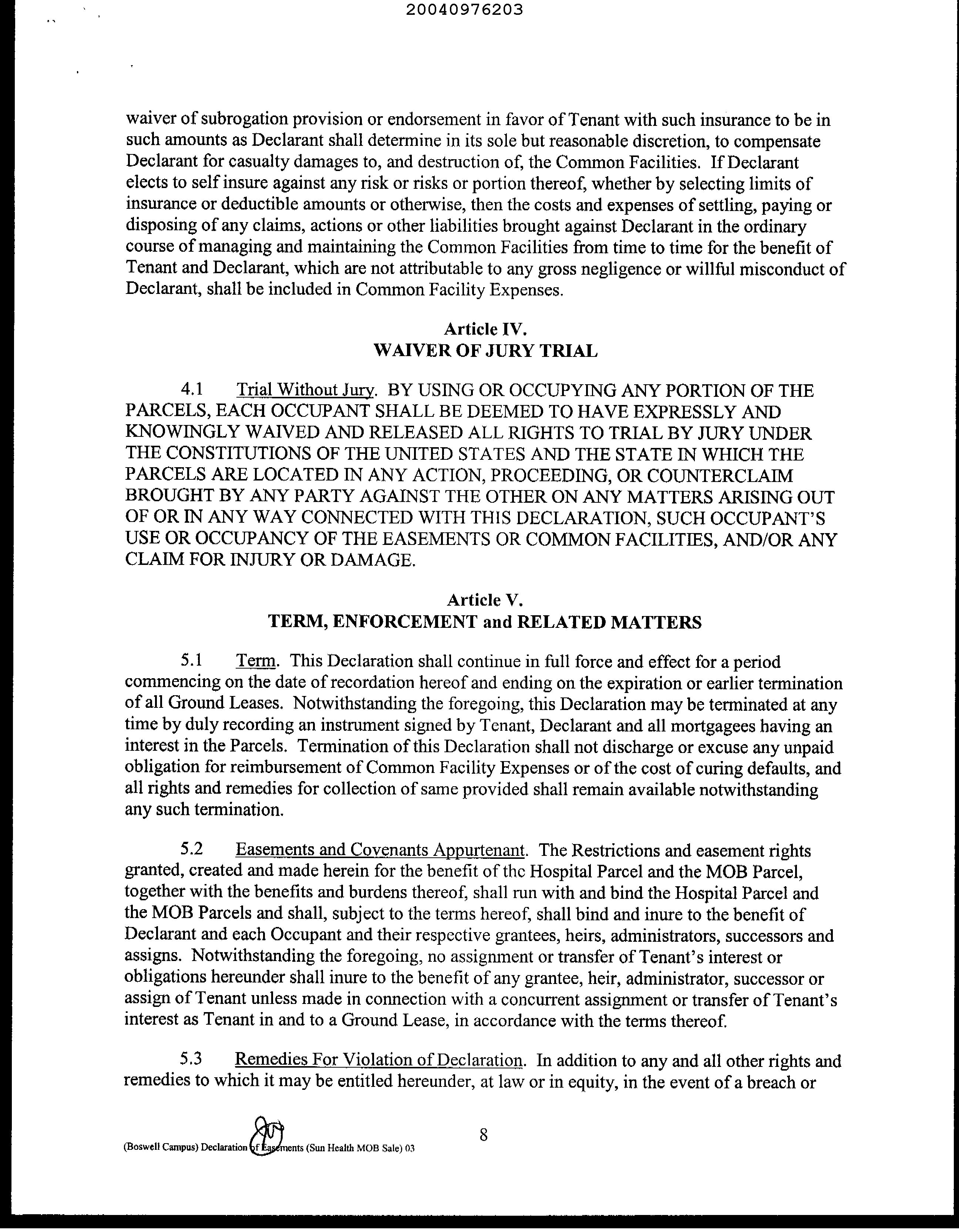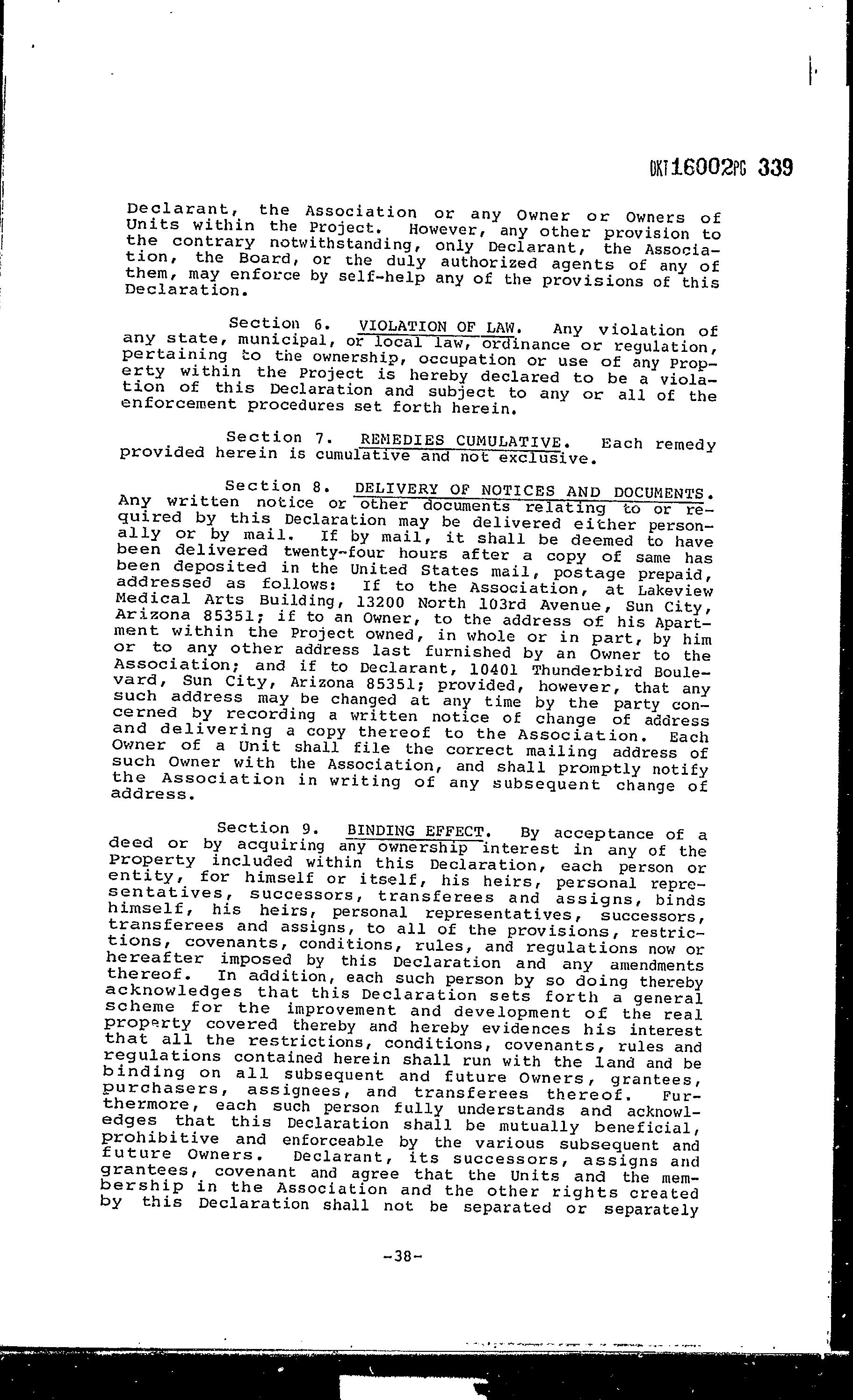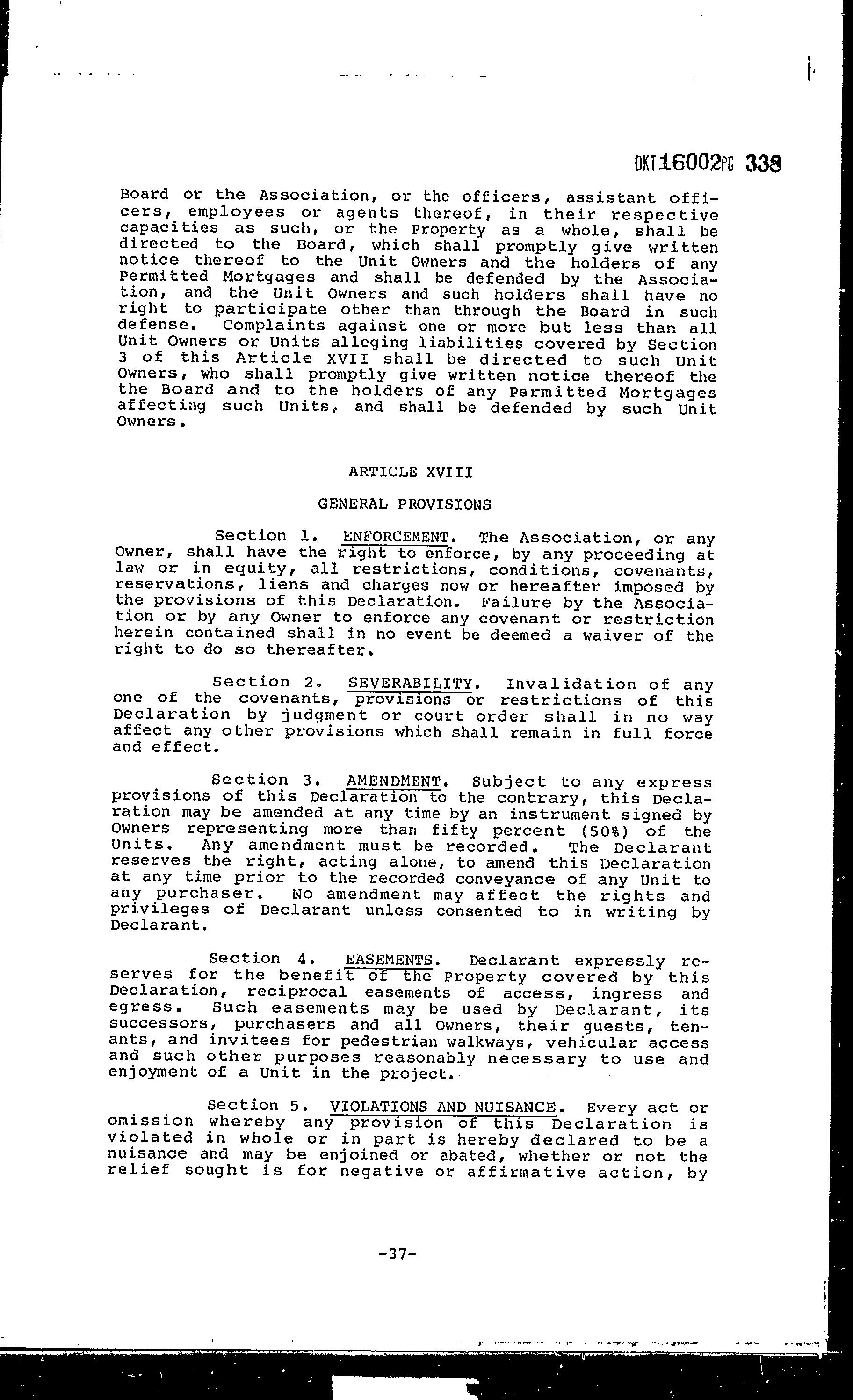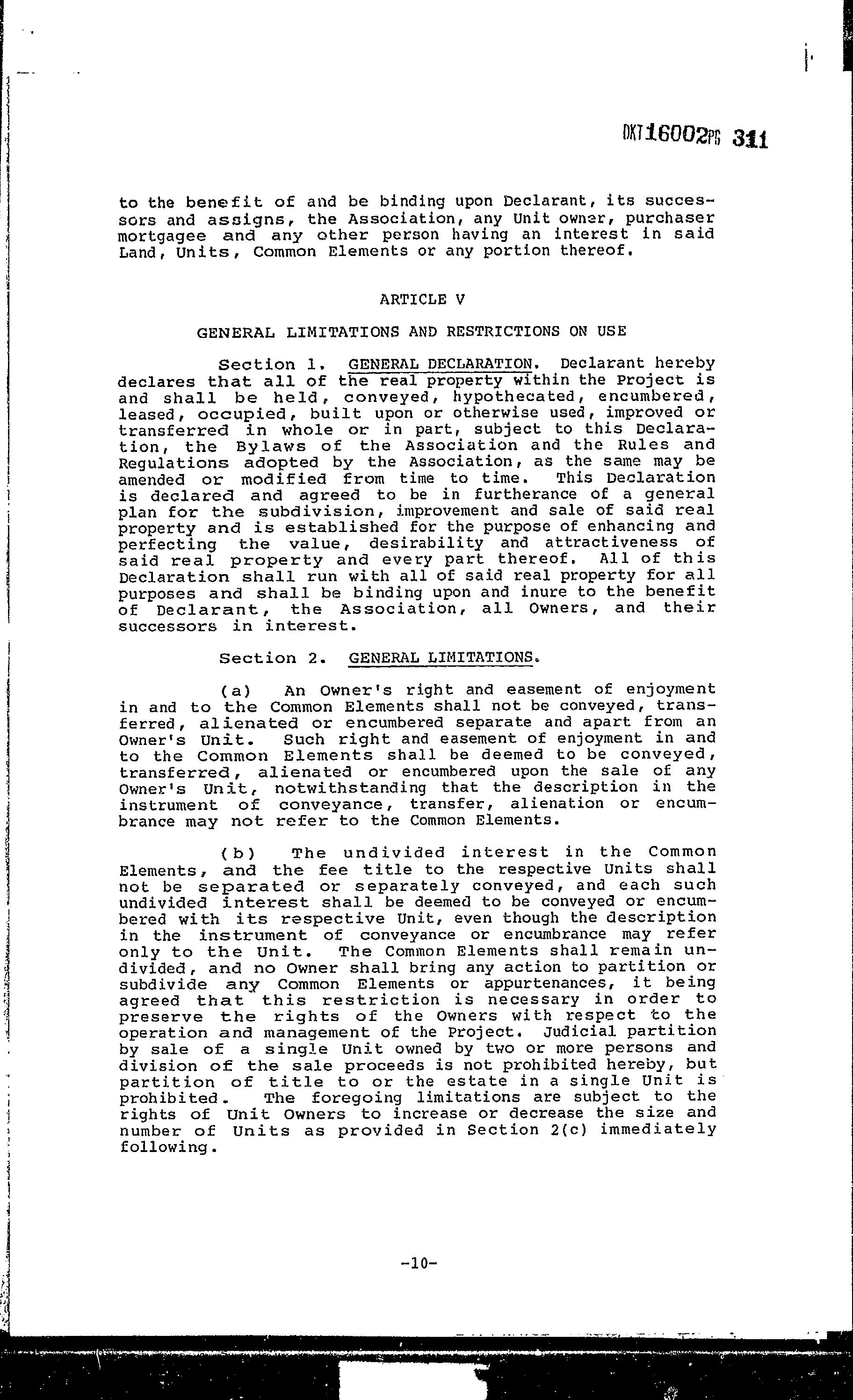 COVENANTS, CONDITIONS & RESTRICTIONS