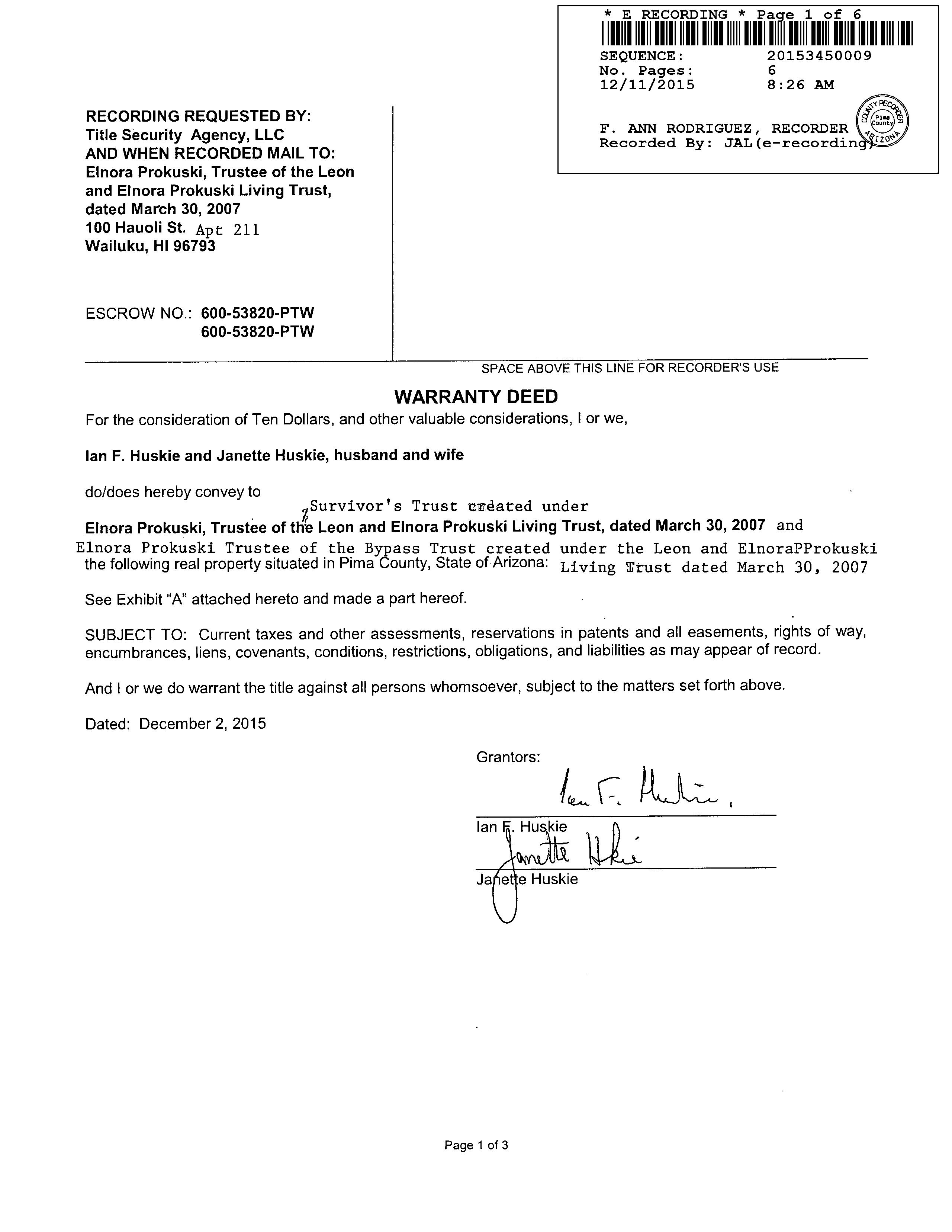 Title Company : Title Sec Agcy Llc Seller Name : Huskie Ian F & Janette Prior Sale Information Prior Rec/Sale Date : 03/14/2012 / 03/02/2012 Prior Doc Number : 740001
