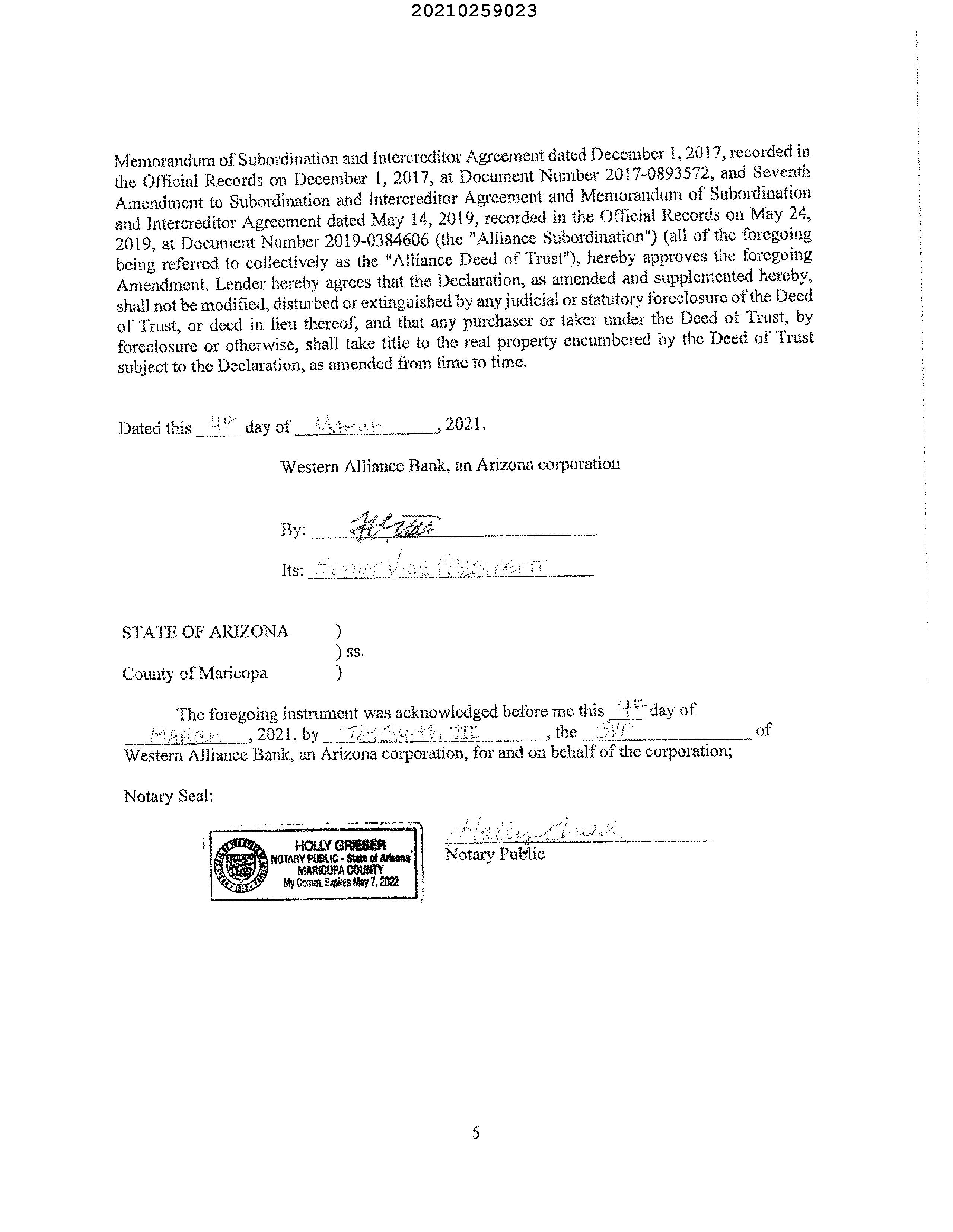 MARICOPA, AZ Document:RES AMD 2021.259023 Page:5 of 7 Printed on:9/6/2022 3:04 PM Branch :FC0 User :JSTI