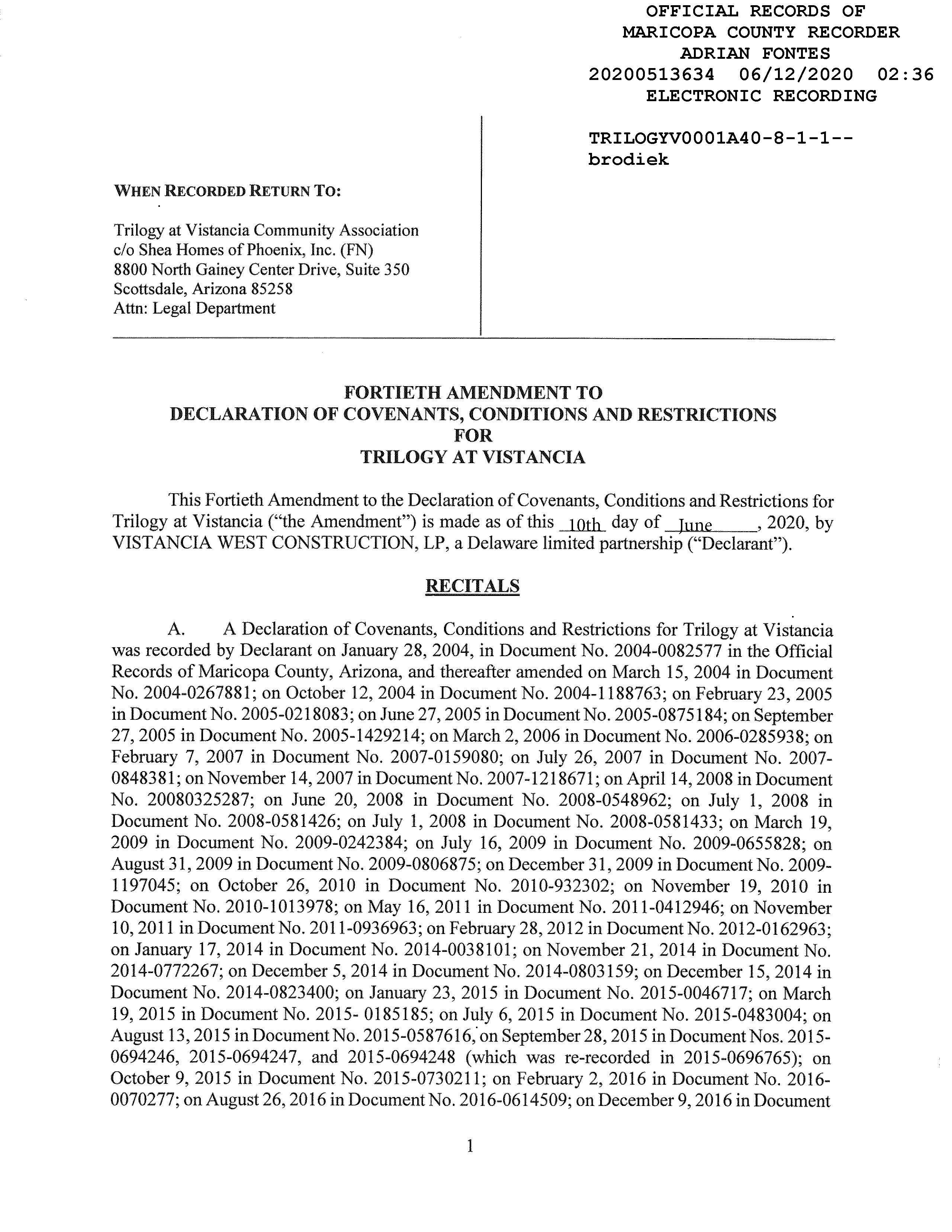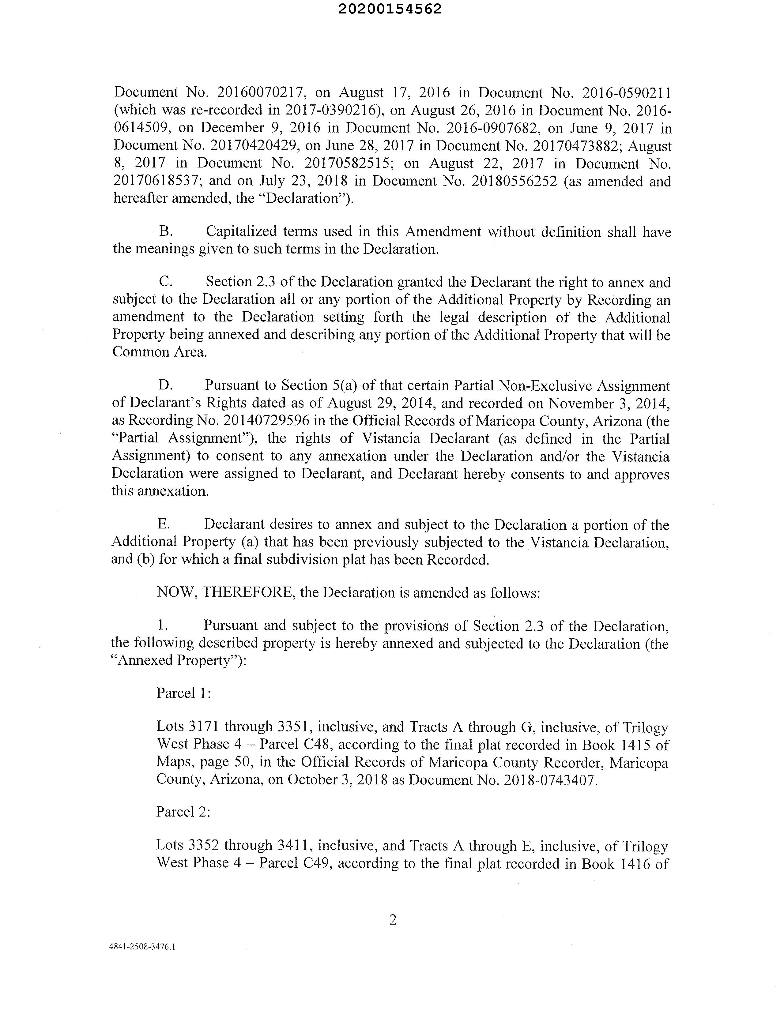 MARICOPA, AZ Document:RES AMD 2020.513634 Page:2 of 8 Printed on:9/6/2022 3:04 PM Branch :FC0 User :JSTI