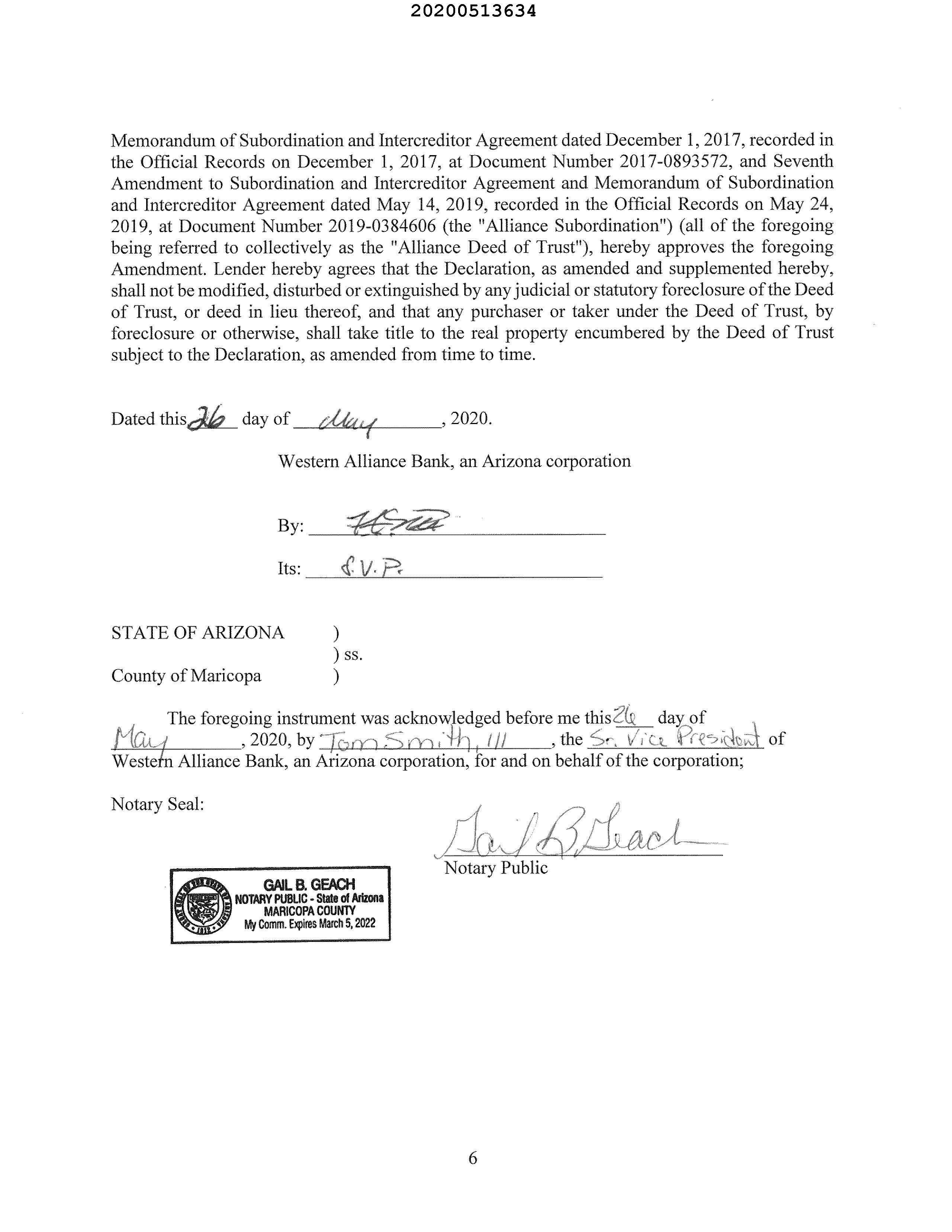MARICOPA, AZ Document:RES AMD 2020.513634 Page:6 of 8 Printed on:9/6/2022 3:04 PM Branch :FC0 User :JSTI