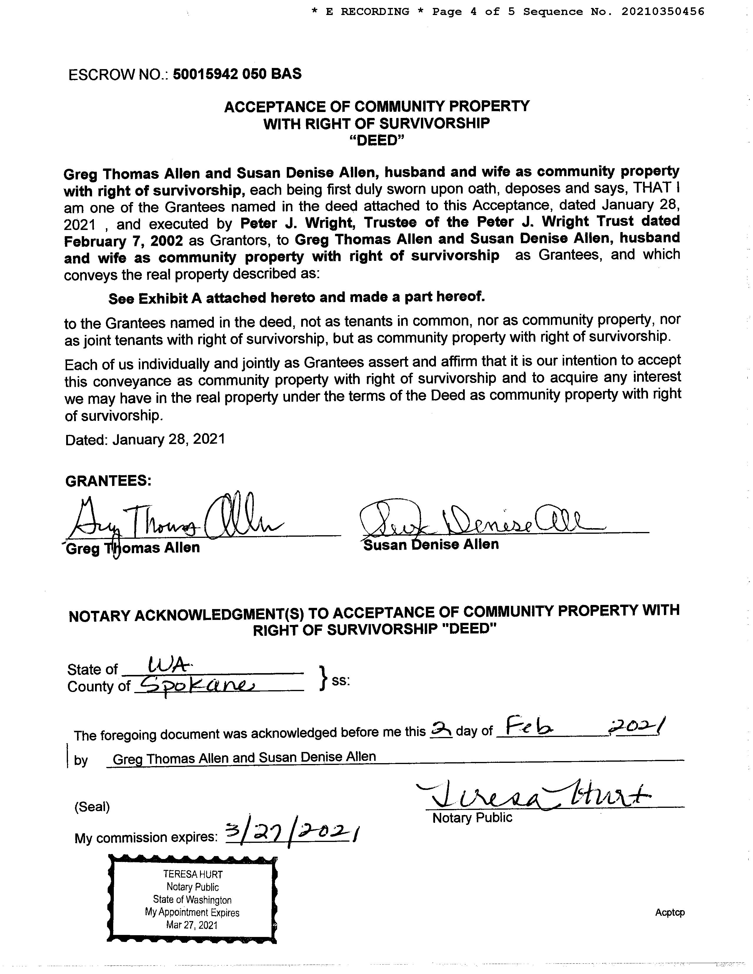 Owner Name : Allen Greg Thomas / Allen Susan Denise