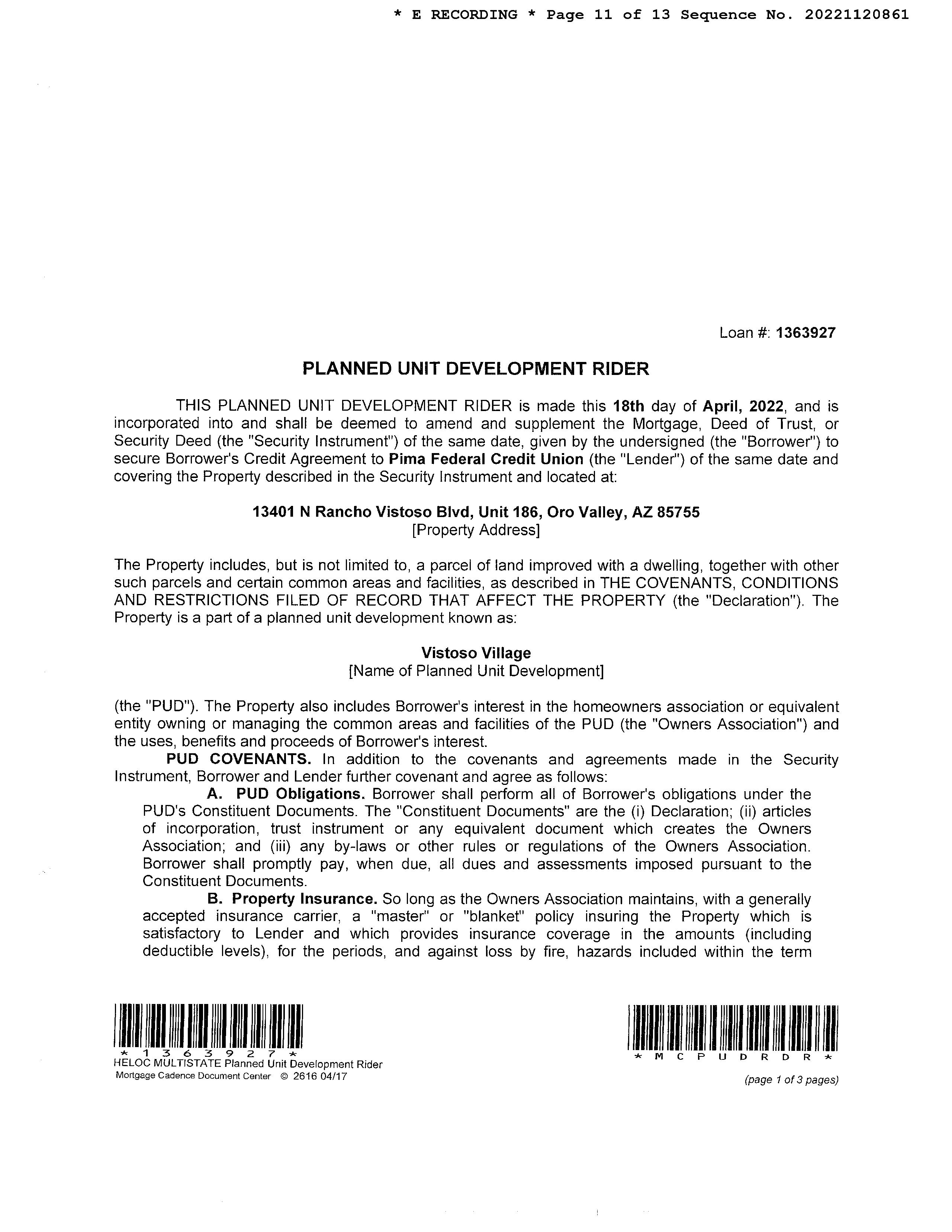 Subject Property : 13401 N Rancho Vistoso Blvd # 186 Oro Valley AZ 85755