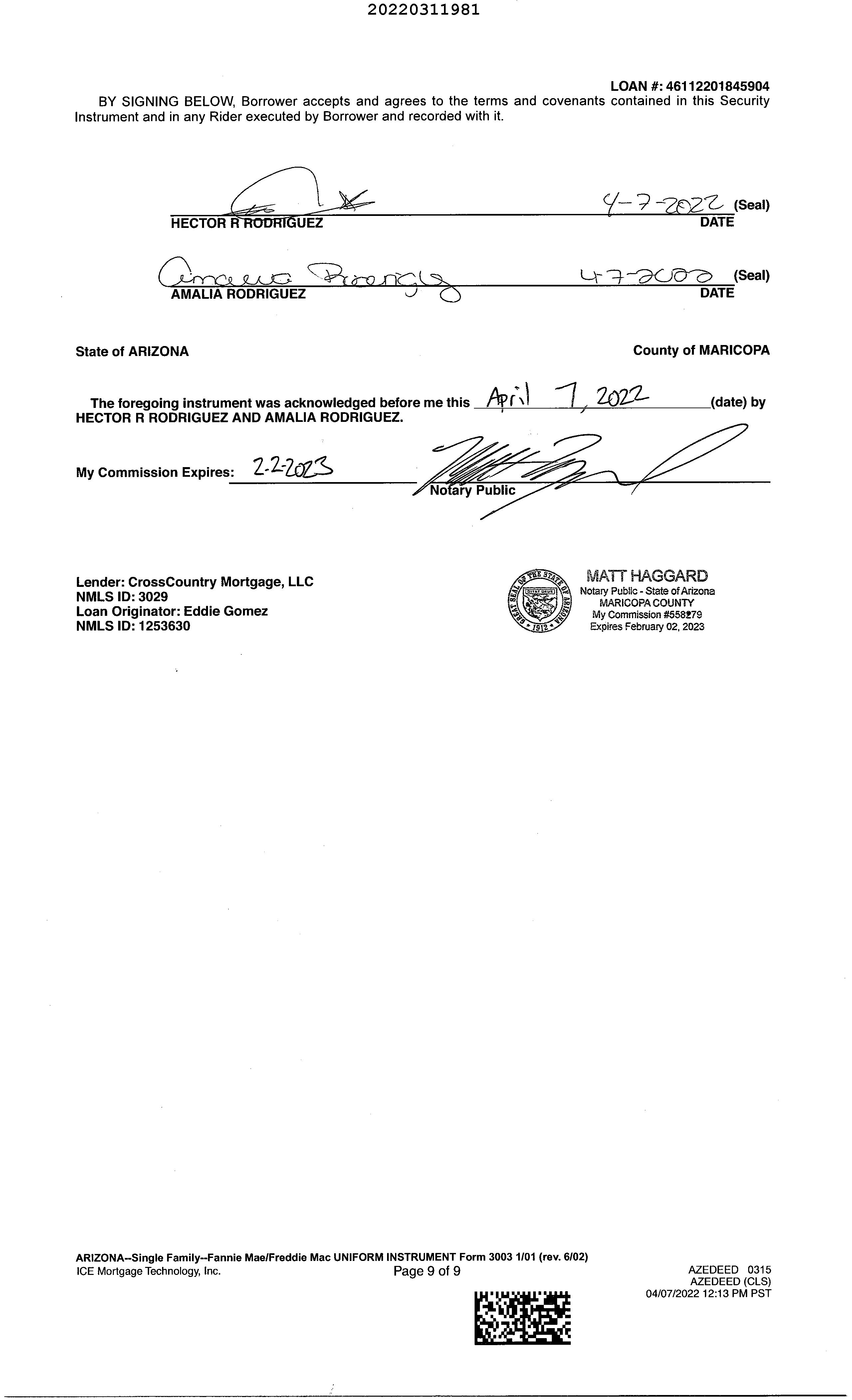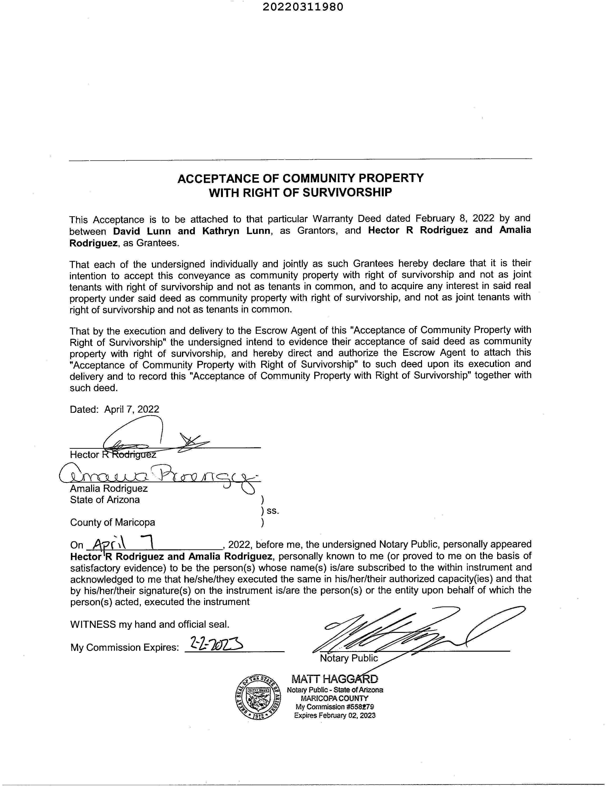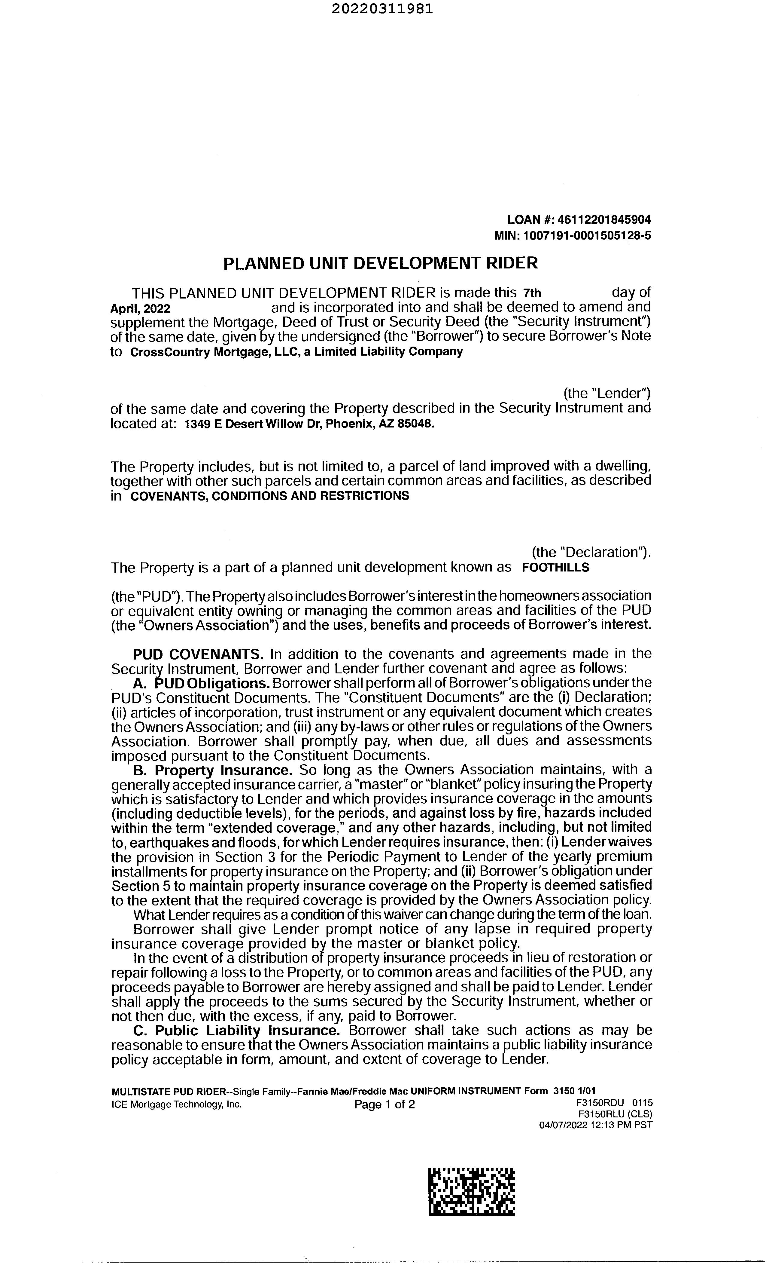 OWNER: RODRIGUEZ HECTOR & AMALIA 2022 311980 04/08/2022 SITUS: 1349 E DESERT WILLOW DR PHOENIX