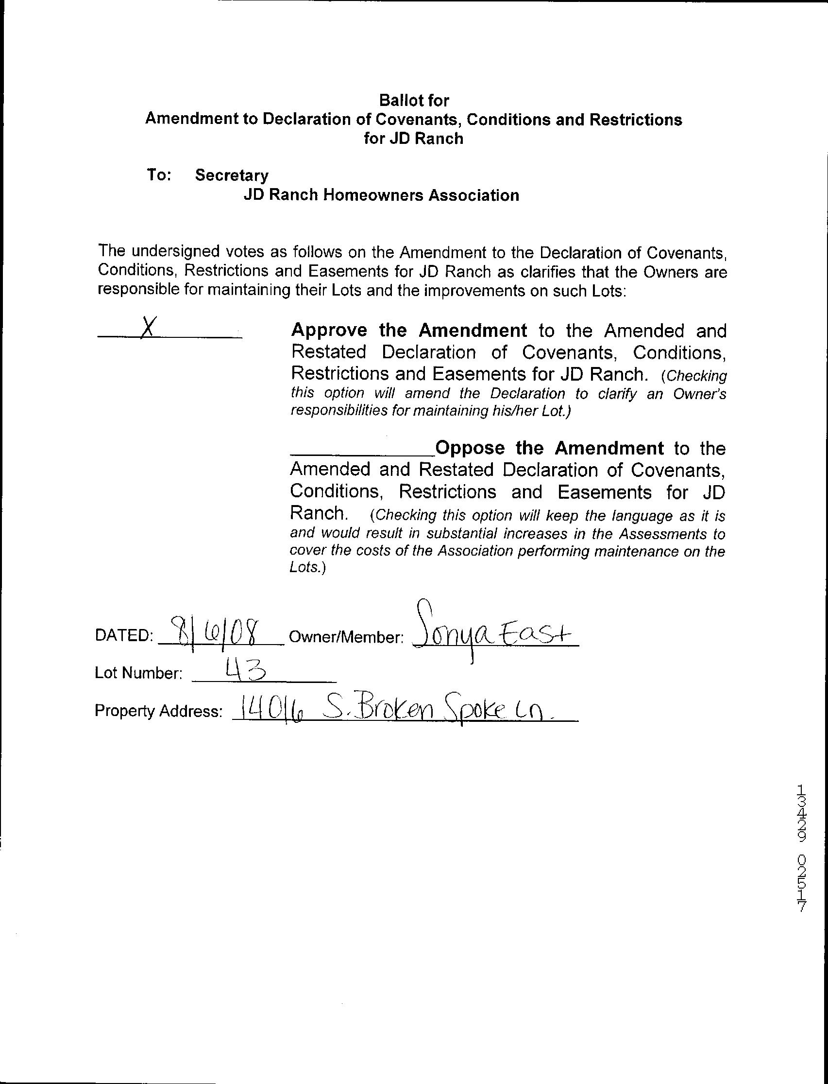 ©2021 First American Financial Corporation and/or its affiliates. All rights reserved. NYSE: FAF 05252610821 COVENANTS, CONDITIONS & RESTRICTIONS PREPARED FOR : First American Title Insurance Company, and the operating divisions thereof, make no express or implied warranty respecting the information presented and assume no responsibility for errors or omissions. First American, the eagle logo, First American Title, and firstam.com are registered trademarks or trademarks of First American Financial Corporation and/or its affiliates. 13754 S. Galloping Dee Ct. Vail, AZ 85641
