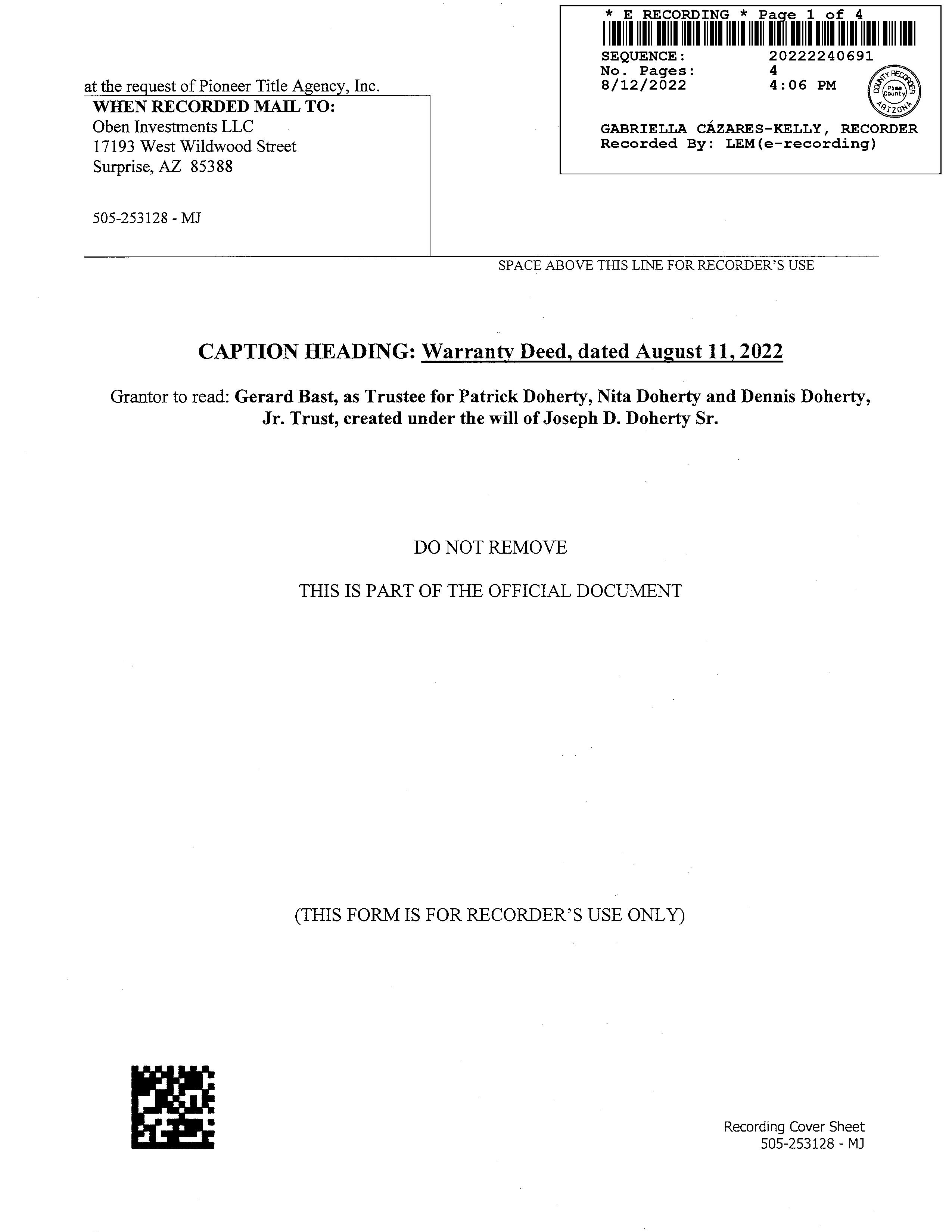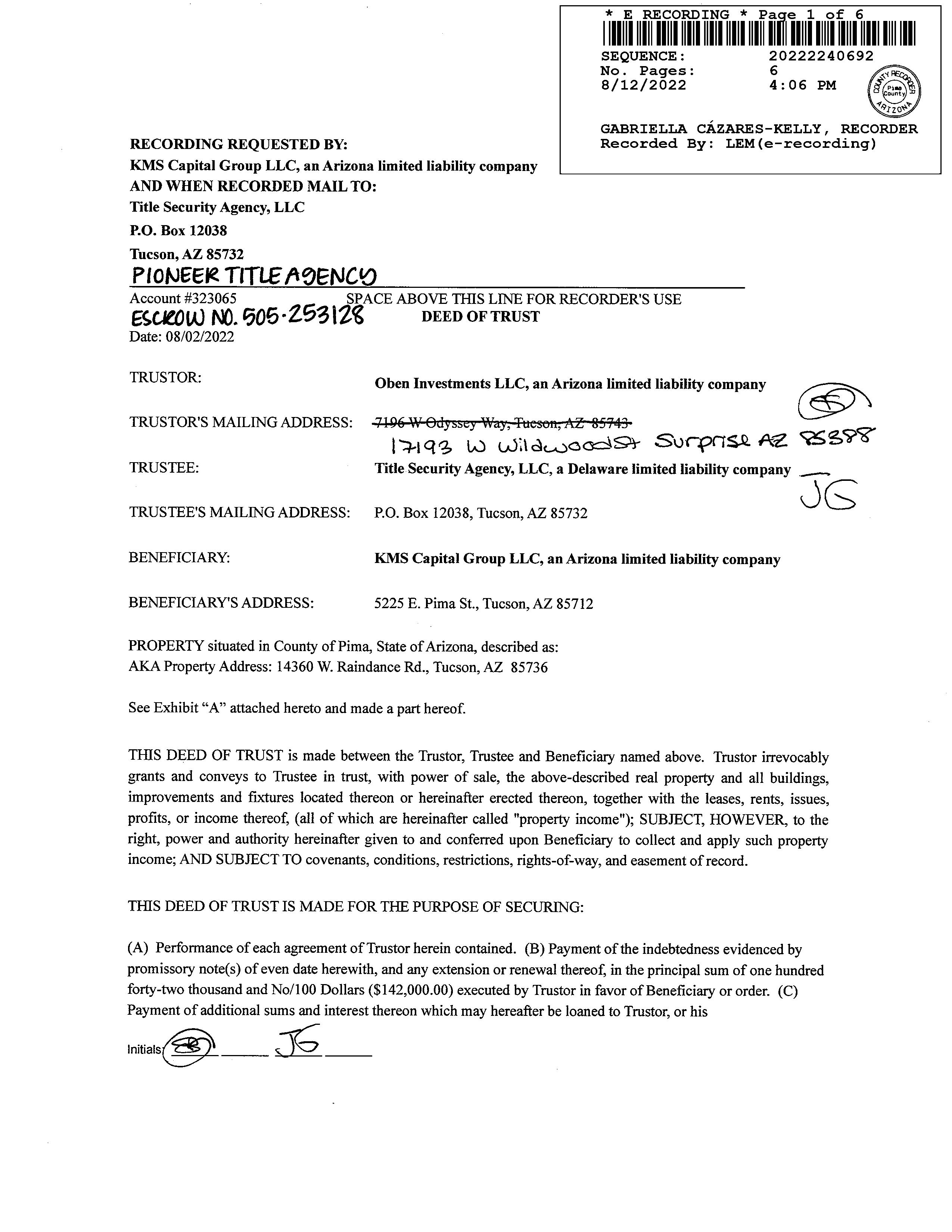 + FIRST AMERICAN TITLE, FC0, JSTI PIMA, AZ 11/15/2022 01:47PM R9C8 INVESTIGATIVE SEARCH RESULTS PAGE 1 OF 1