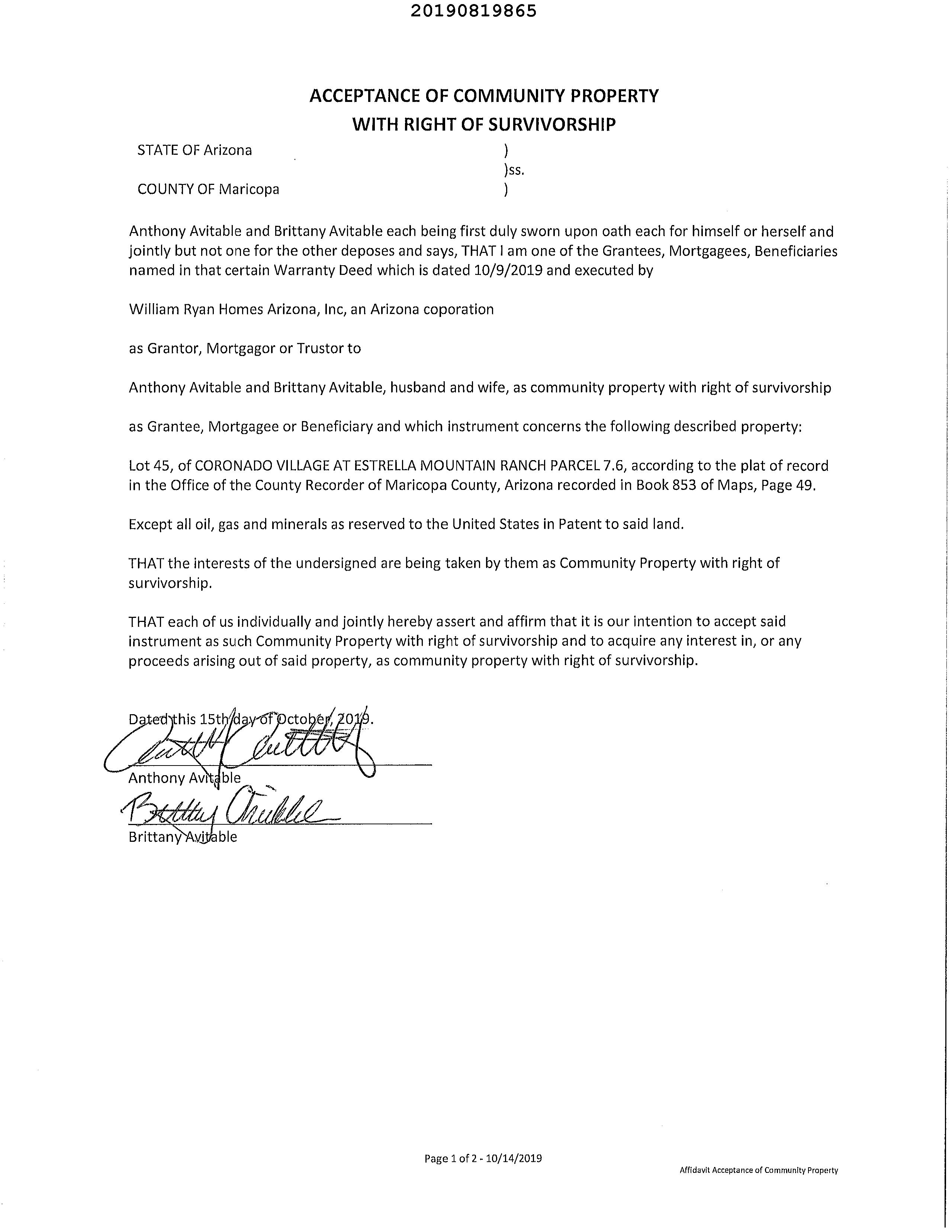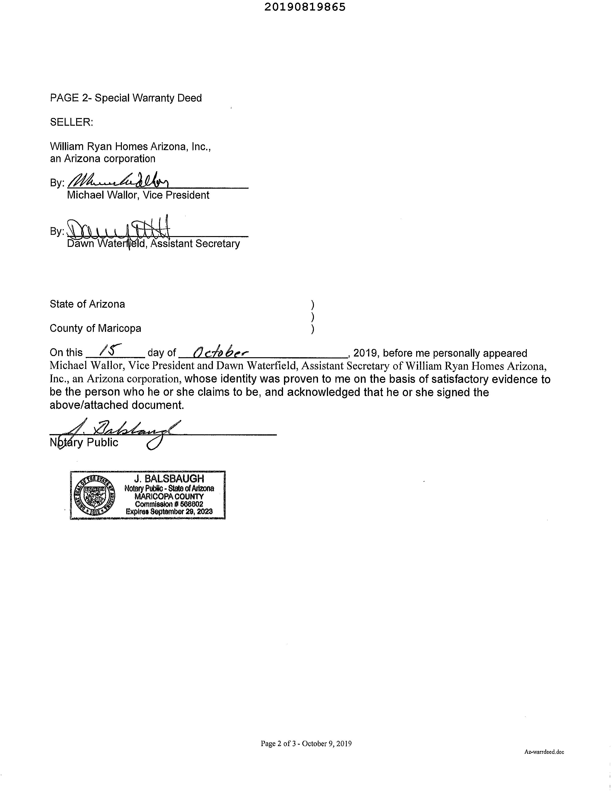 MARICOPA, AZ Document:DED SWR 2019.819865 Page:2 of 5 Printed on:8/16/2022 2:59 PM Branch :FC0 User :JSTI