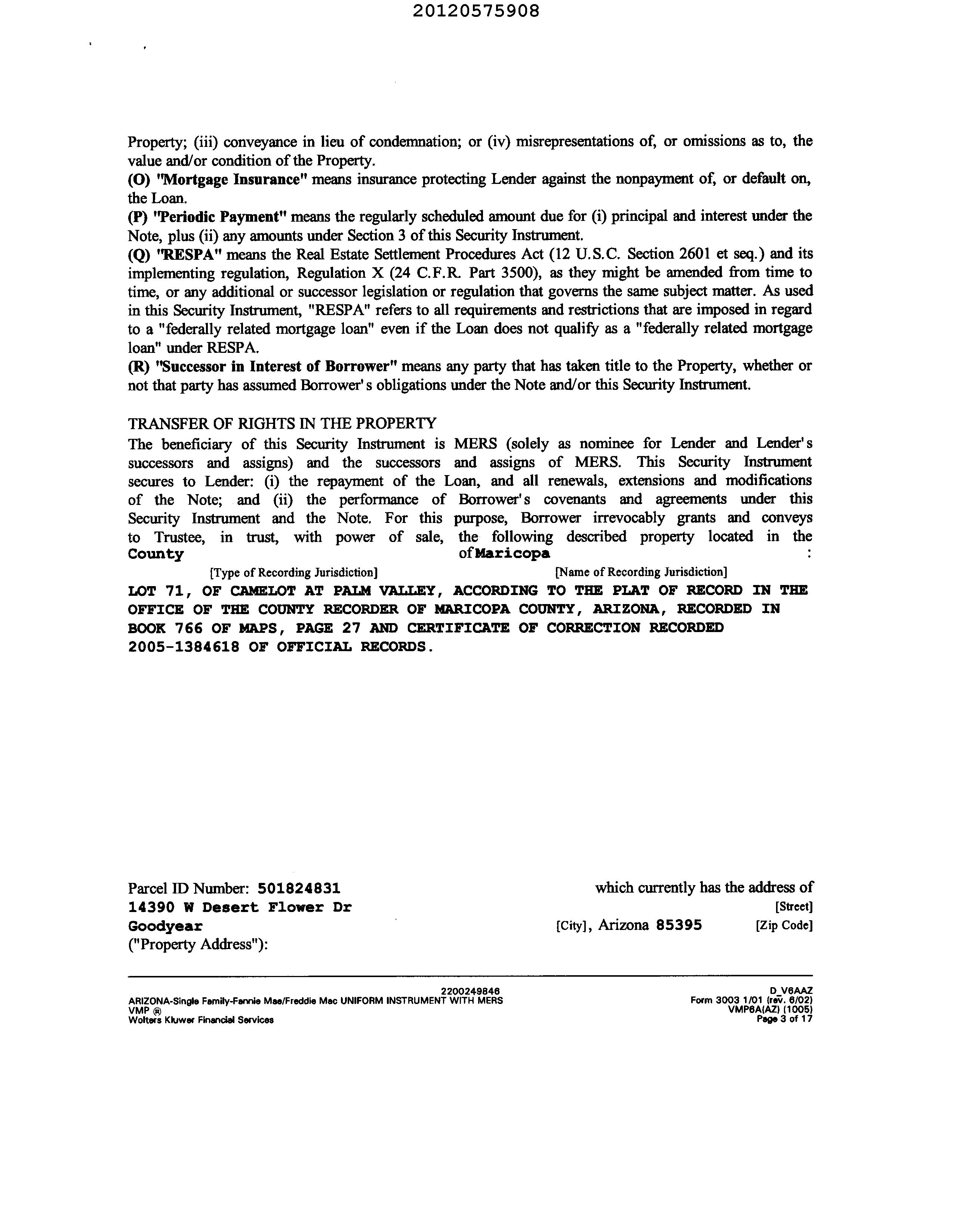 Subject Property 14390 W Desert Flower Dr APN:AZGoodyear85395501-82-483