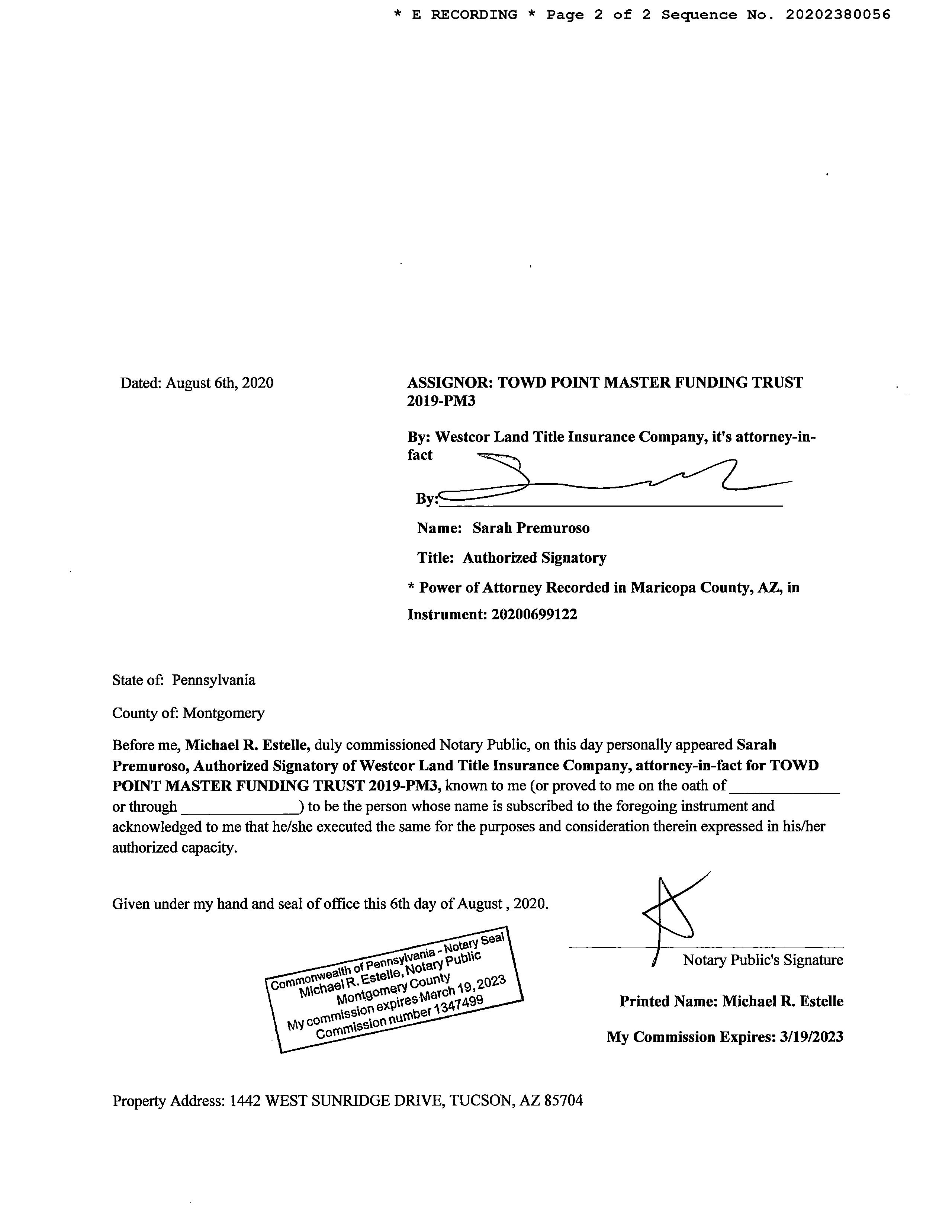 Mailing Address : 1442 W Sunridge Dr, Tucson AZ 85704-8379 C043
