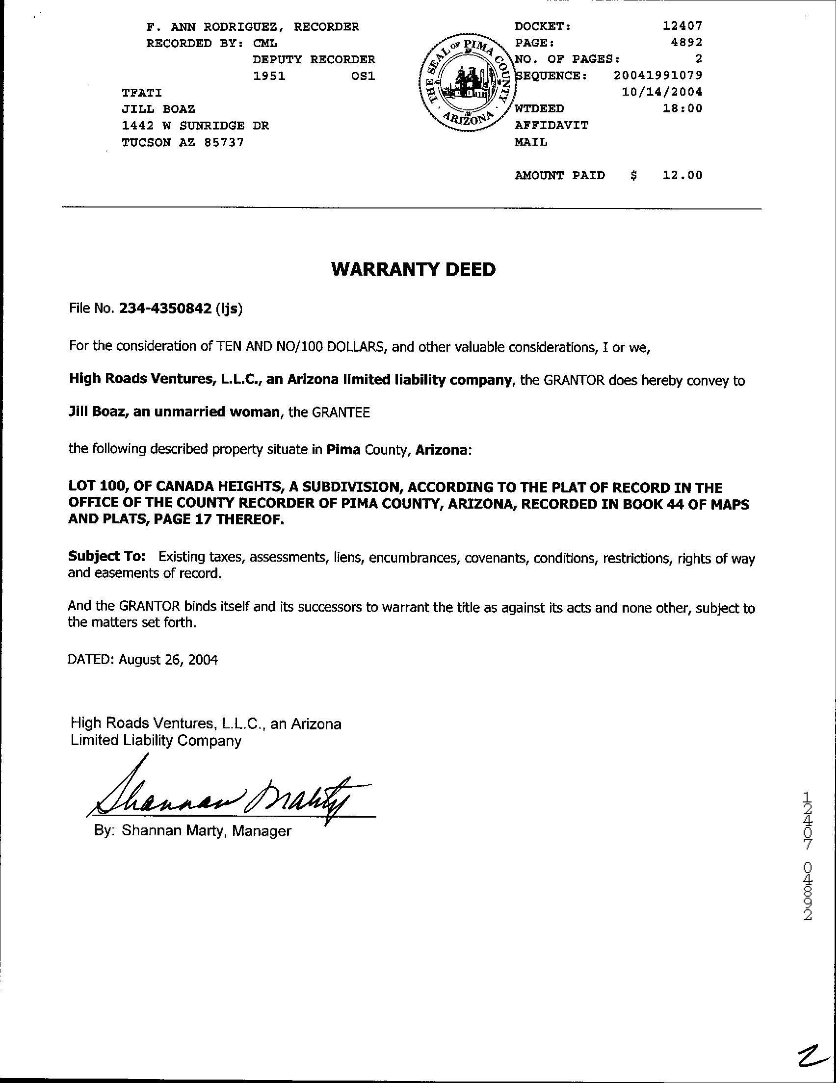 Deed Type : Warranty Deed