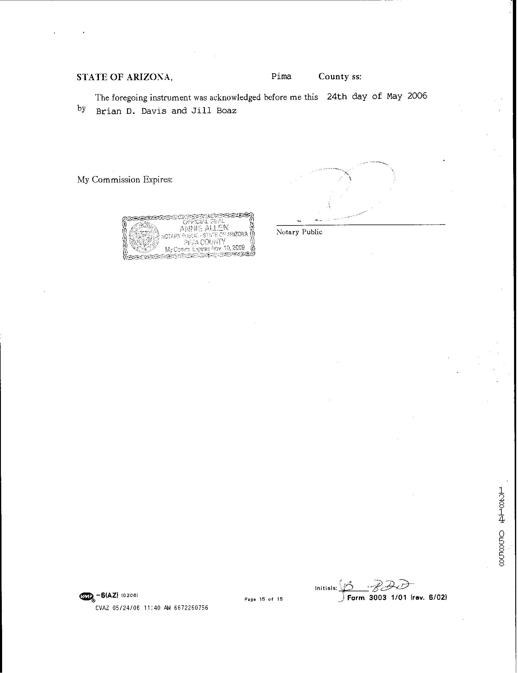 Owner Name : Davis Brian D / Boaz Jill
