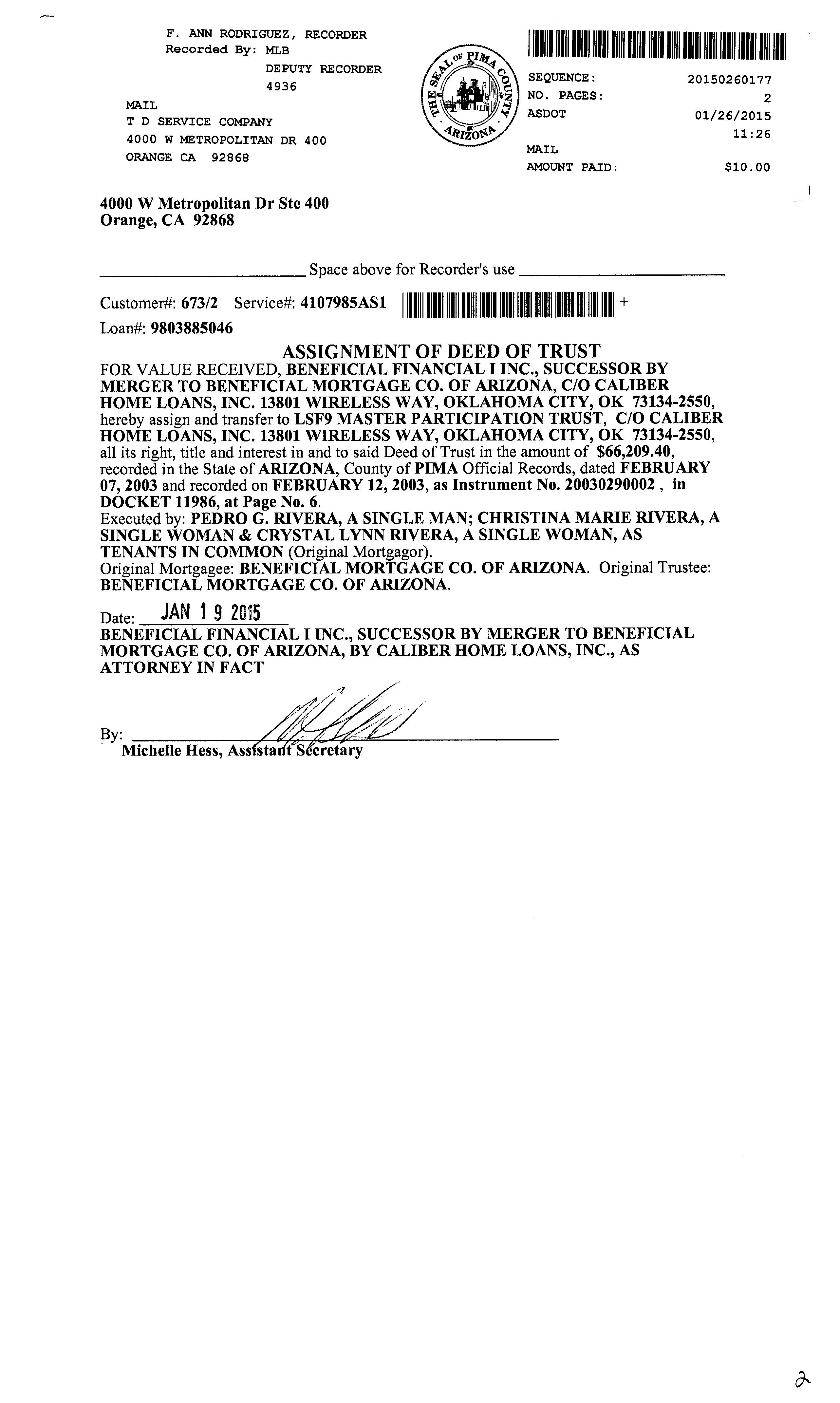 Owner Name : Rivera Pedro G / Rivera Christine Marie
