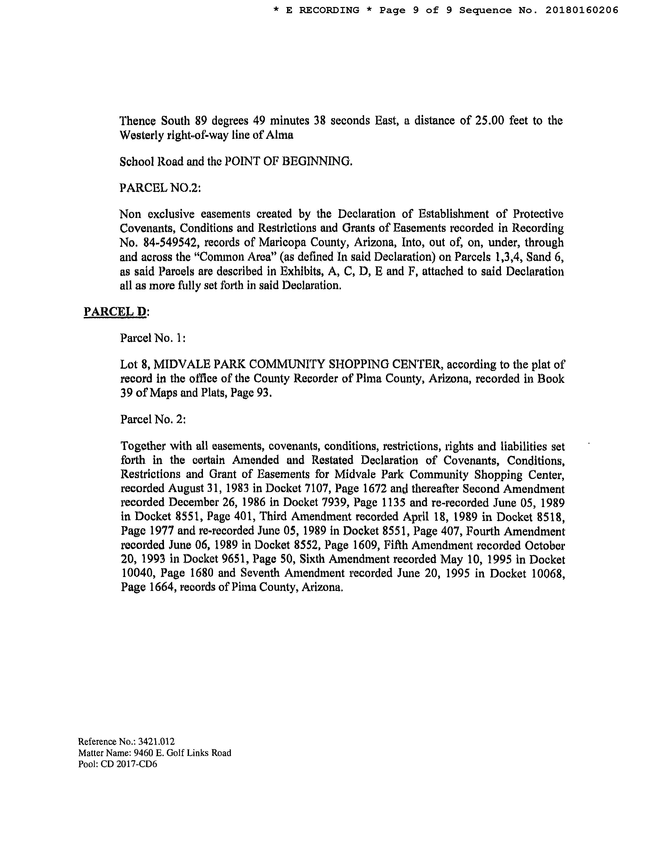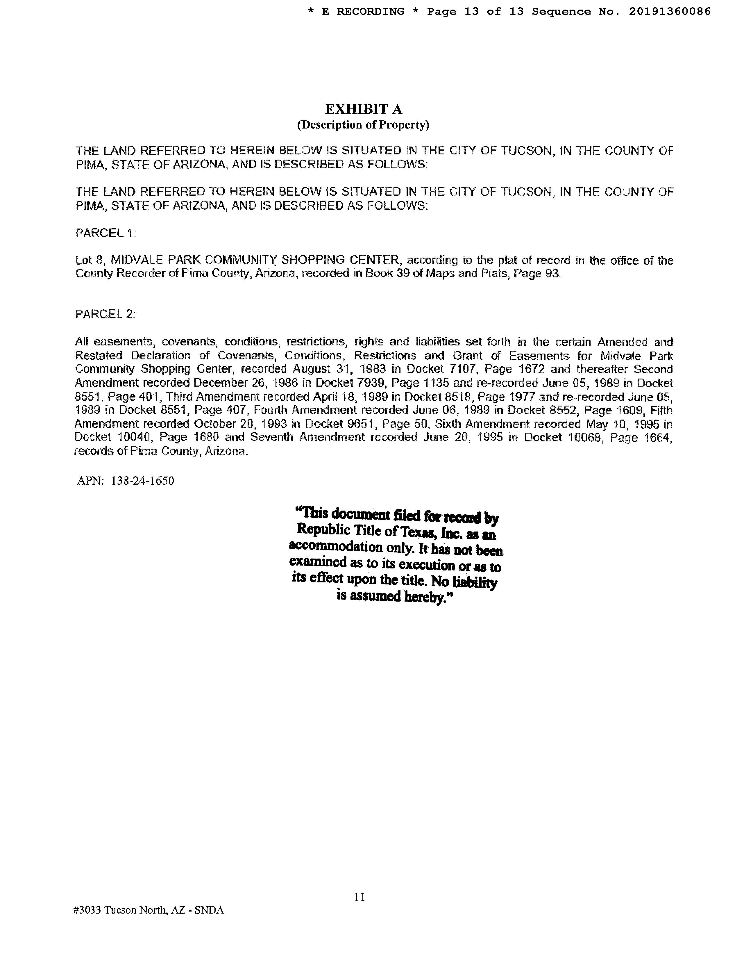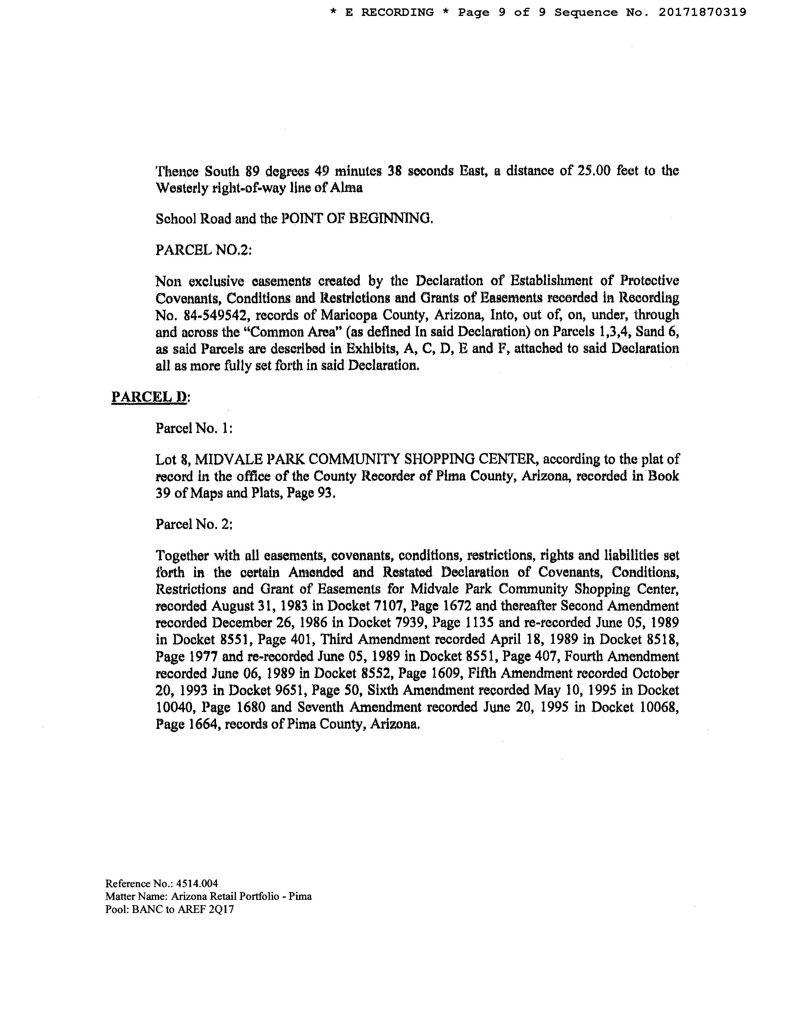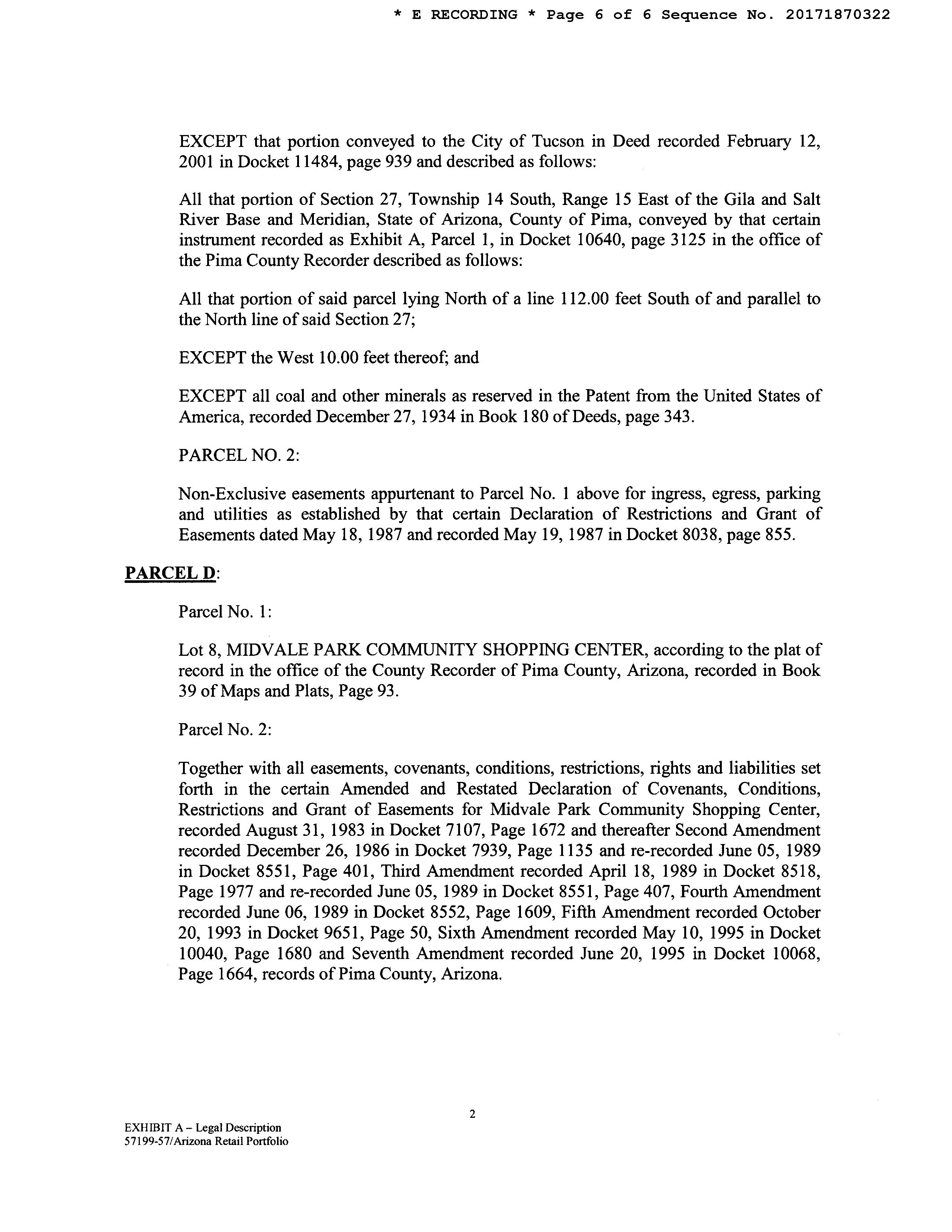 Legal Description : Midvale Park Community Shopping Center Lot 8 County : Pima, Az