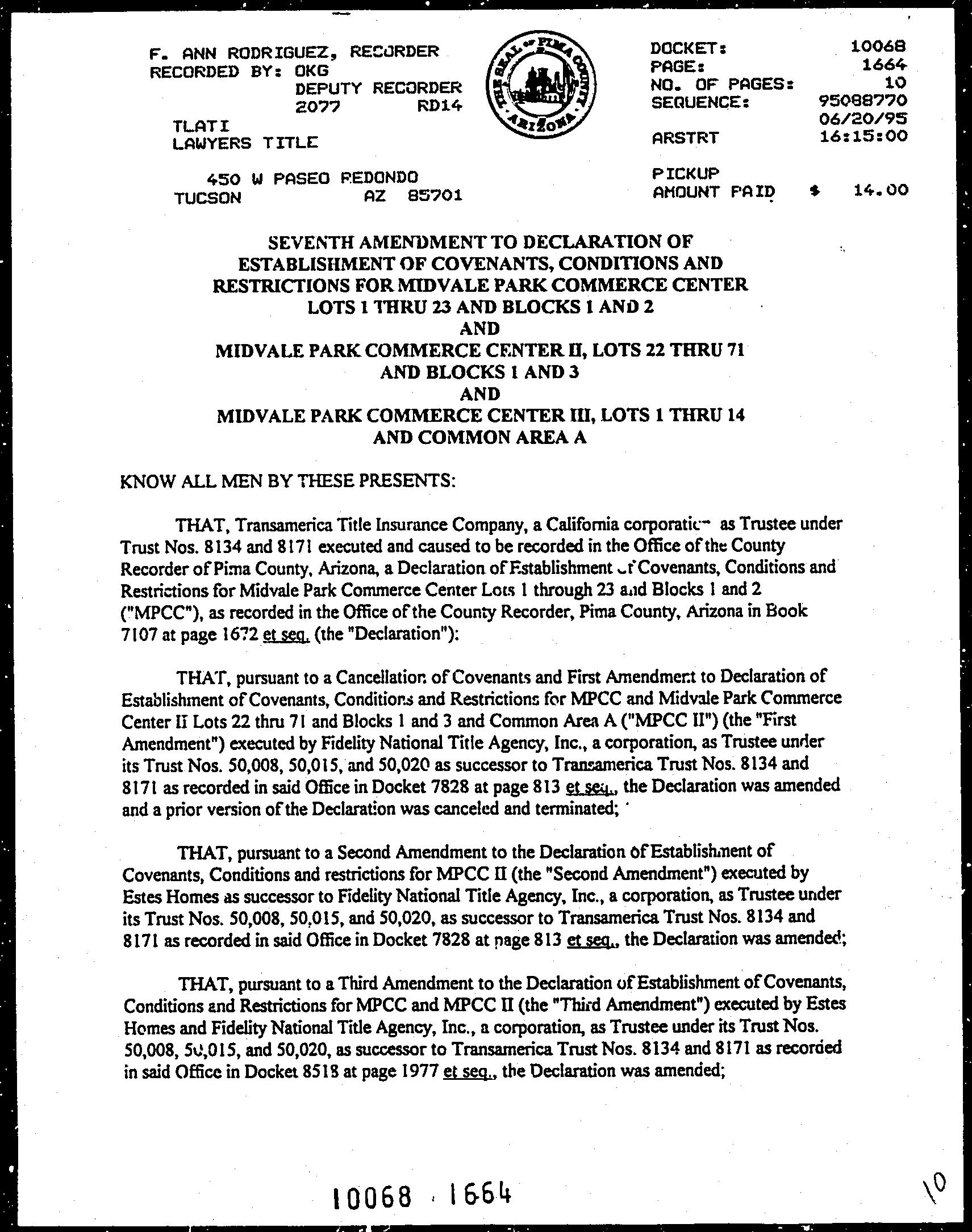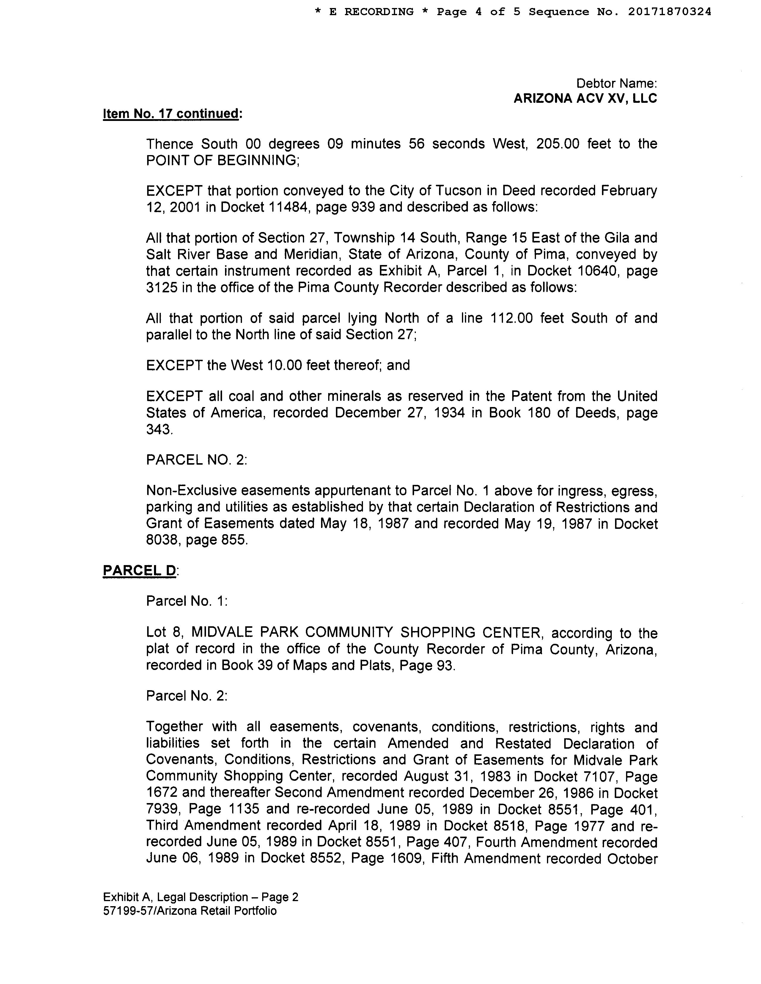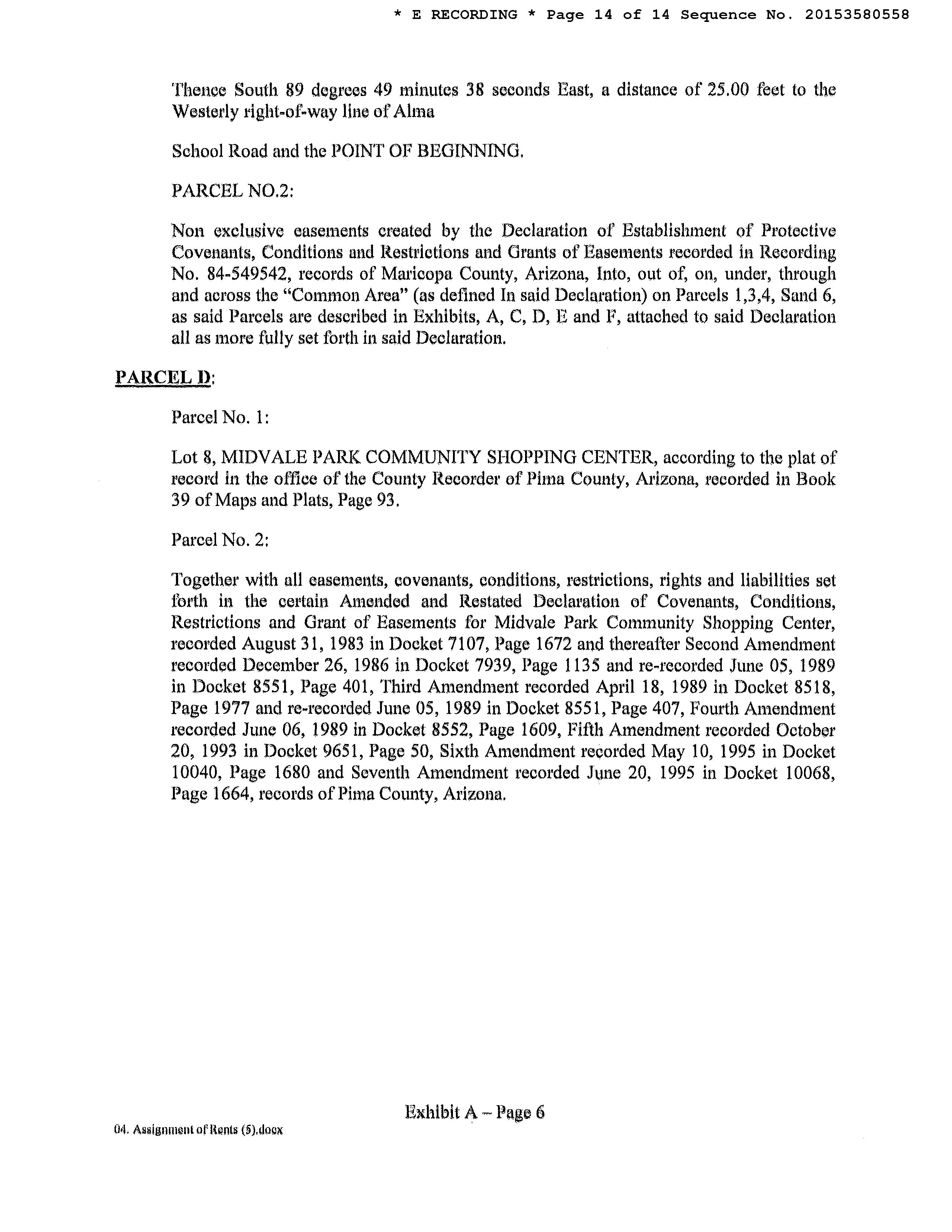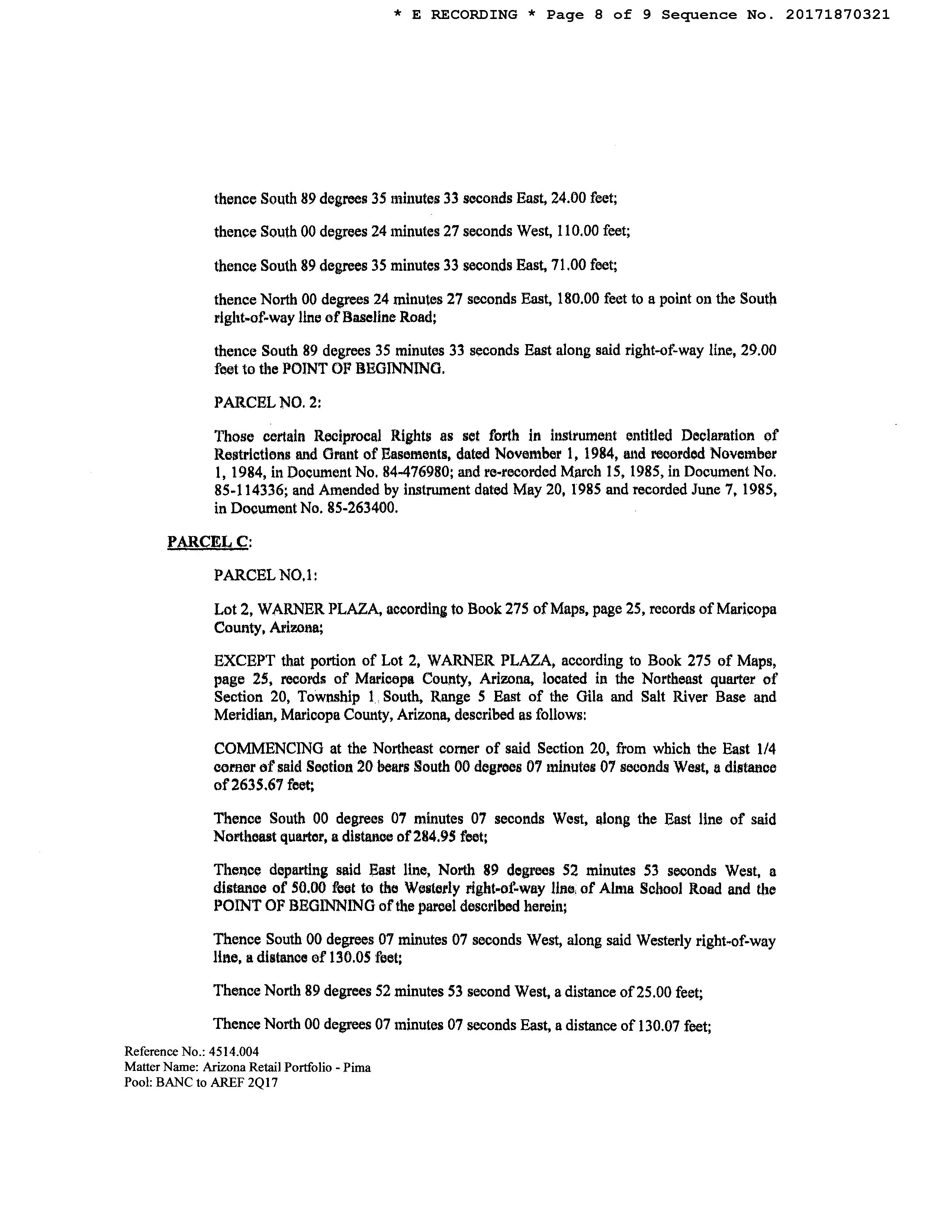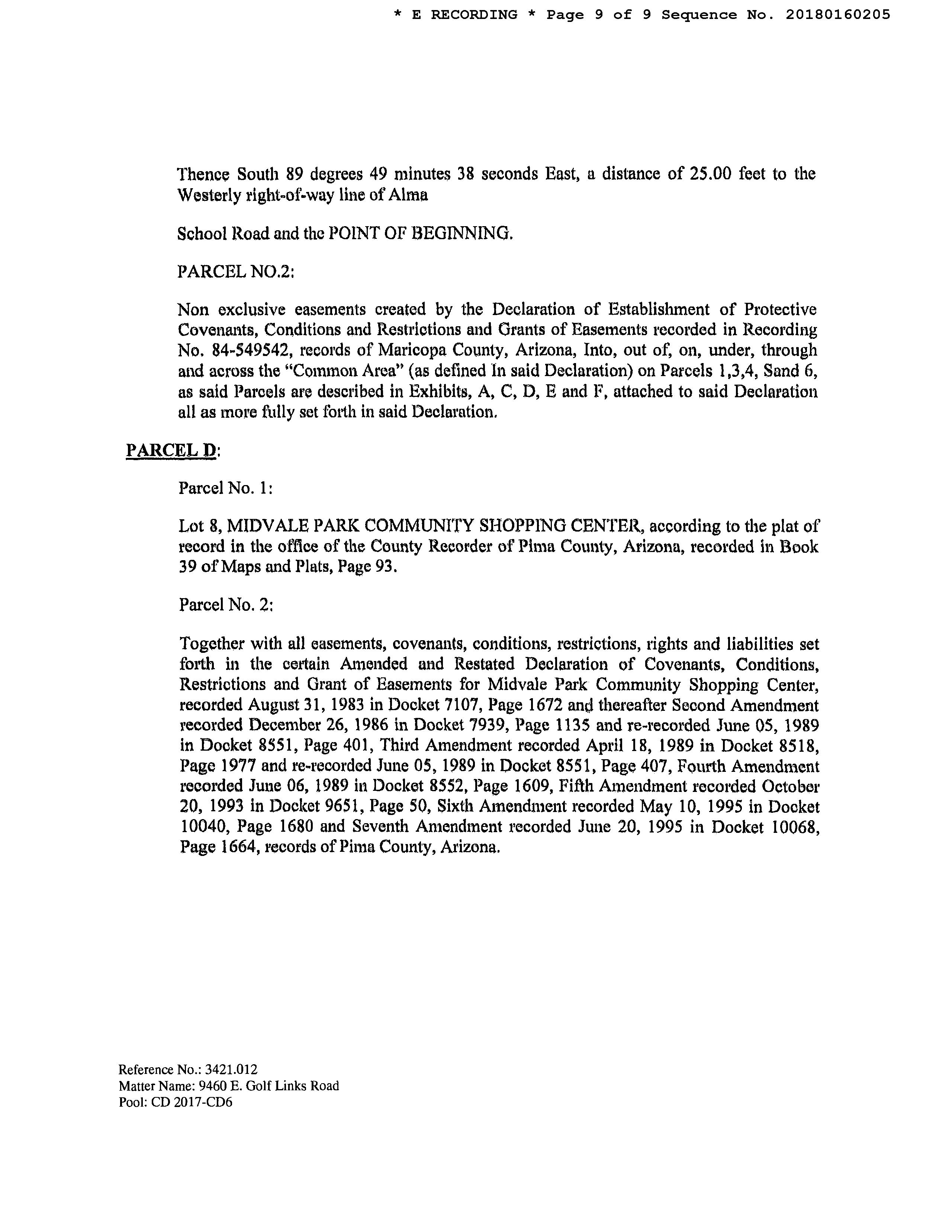 Legal Description : Midvale Park Community Shopping Center Lot 8 County : Pima, Az