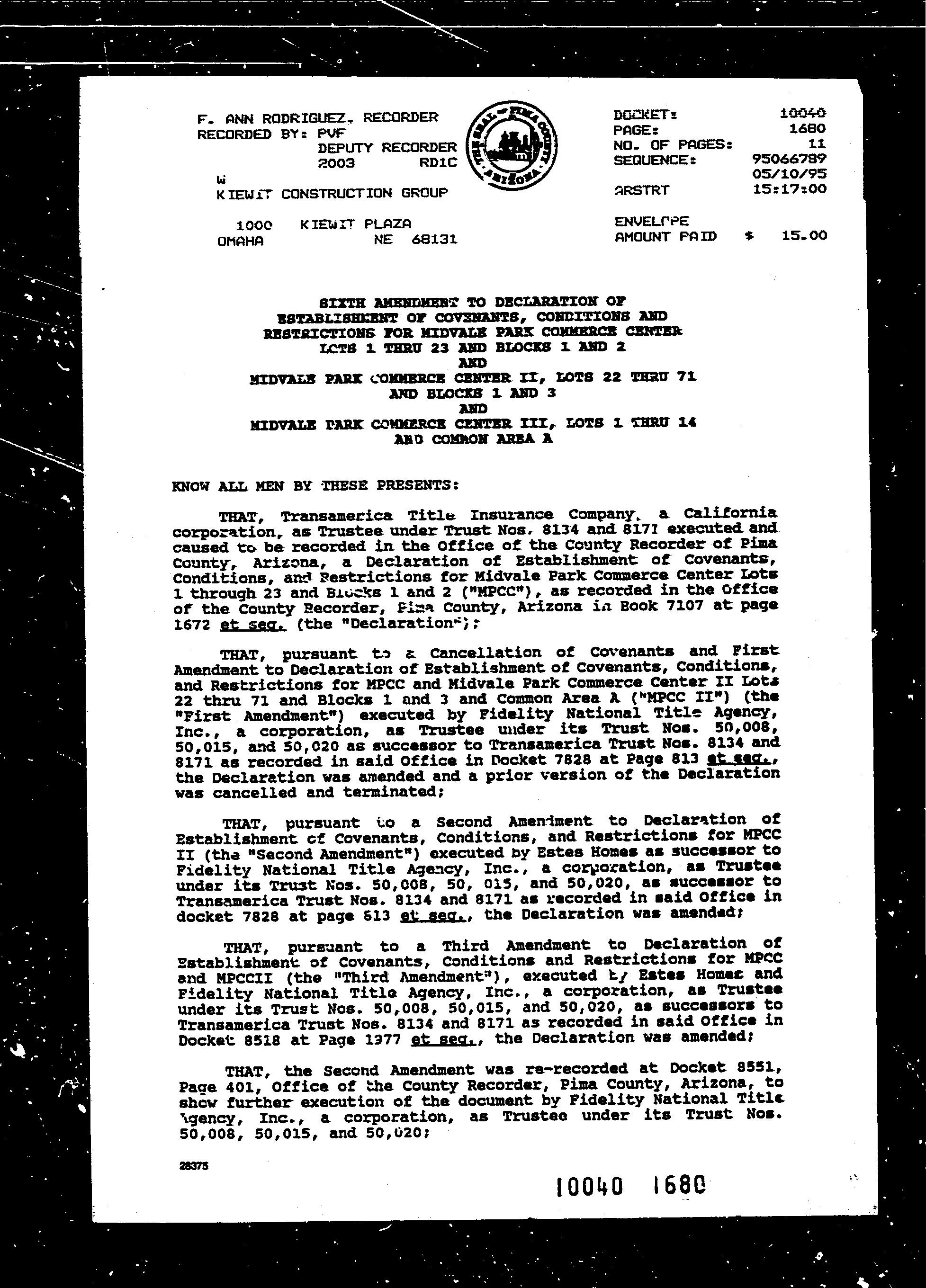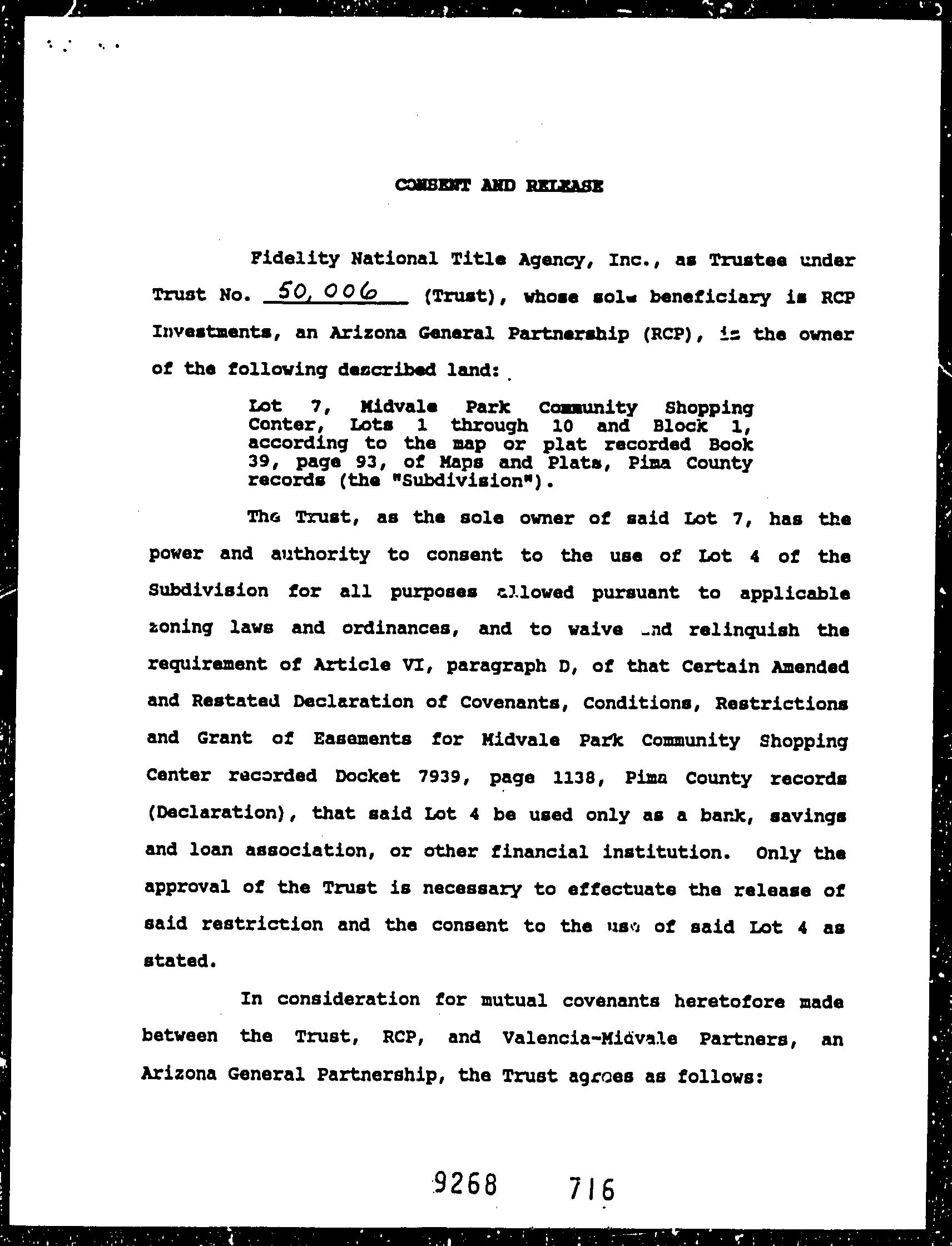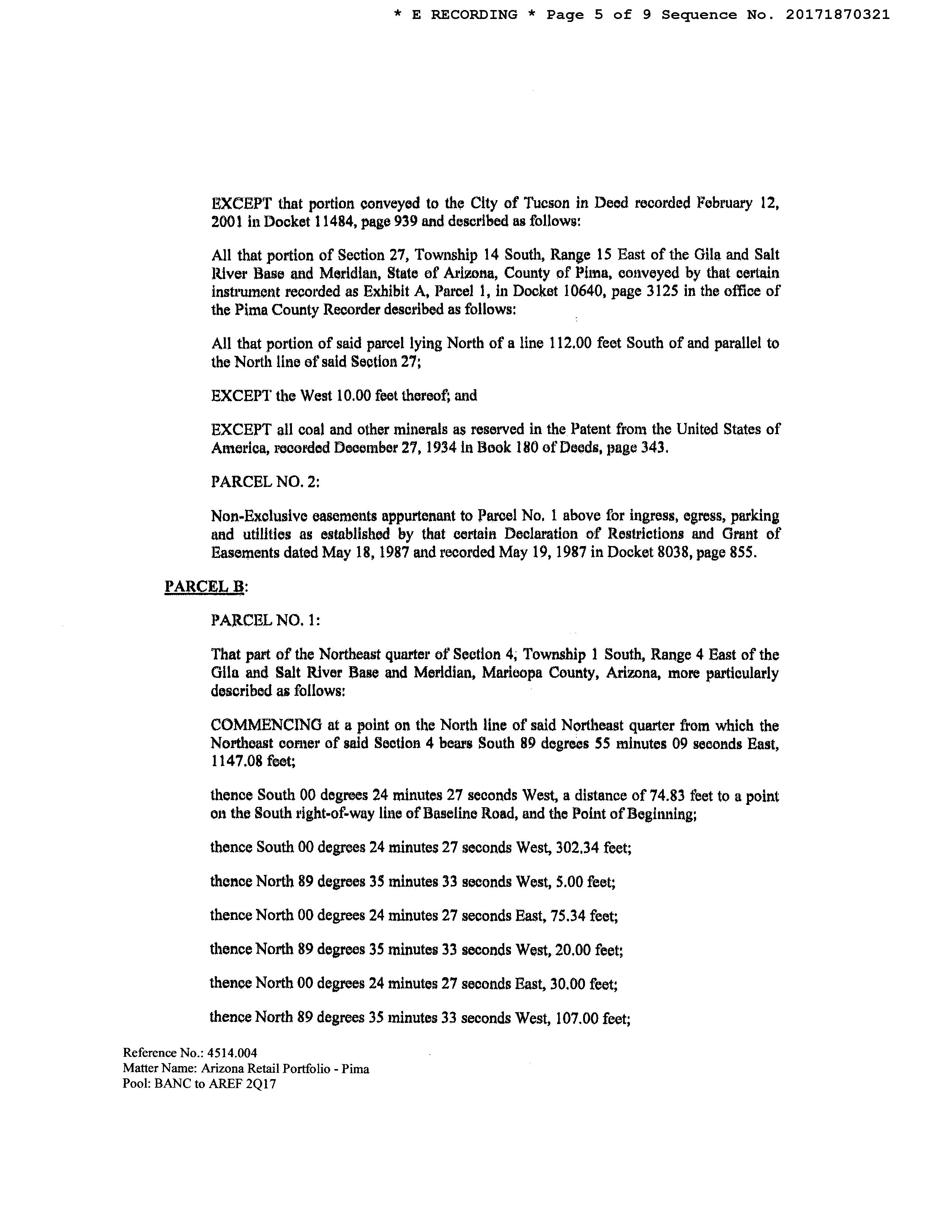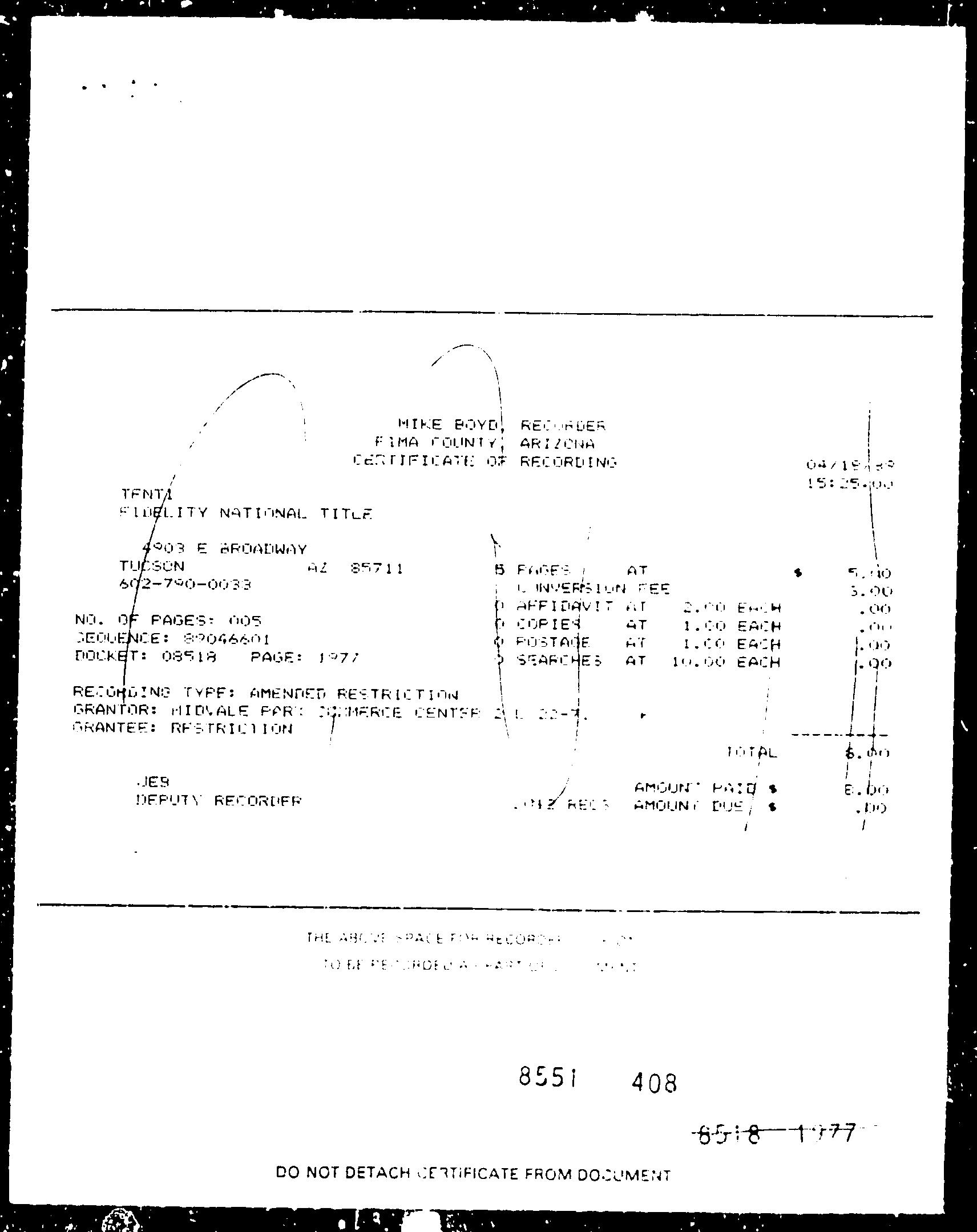 Legal Description : Midvale Park Community Shopping Center Lot 8 County : Pima, Az