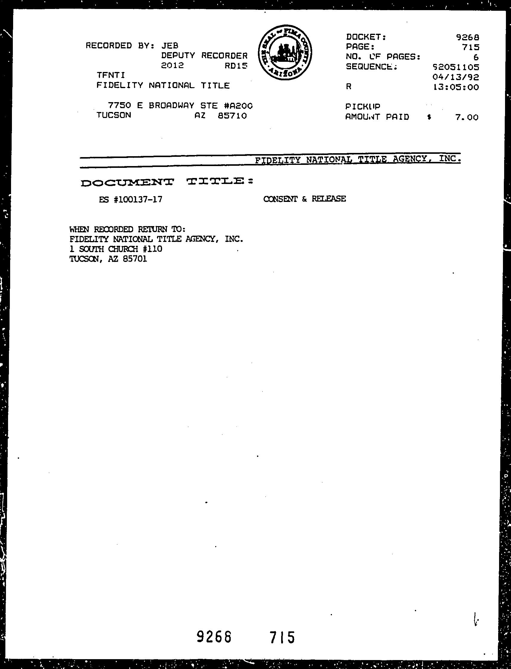 6 CENTRAL 520.319.9207 | Fax 520.319.1468 3777 E. Broadway Blvd., Ste. 102 Tucson, AZ 85716