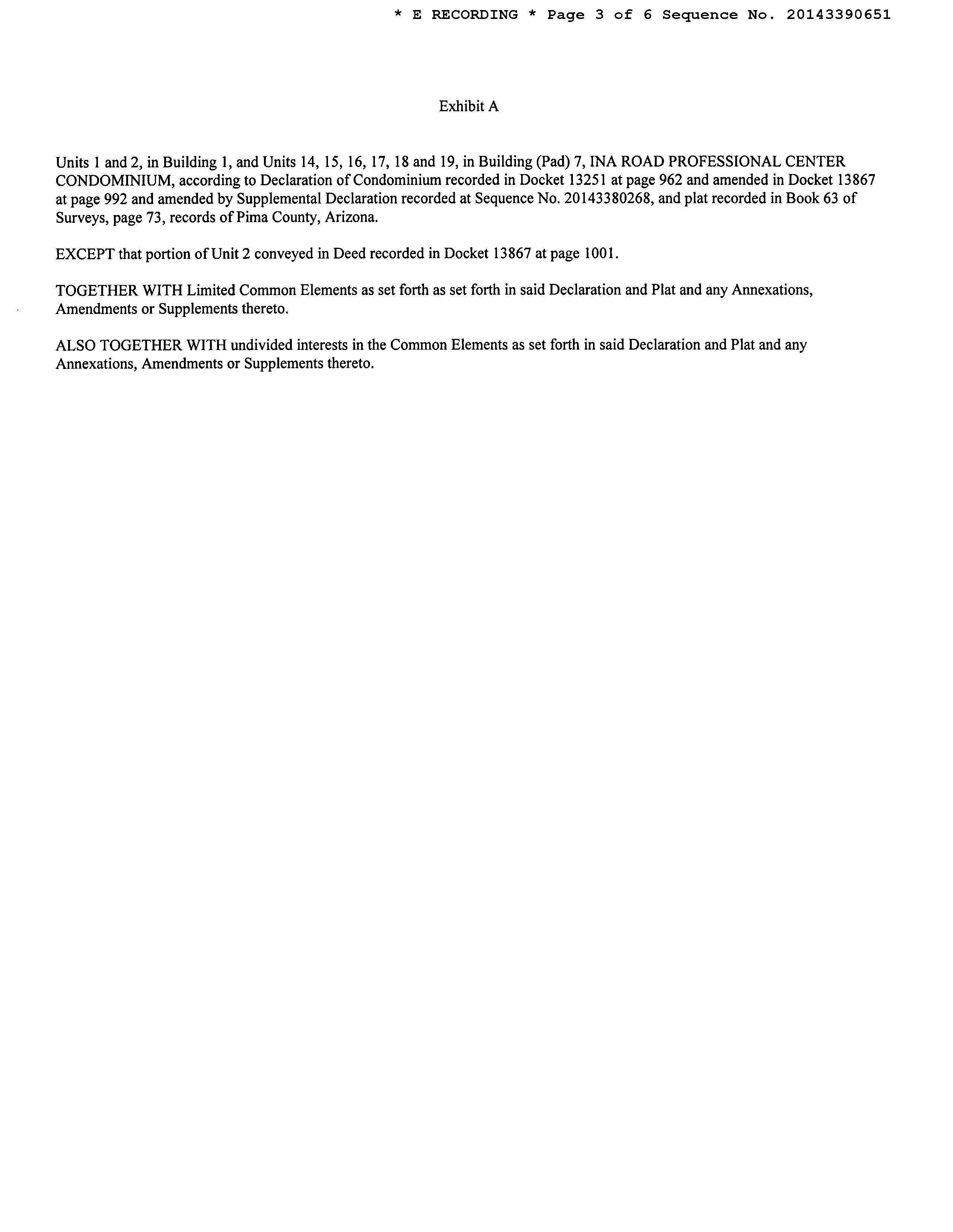Legal Description : Ina Road Professional Center Condominium Ros 63/073 Unit 16 Aka: Resub Ptn Lot 2 Rancho Palos Verdes Extension