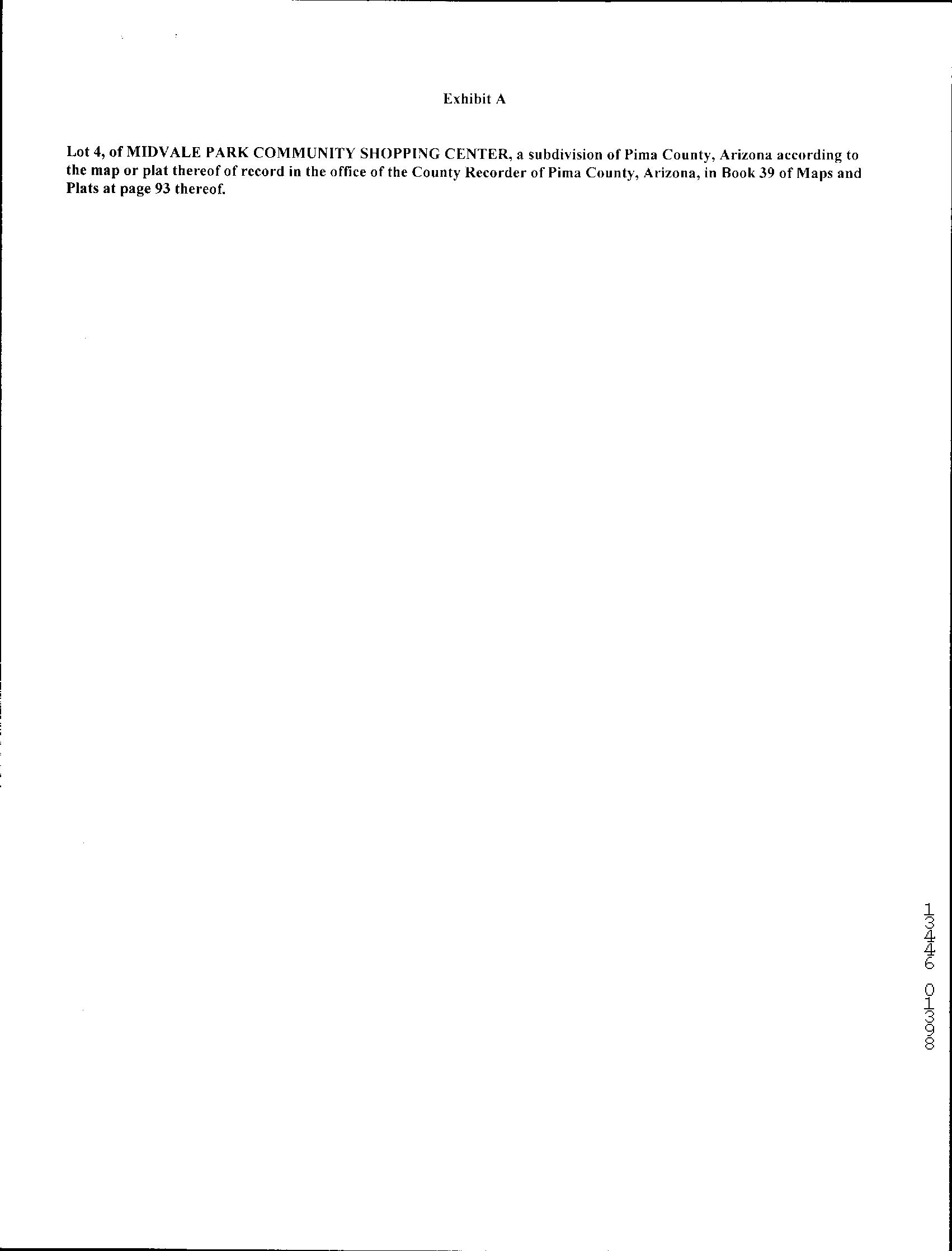 Legal Description : Midvale Park Community Shopping Center Lot 4 County : Pima, Az