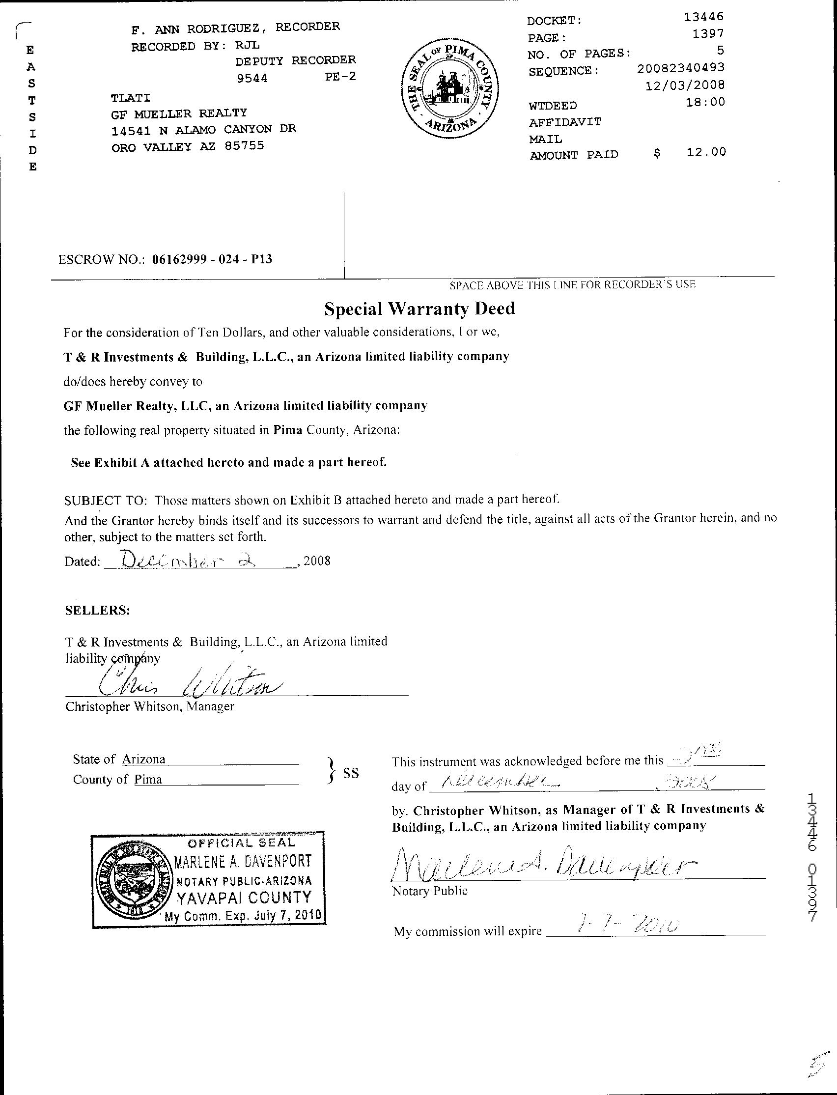 Seller Name : T & R Invs & Building Llc