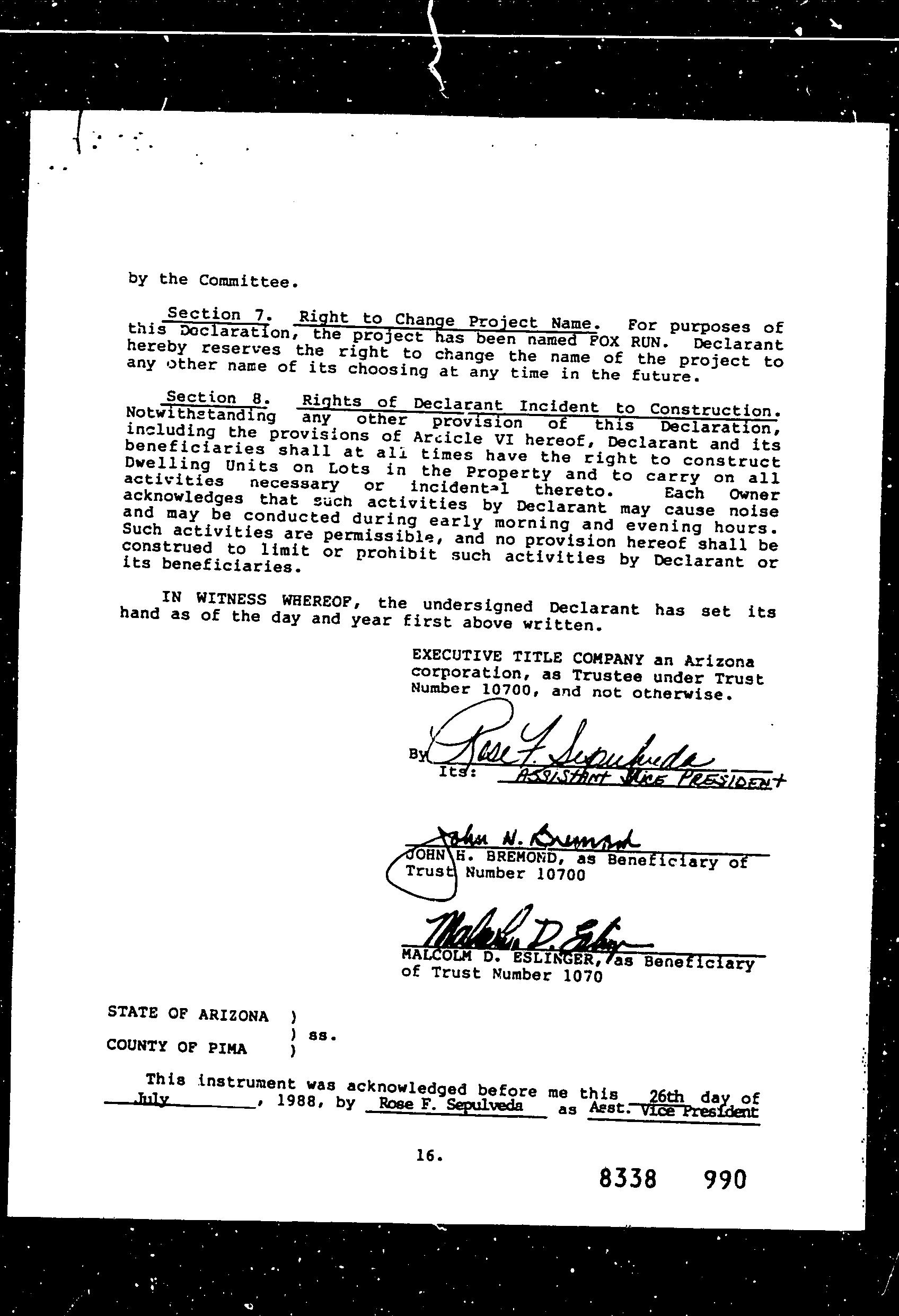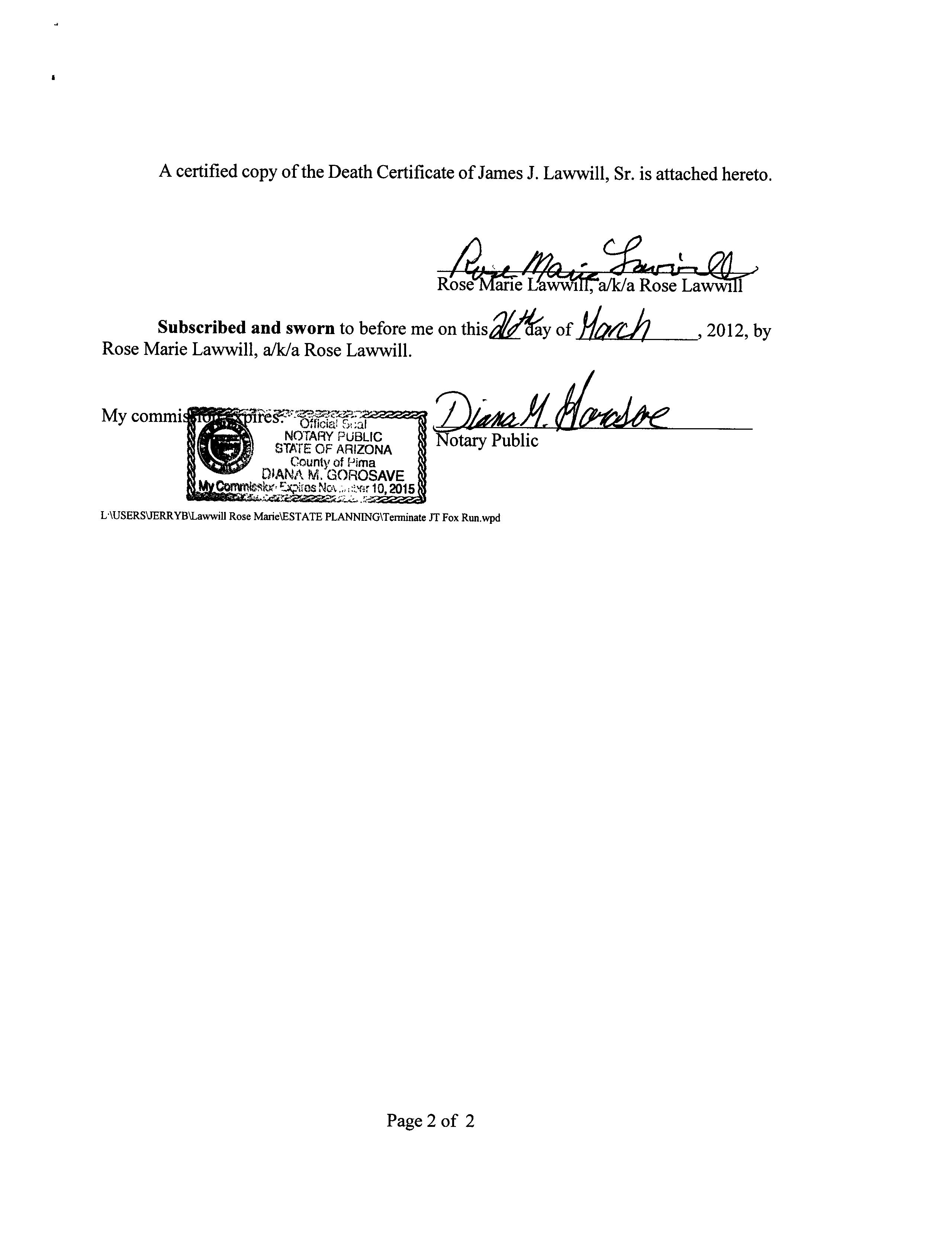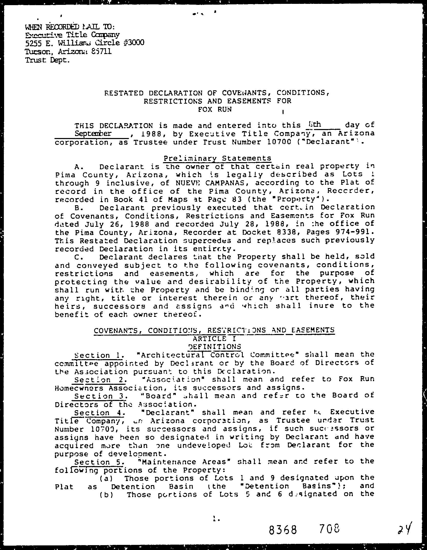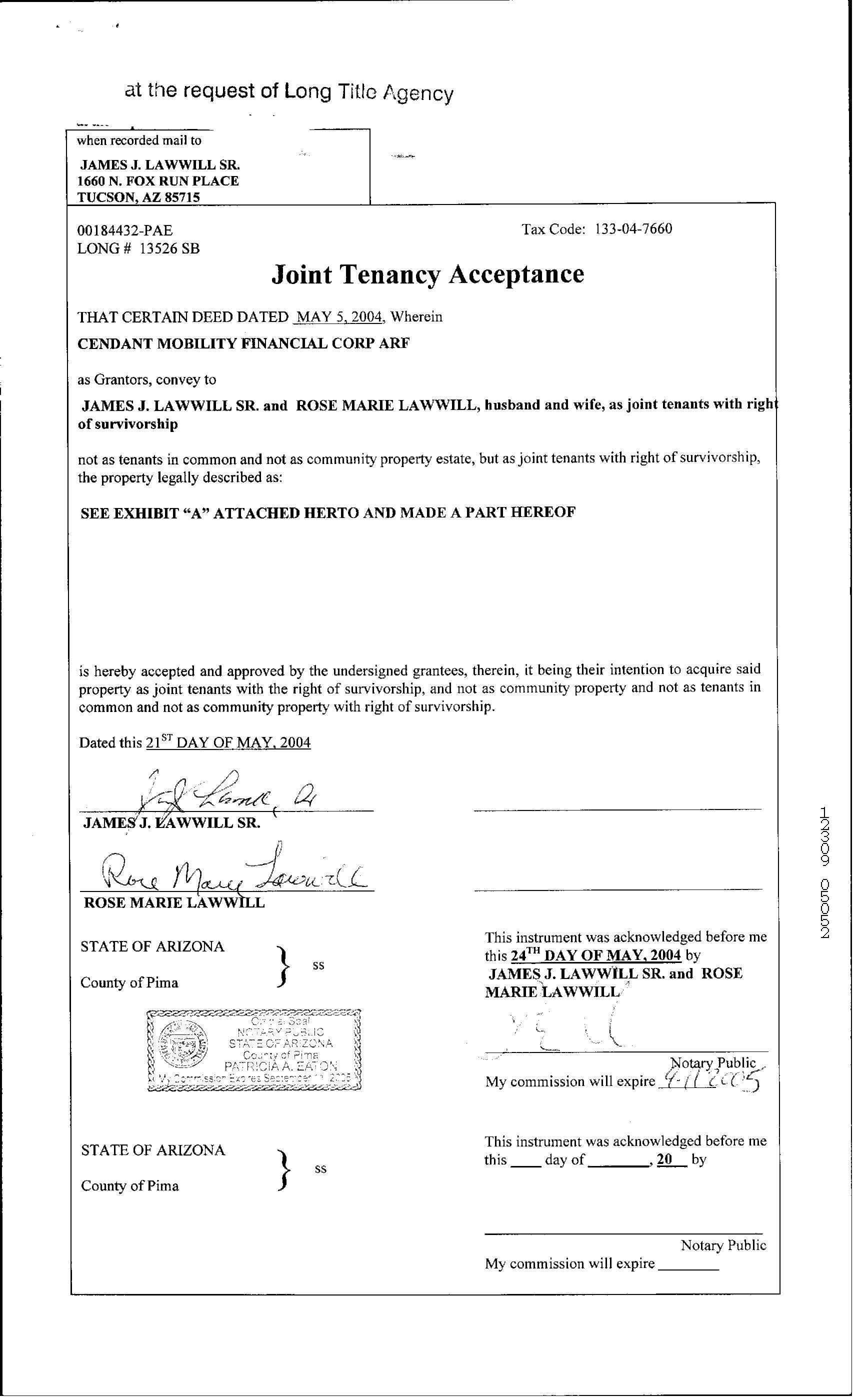 Mailing Address : 1660 N Fox Run Pl, Tucson AZ 85715-5500 C034
