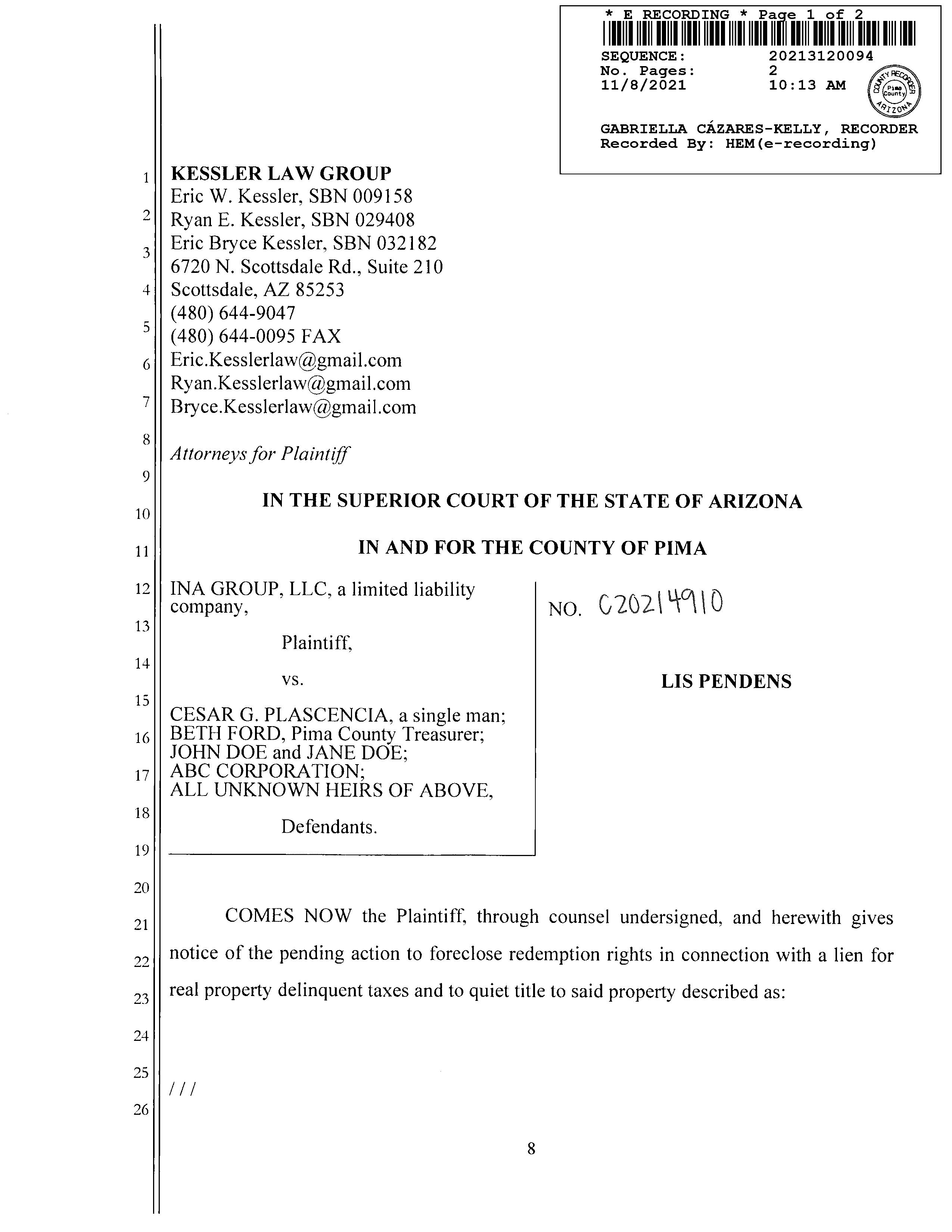 + FIRST AMERICAN TITLE, FC0, JSTI PIMA, AZ 10/21/2022 04:35PM R9C8 INVESTIGATIVE SEARCH RESULTS PAGE 1 OF 1