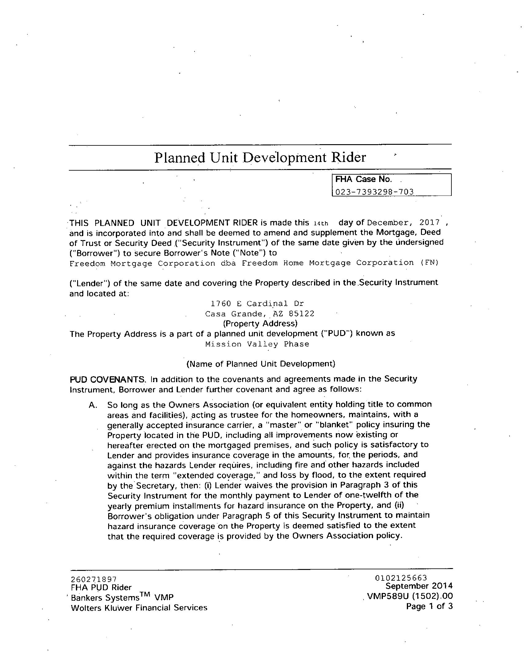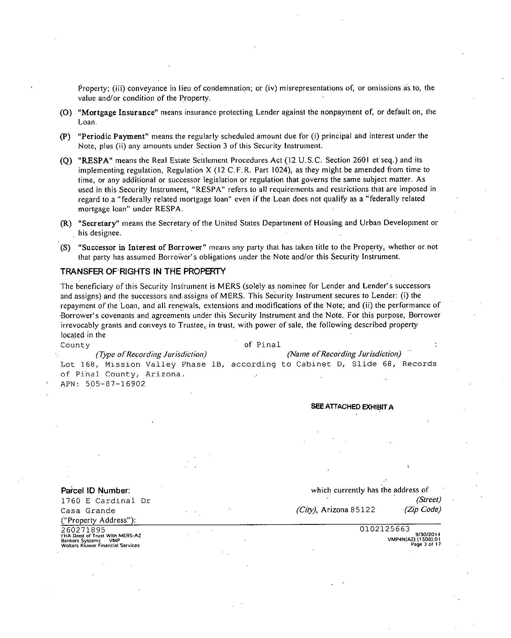 Subject Property : 1760 E Cardinal Dr Casa Grande AZ 85122