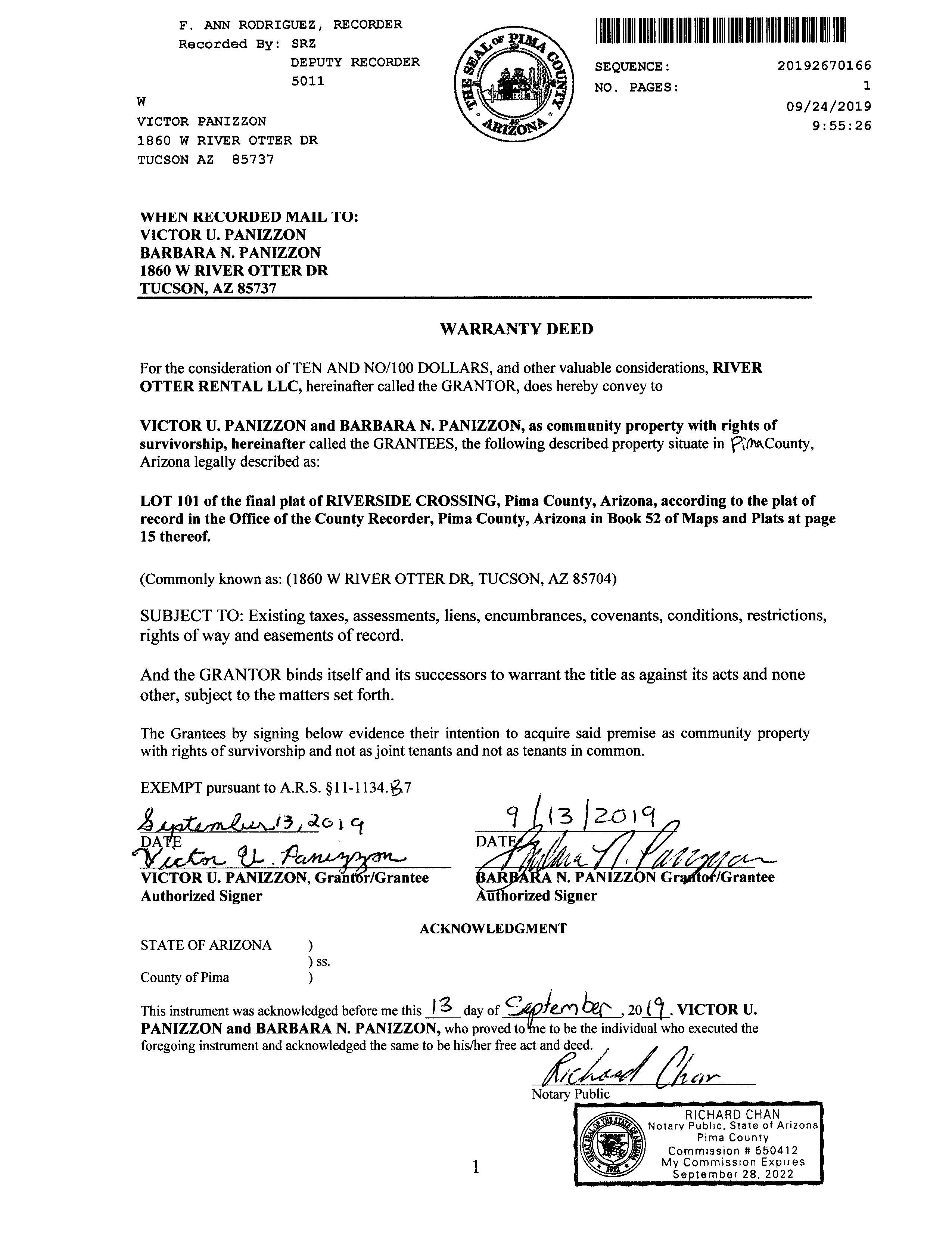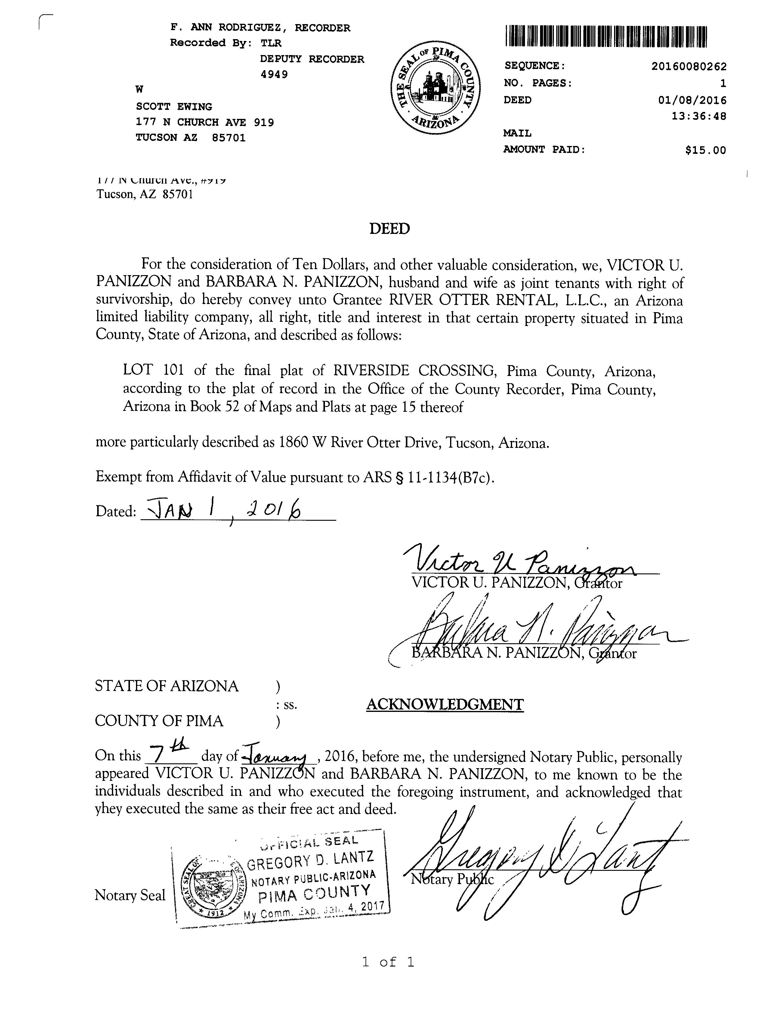 Owner Name: Panizzon Victor U /Panizzon Barbara N APN / Alternate APN: 104-01-3400 / Deed Type: Wd