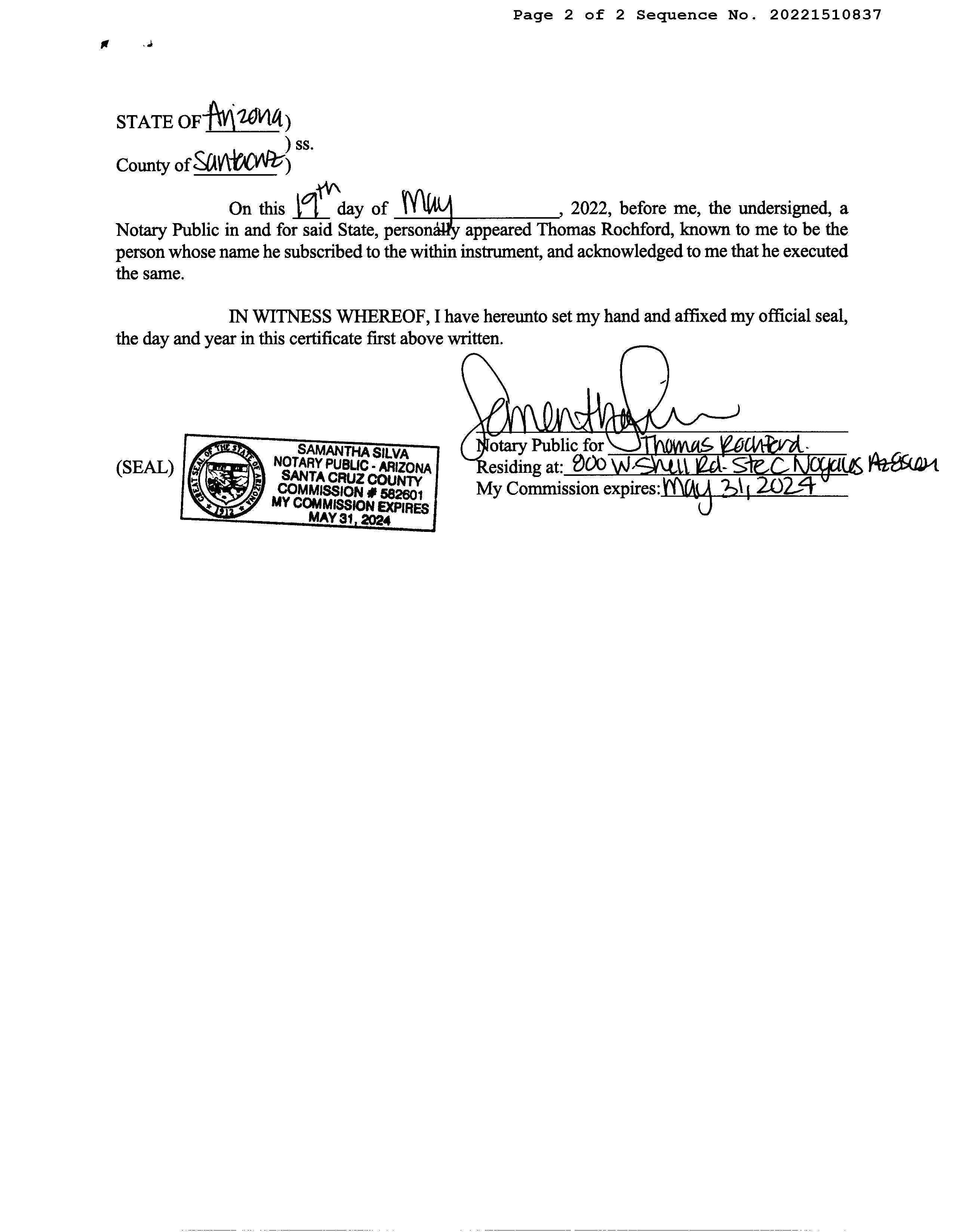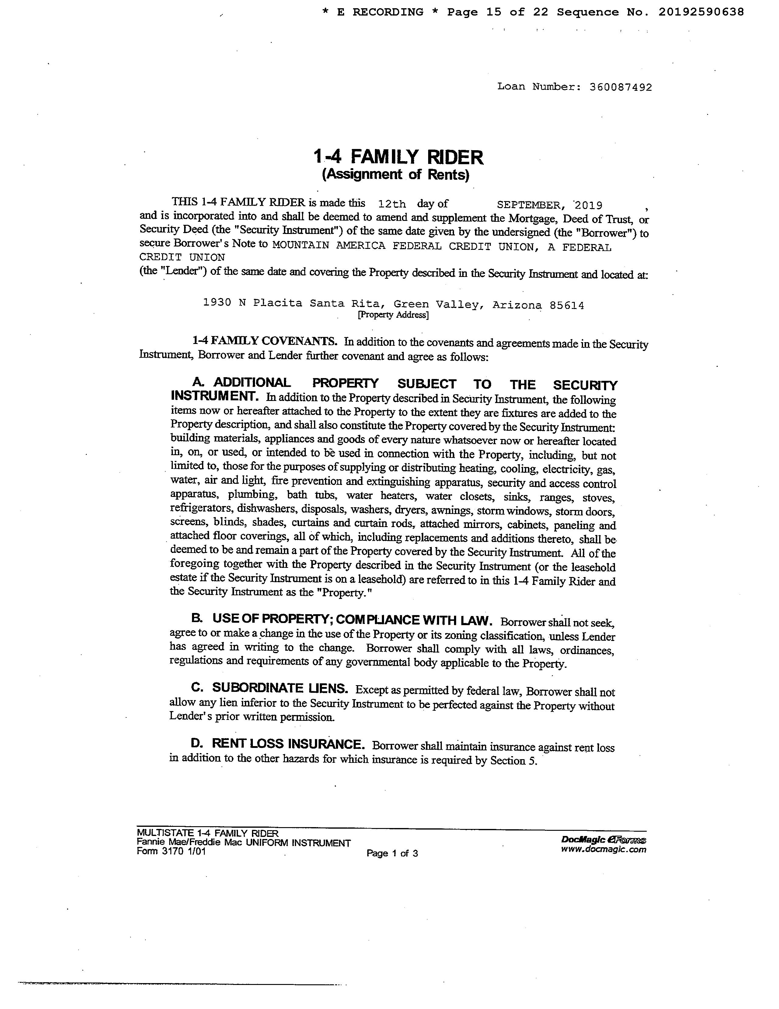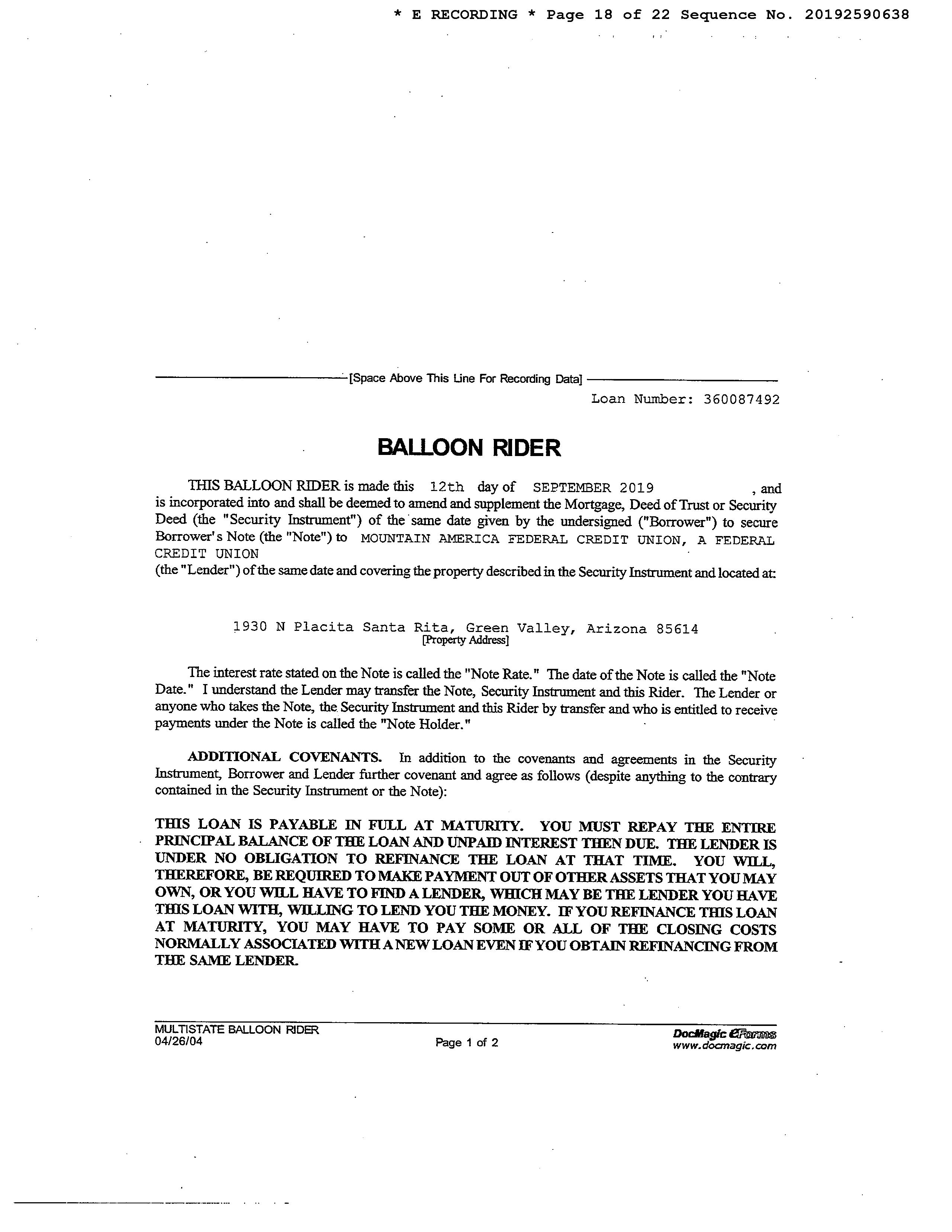 Subject Property : 1930 N Placita Santa Rita Green Valley AZ 85614 Owner Information Owner Name : Rochford Stacie Mailing Address : 1203 W 300 S, Heyburn ID 83336-9790 R001 Vesting Codes : Single Woman / / Sole Owner Owner OccupiedIndicator : A Location Information Legal Description : Villas Santa Rita Townhouses Lot 52 County : Pima, Az Market Area : 821 Census Tract / Block : 43.07 / 1 APN : 304-15-2220 Township-Range- Sect : 18S-13E-2 Subdivision : Villas Santa Rita Legal Book/Page : 32-88 Map Reference : 02-18S-13E Legal Lot : 52 School District : Continental Legal Block : 1 Munic/Township : Continental Owner Transfer Information Recording/Sale Date : 05/31/2022 / 05/19/2022 Deed Type : Quit Claim Deed Document # : 1510837 Last Market Sale Information Recording/Sale Date : 05/28/2004 / 04/00/2004 1st Mtg Int. Rate/Type : 6.25% / Fixed Rate Loan Sale Price : $136,500 1st Mtg Document # : 12312-4893 Document # : 12312-4892 1st Mtg Term : 30 Deed Type : Warranty Deed Price Per SqFt : $74.06 1st Mtg Amount/Type : $134,598 / Fha Title Company : First American Title Lender : Suburban Mtg Inc Seller Name : Monro Cynthia Prior Sale Information Prior Rec/Sale Date : 08/09/2001 / 07/00/2001 Prior Doc Number : 11609-2746 Prior Sale Price : $127,000 Prior Deed Type : Warranty Deed Customer Name : Lisa Mrazek Customer Company Name : First American Title Insurance Company Prepared On : 08/26/2022 © 2022 CoreLogic. All rights reserved