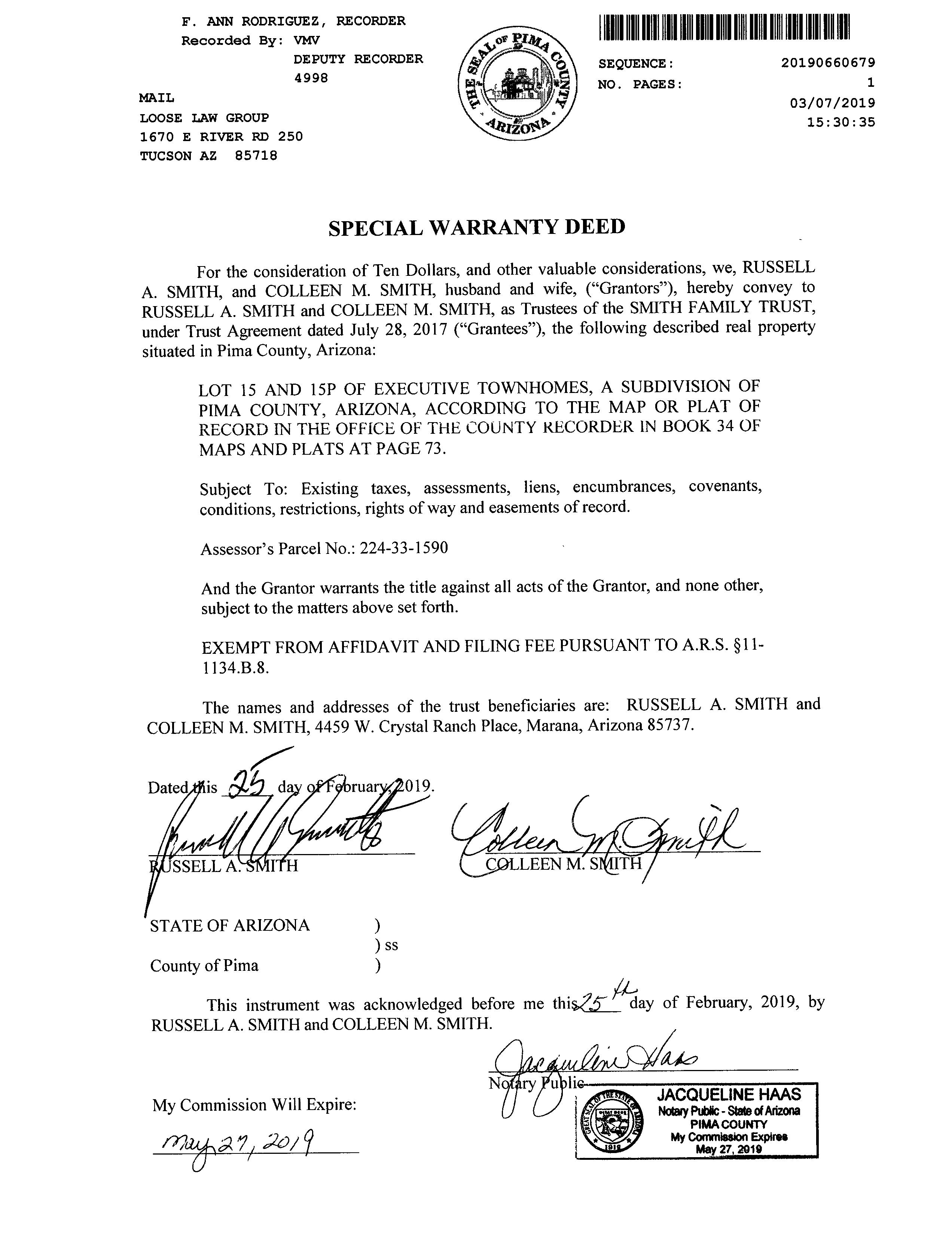 Mailing Address : 4459 W Crystal Ranch Pl, Marana AZ 85658-4545 H013