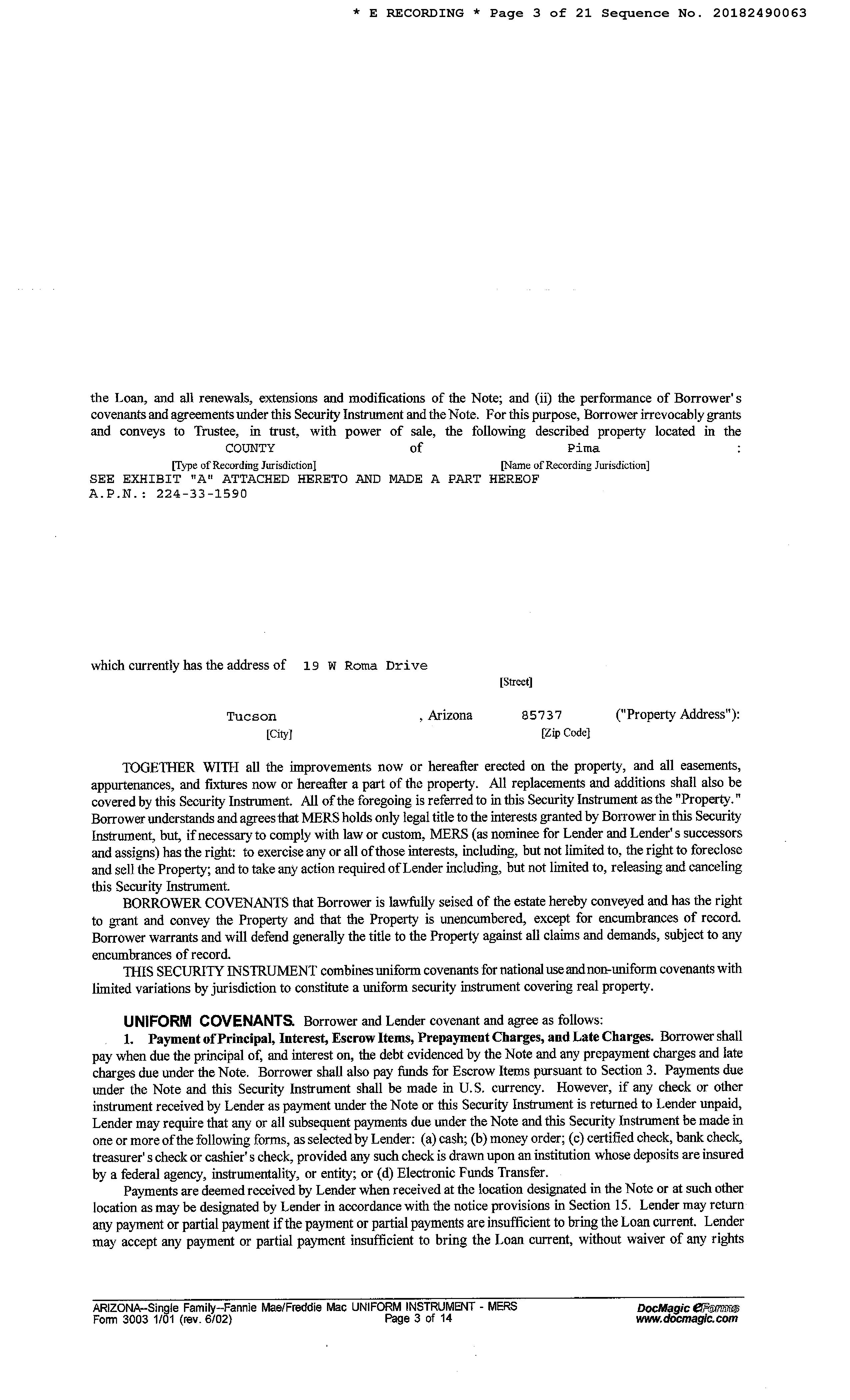 Subject Property : 19 W Roma Dr Tucson AZ 85737