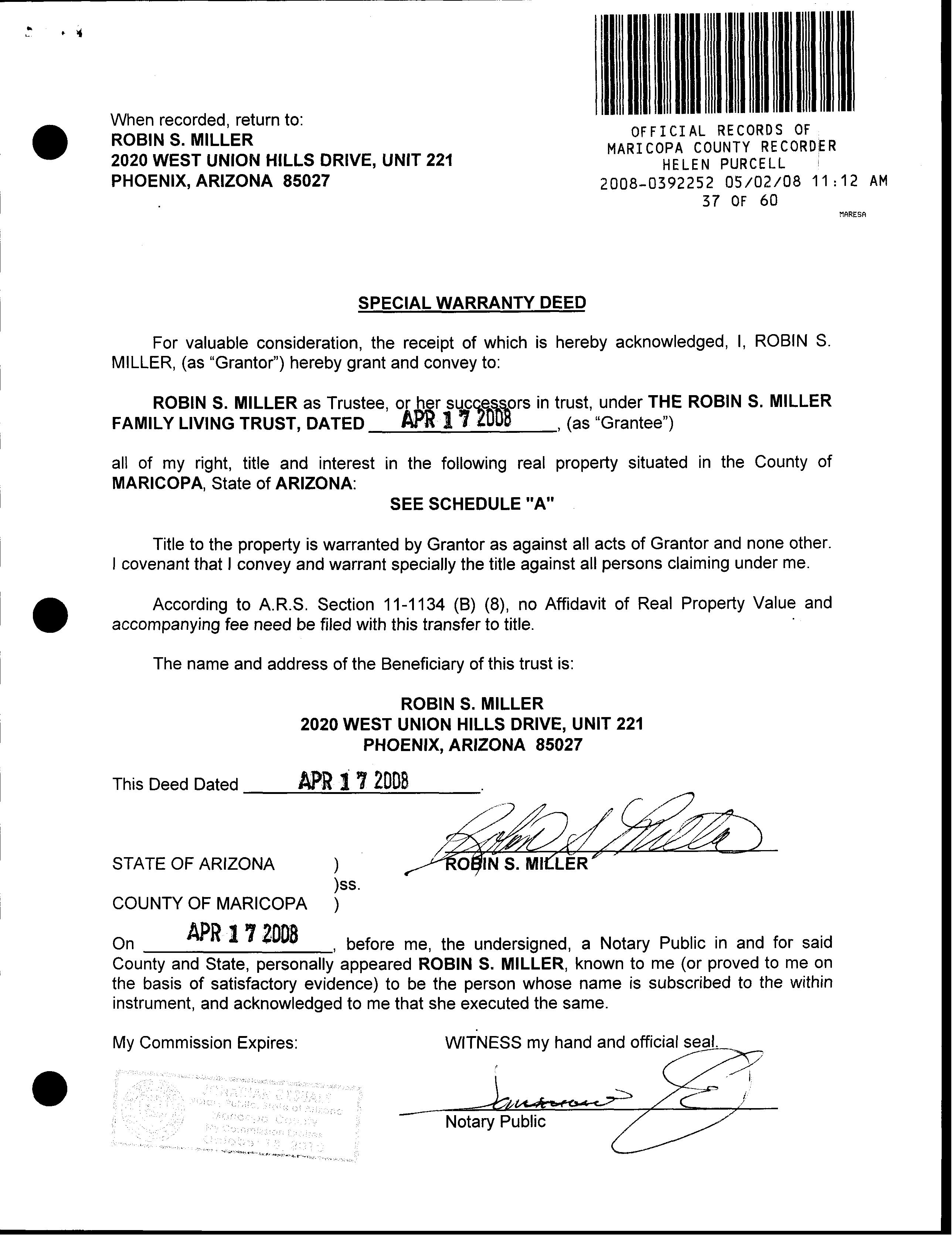 Owner Name: Miller Robin S / APN / Alternate APN: 209-14-580 / Deed Type: Wd