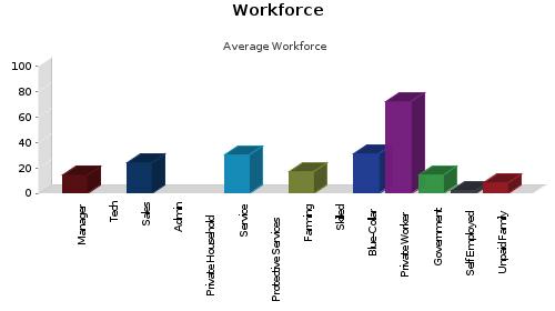 Manager/Prof: 14.04% Private Worker: 72.56% Technical: Government Worker: 14.33%