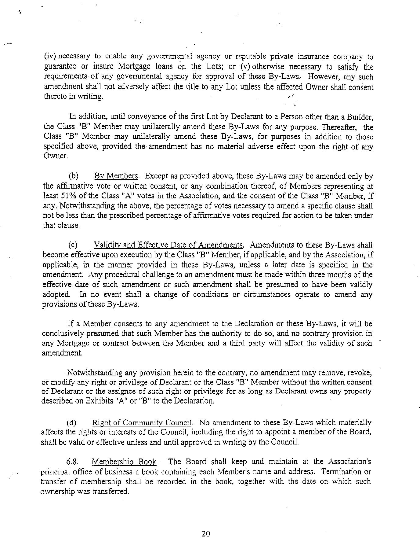 No amendment may remove, revoke, or modify any right or privilege of Declarant without the written consent of Declarant (or the assignee of such right or privilege). Additionally, no amendment may remove, revoke, or modify any right or privilege of the Council without the Council's written consent.