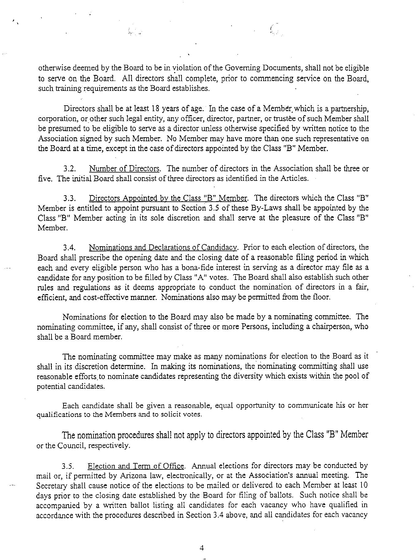 "Board of Directors" or "Board": The body responsible for administration of the Association, selected as provided in the By-Laws and serving the same role as the board of directors under Arizona corporate law.