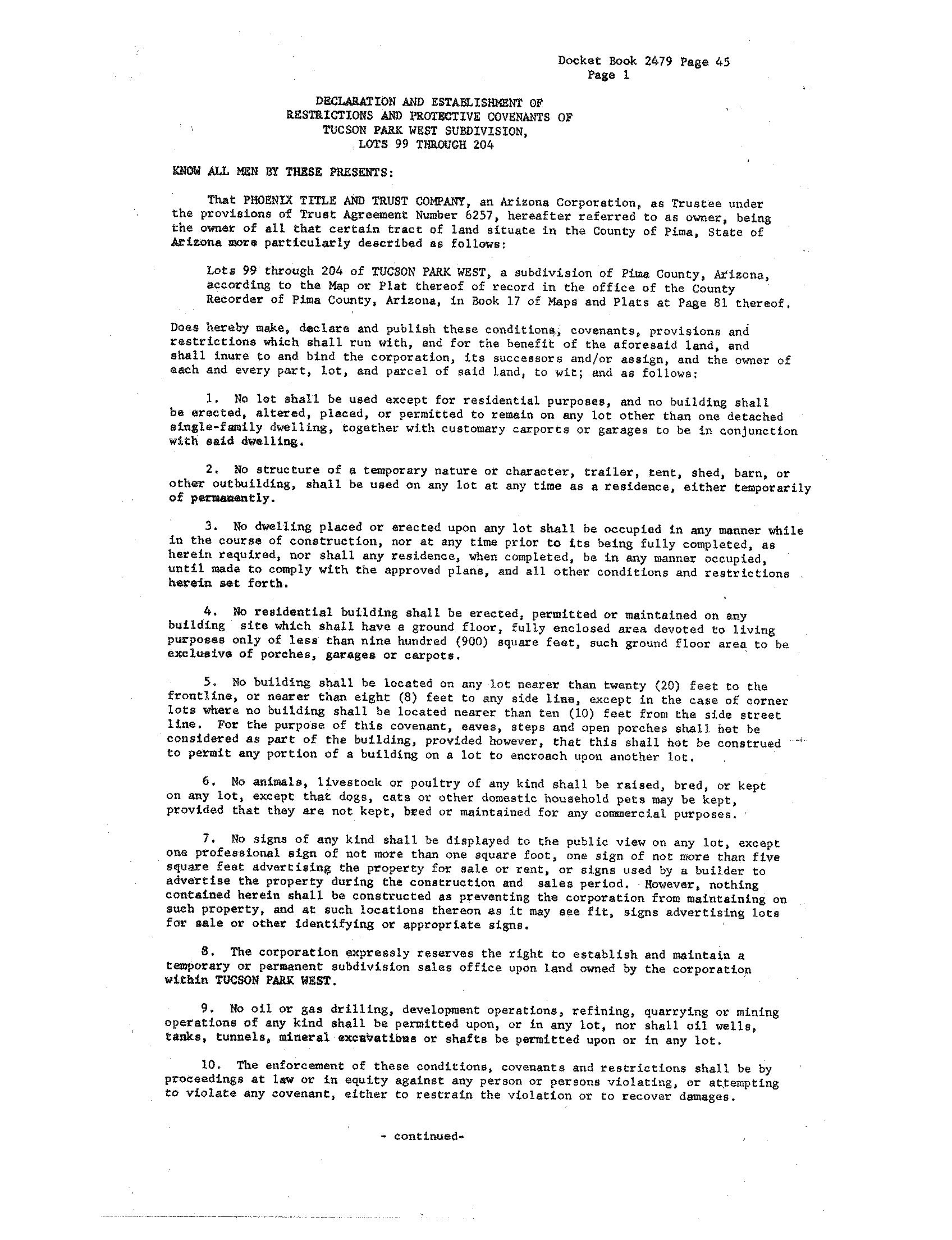 COVENANTS, CONDITIONS & RESTRICTIONS